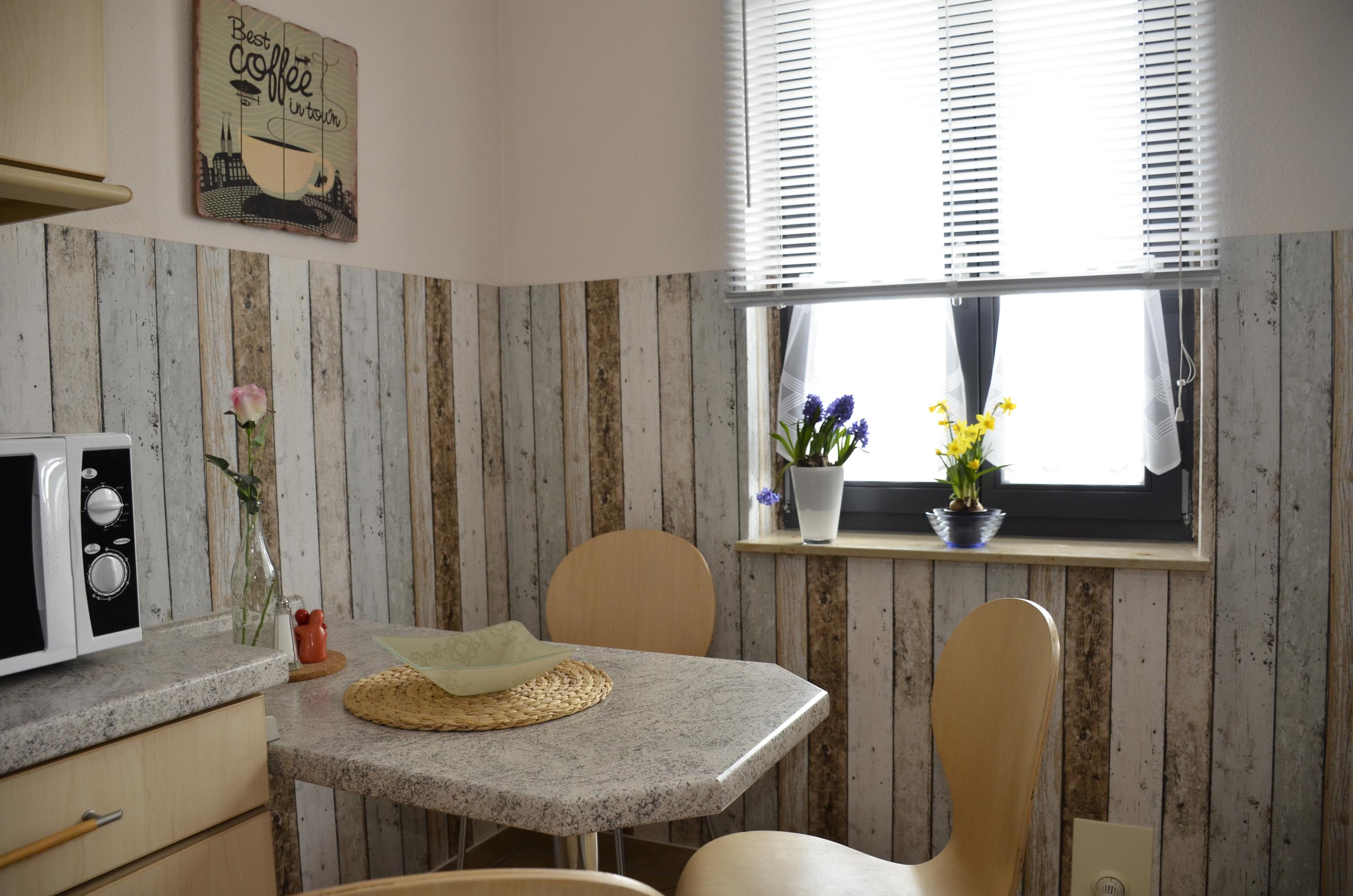 Eine kleine Essgruppe rundet das Küchenbild ab.