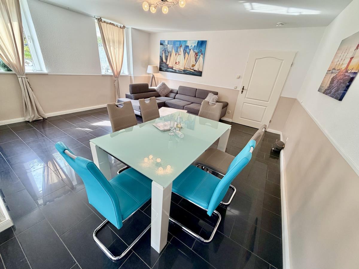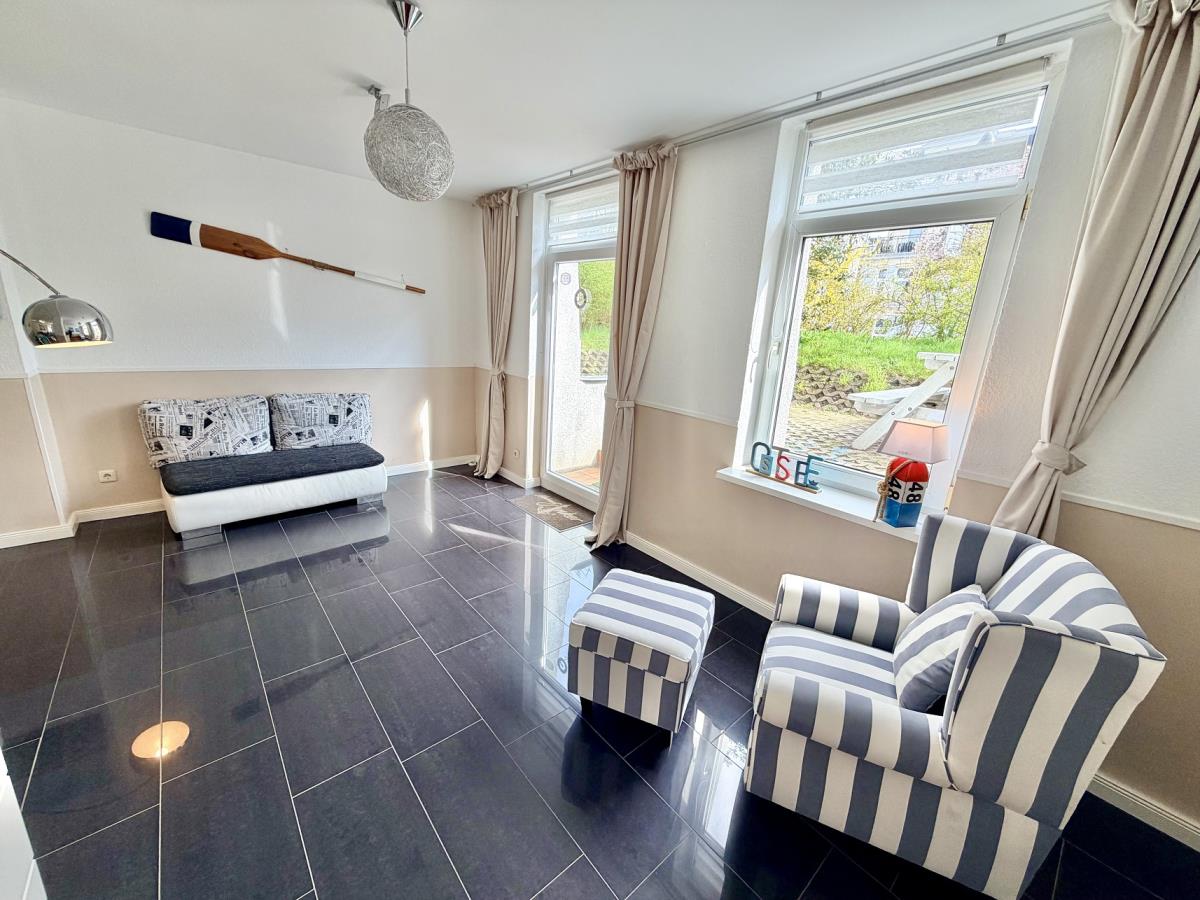 Die Ferienwohnung "Boje" im Souterrain ist für 2 bis 4 Personen ausgelegt. Der Bahnhof ist auf dem Fußweg in 10 min. zu erreichen, zum Strand sind es etwa 200 m. Sie finden hier auf ca. 83 qm ein Schlafzimmer mit Doppelbett (2. TV) und ein großes, liebevoll eingerichtetes Wohnzimmer mit Doppelbettcouch (TV/DVD/Radio/CD, kostenfreies WLAN) und vorgelagerter sonniger Terrasse. Die Küche ist mit Kühlschrank, Mikrowelle, Backofen, Herd, Spülmaschine, Kaffeemaschine, Wasserkocher und Toaster voll ausgestattet. Die komplette Wohnung ist gefliest und mit Fußbodenheizung versehen. Das Duschbad verfügt über einen Fön. Die Ferienwohnung ist Nichtrauchern vorbehalten.