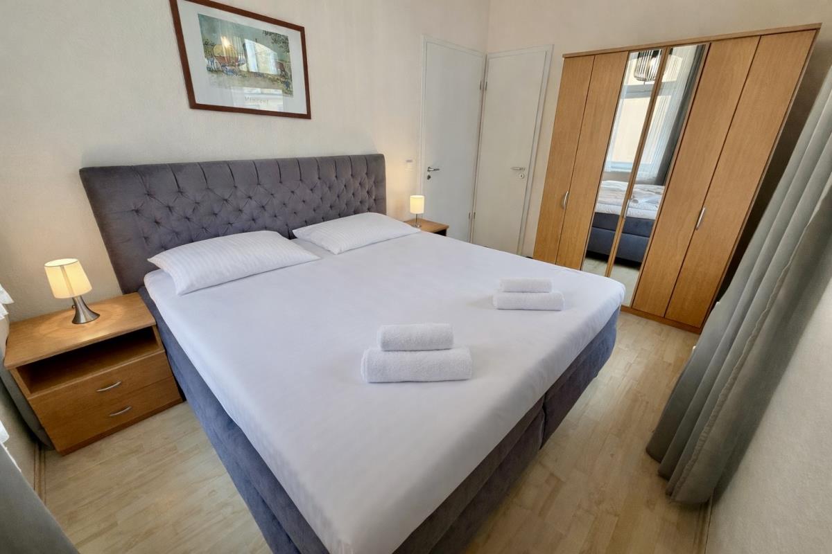 Im Hochparterre gelegen, verfügt die ca. 34 qm große 2-Zimmer-Wohnung Traumstrand über Wohnzimmer mit Doppelbettcouch, Schlafzimmer mit Doppelbett, sehr schönes Duschbad mit Fön,französischen Balkon (Austritt), Einbauküche mit Backofen, Kühlschrank, Mikrowelle, Kaffeemaschine, Toaster, Wasserkocher, Kabel-TV, kostenfreies WLAN, Laminatboden. Die Wohnung ist für 2 bis 4 Personen ausgelegt. Unmittelbar benachbart finden Sie die 3-Zimmer-Ferienwohnung Sonnenstrand für bis zu 6 Personen. Durch diese Kombination genießen bis zu 10 Personen einen entspannten gemeinsamen Urlaub. Im Keller können Sie Waschmaschine und Trockner gegen Gebühr benutzen. Im Keller ist ein abschließbarer Fahrradraum vorhanden, E-Bikes können vor Ort geladen werden.