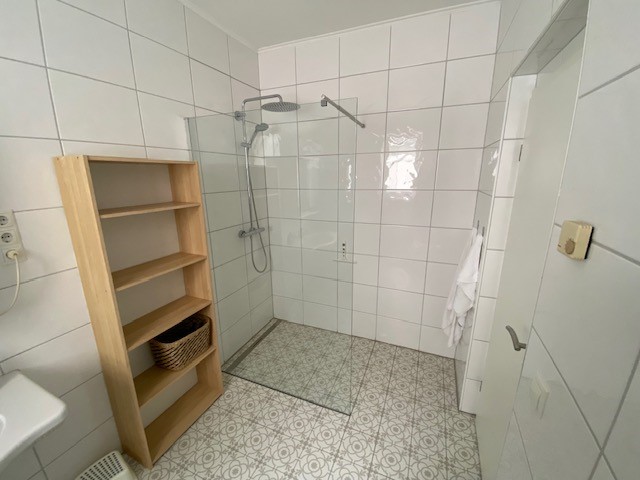 Im 1. Obergeschoss befindet sich die ca. 50 qm große Fewo "Strandkorb" mit Wohnzimmer mit SAT-TV, Essplatz, Küche mit Geschirrspüler, Kühlschrank, Herd, Backofen mit Air Fry und Mikrowelle, Schlafzimmer mit Doppelbett (Boxspring 1,60 m), zweites Schlafzimmer als Durchgangszimmer mit Doppelbett (1,40 m), Duschbad mit begehbarer Rainshower-Dusche, Fussbodenheizung und Fön, Gäste-WC mit Waschmaschine und sonnigem Süd-Ost-Balkon. Die Wohnung ist für 4 Personen ausgelegt und Nichtrauchern vorbehalten.