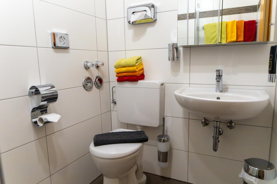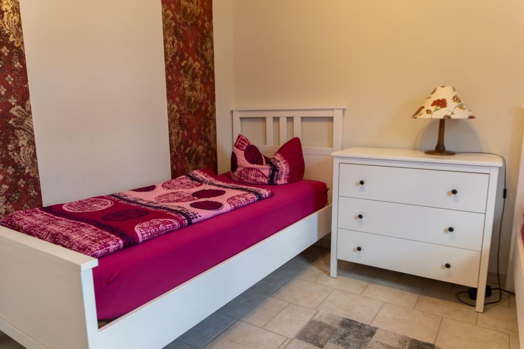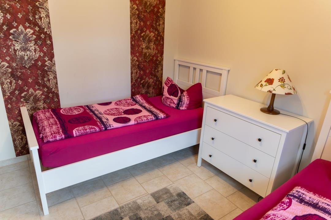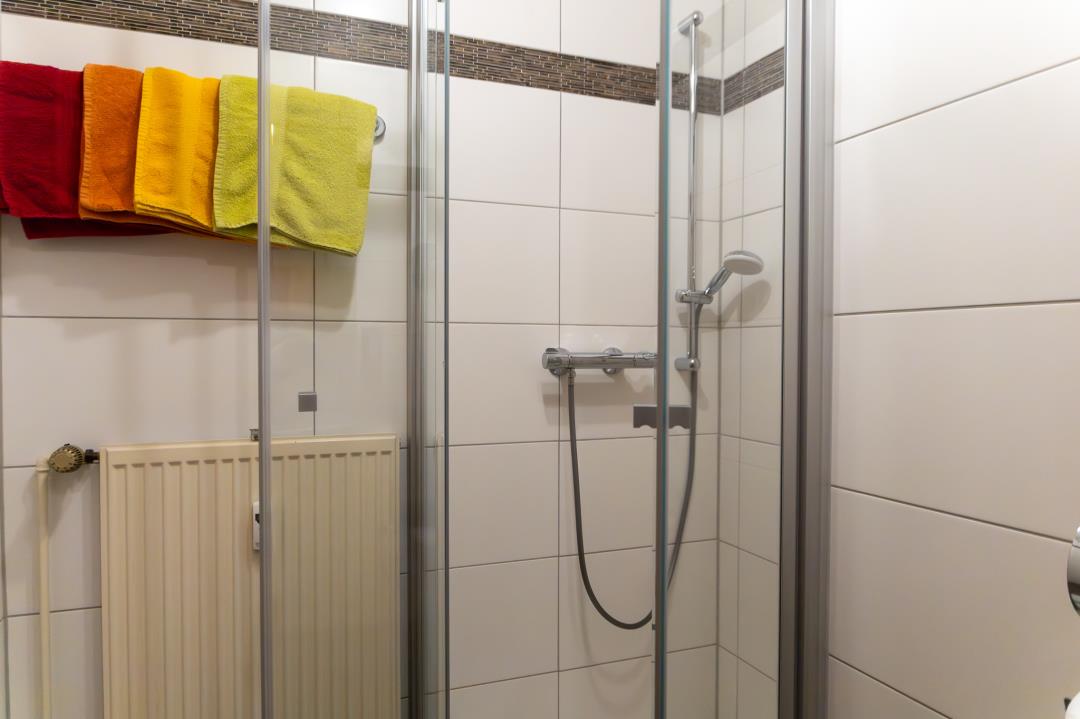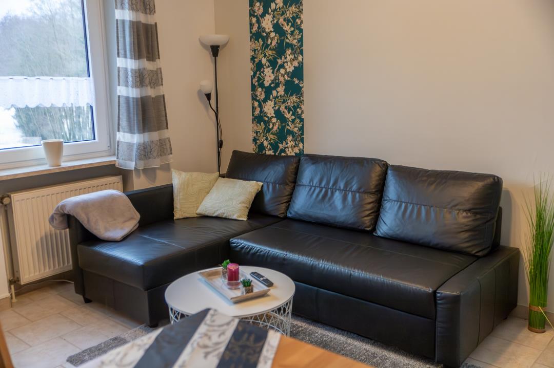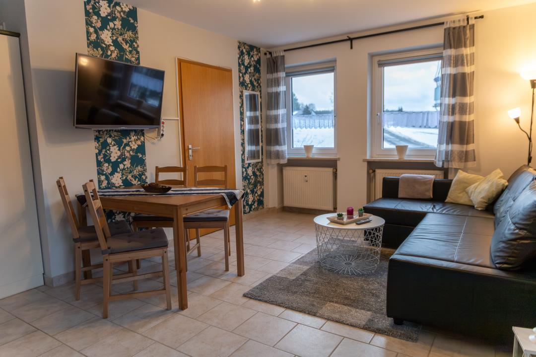Die Wohnung besteht aus einem Flur mit großem Kleiderschrank, einer komplett ausgestatteten Einbauküche mit Kühl- und Gefrierschrank, Kaffeemaschine, Toaster, Wasserkocher etc., einem Wohn-/ Esszimmer mit Schlafsofa (140cmx200cm), einem Schlafzimmer mit Doppelbett (140cm x 200cm), einem Schlafzimmer mit zwei Einzelbetten (90cm x 200cm) und einem Bad mit Dusche, WC und beleuchtetem Spiegelschrank. Bettwäsche und Handtücher sind im Preis enthalten.
