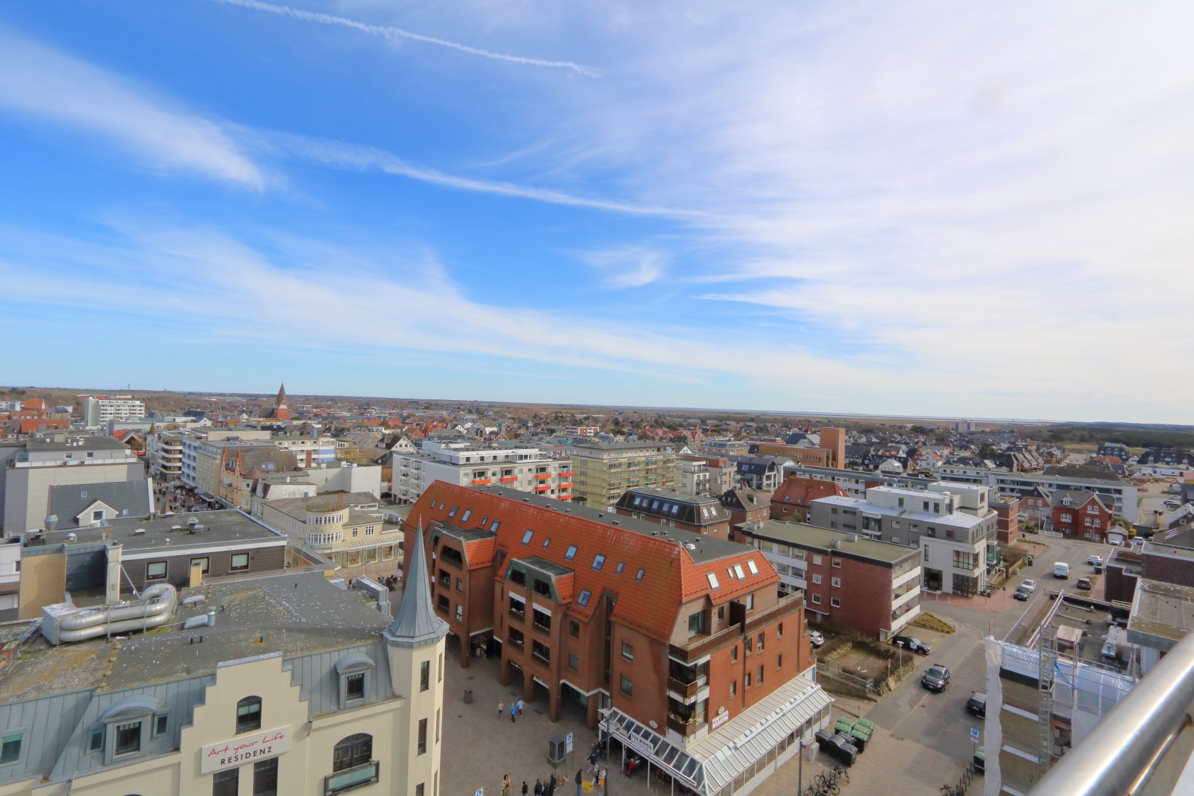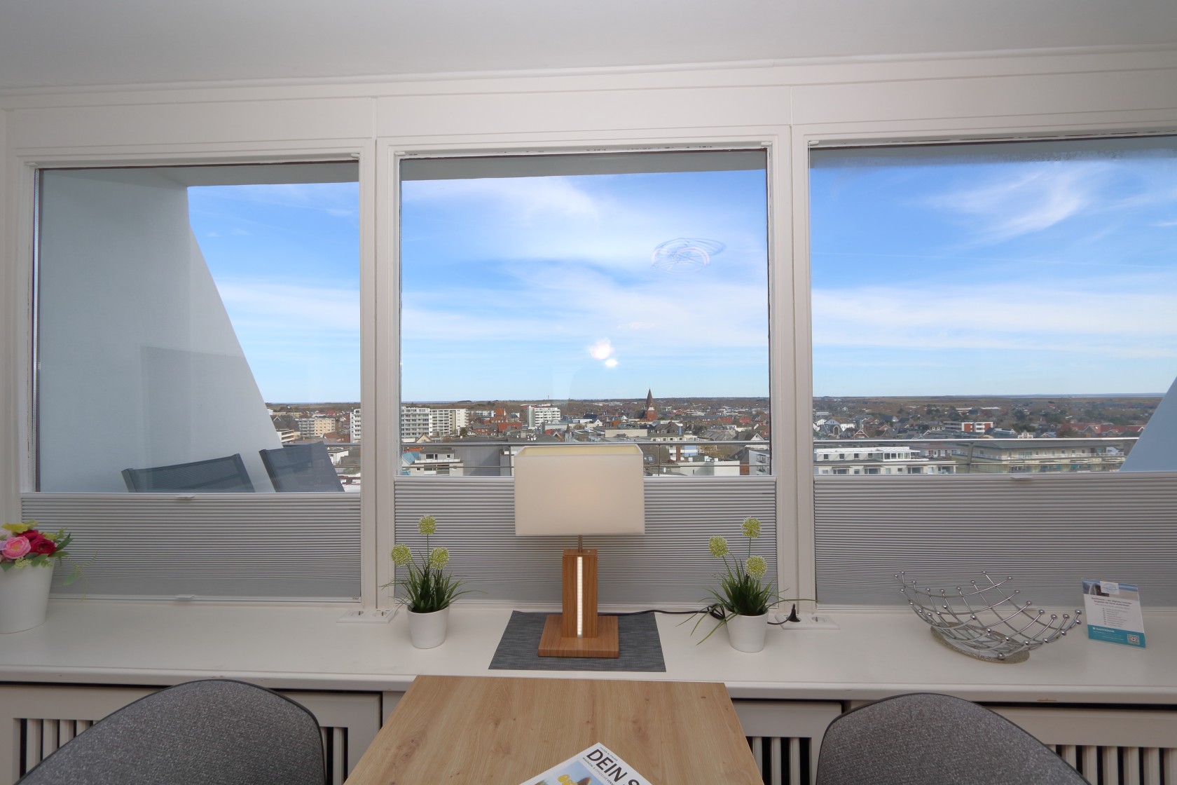Lage: Das Appartement mit Ostbalkon und Stadtblick über das Flachdach befindet sich in der 8. Etage eines gepflegten Appartementhauses im Kurzentrum, direkt am Hauptstrand. Das Haus liegt zentral in Westerland, zwischen den beiden großen Fußgängerzonen.