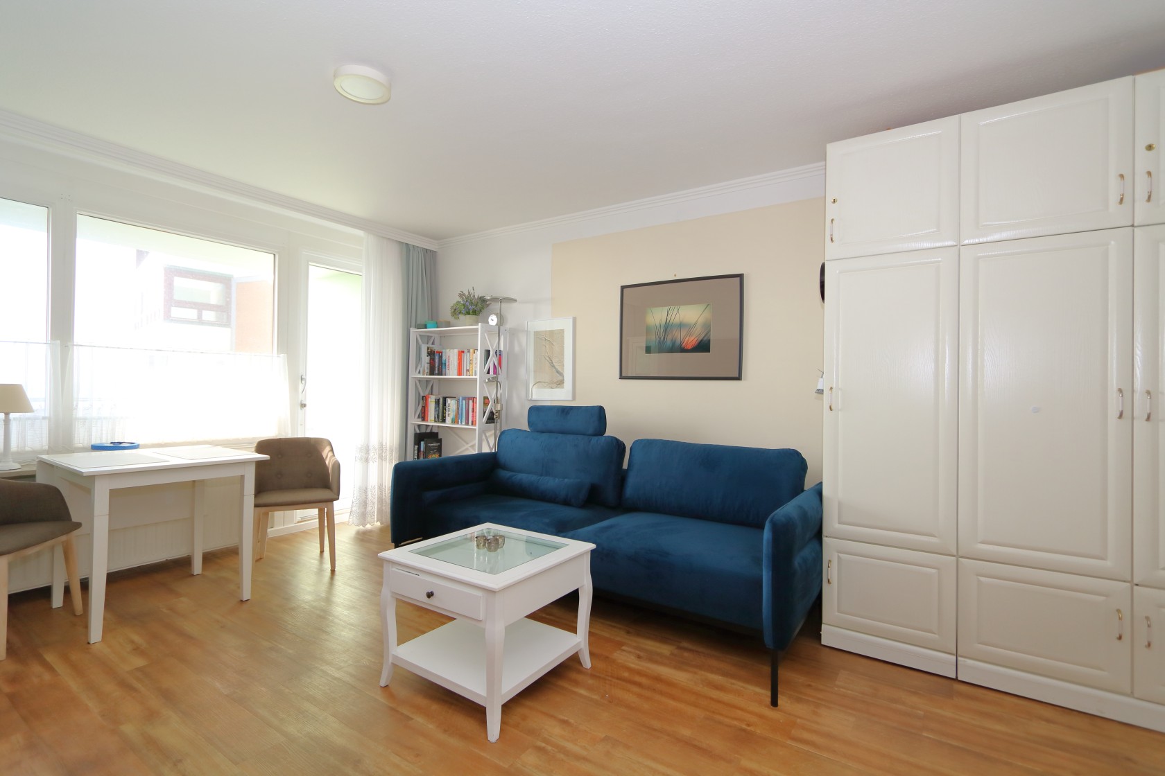 Lage: Das Appartement mit großem Westbalkon zur Meerseite befindet sich in der 1. Etage eines gepflegten Appartementhauses im Kurzentrum, direkt am Hauptstrand. Das Haus liegt zentral in Westerland, zwischen den beiden großen Fußgängerzonen.. Das Appartement ist großzügig ausgestattet mit u.a. einem festen Boxspringbett, und Westbalkon, moderner Küchenzeile im Flur und ein Badezimmer mit Dusche.