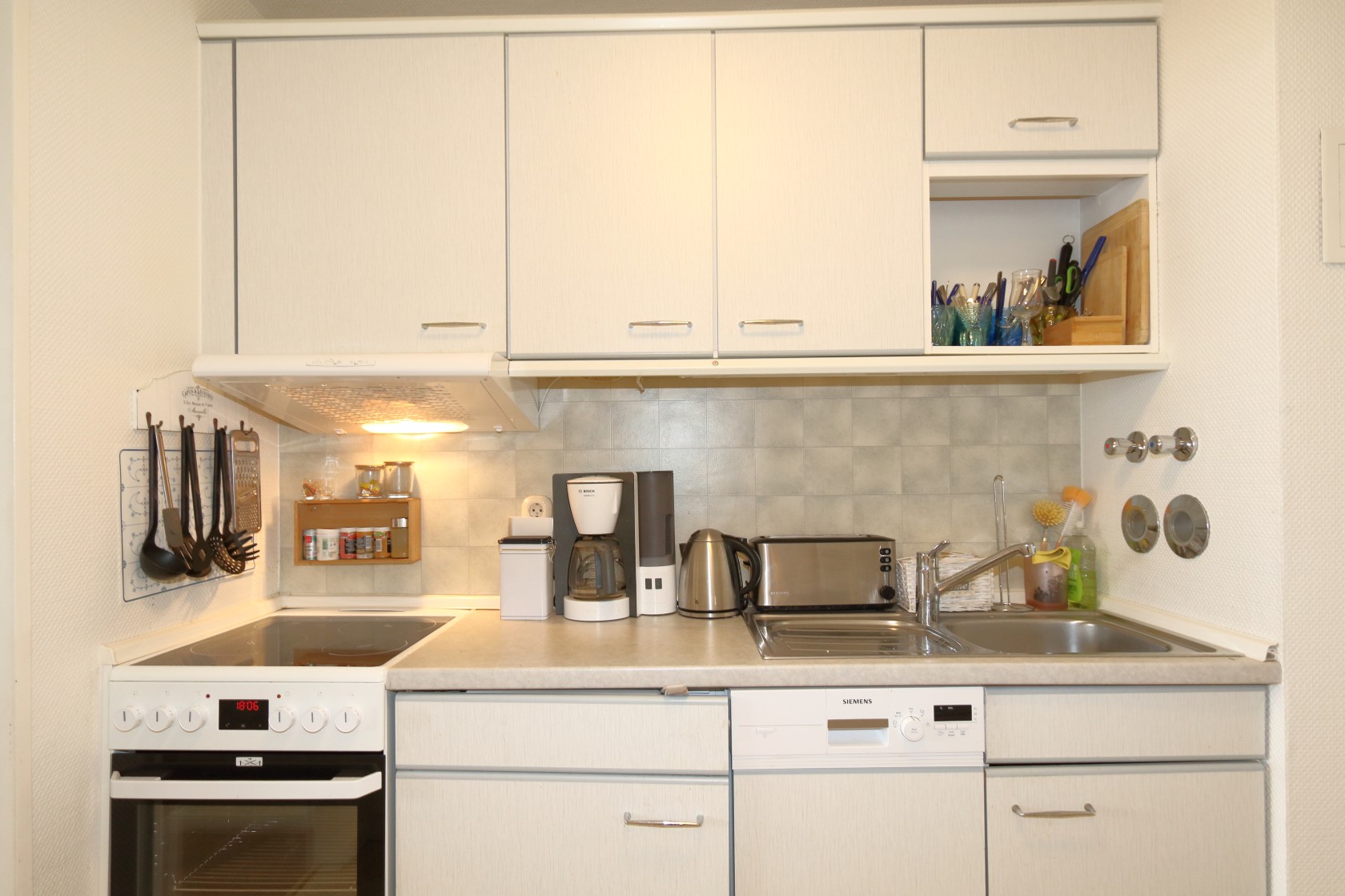 gängige Küchenutensilien, Herd , Dunstabzugshaube, Wasserkocher, Backofen, Filterkaffeemaschine, Toaster, Kühlschrank usw