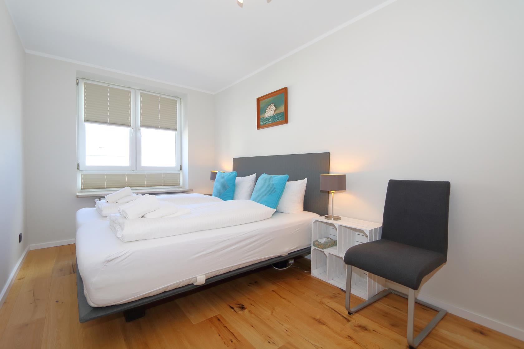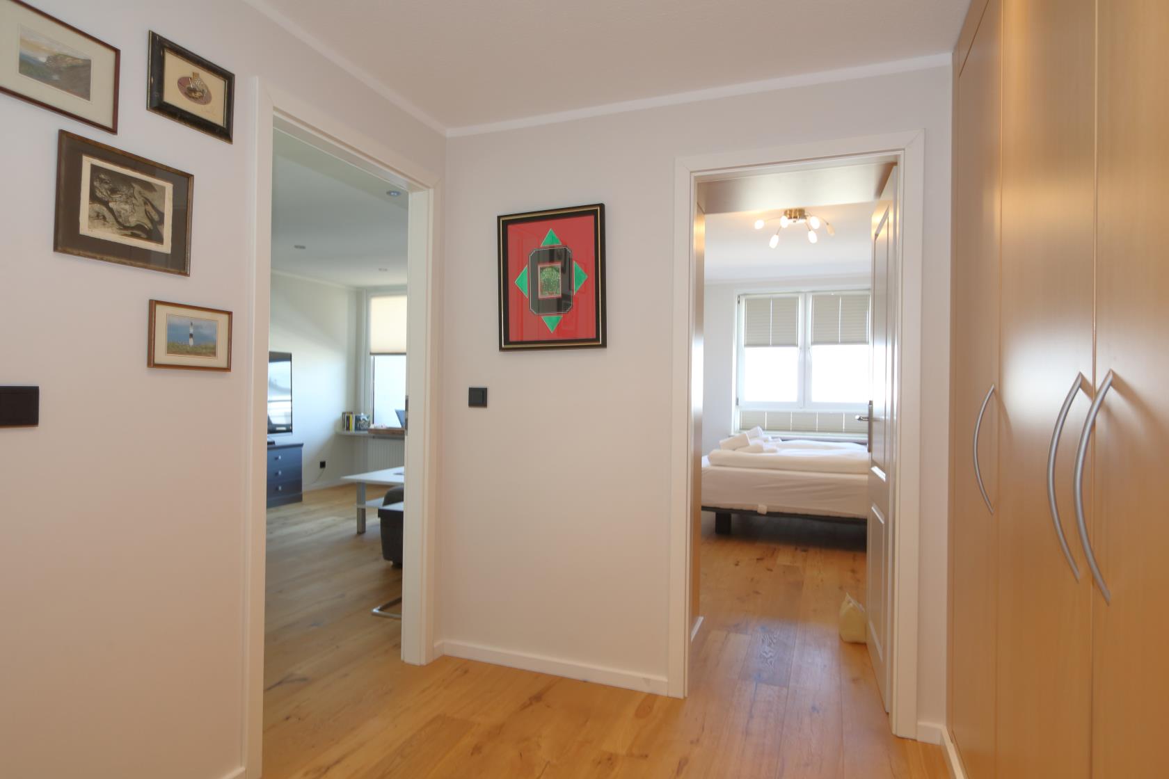 Diese schöne 2-Wzimmer-Wohnung befindet sich in zentraler Lage Westerlands, Fussgängerzone, Friedrichstraße 23. Die moderne Wohnung ist ca. 50m² groß und beinhaltet einen großzügigen Flur mit Einbauschränken/ viel Platz/ Stauraum. Der geräumige Wohnraum hat ein gemütliches Sofa, Essplatz und großem Fernseher. Vom Balkon aus Blick auf die Friedrichstraße. Das Schlafzimmer hat ein Doppelbett/ neue einzelne Matratzen (2023) für 2 Personen. Es gibt eine moderne sep. kleine Einbauküche/ Geschirrspüler/ Ceranfeld. Die Wohnung ist durchgehend mit Ectholz-Fussboden ausgelegt, Nichtraucher und für 2 Personen sehr gut ausgestattet. Dies ist eine helle, freundliche und moderne Nichtraucherwohnung, ideal für den Strandurlaub