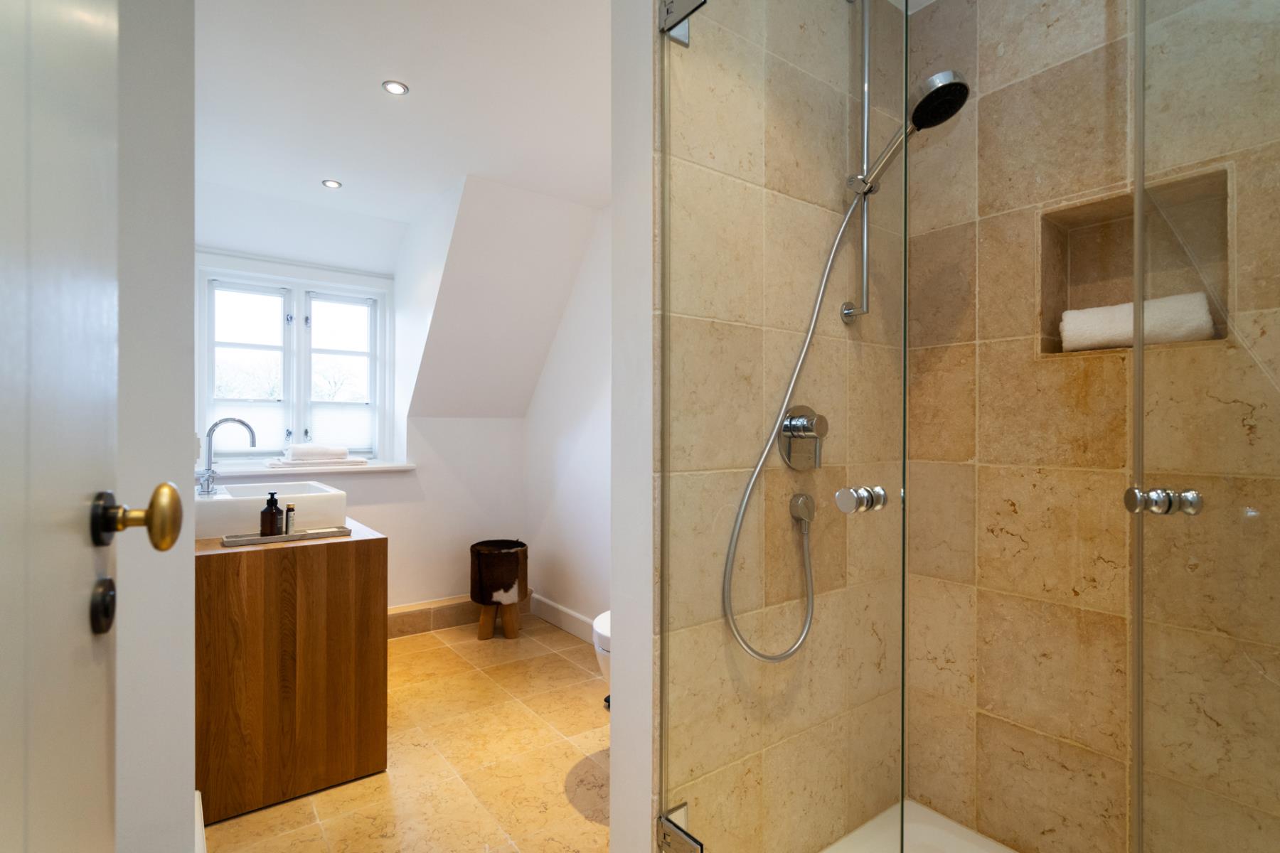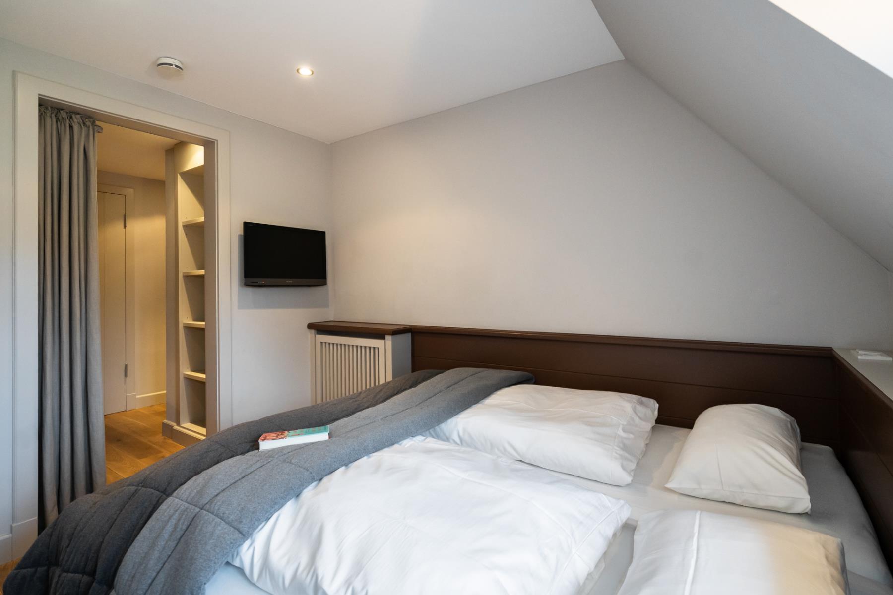 Im Obergeschoss erwarten Sie zwei stilvolle Schlafzimmer mit Doppelbetten, LED-Fernsehern und ein weiteres elegantes Badezimmer. Ein Schlafzimmer verfügt zusätzlich über ein separates Ankleidezimmer. Hochwertige Tischlereinbauten, Eichendielen, belgischer Blaustein, exklusive Armaturen und ausgesuchte Wohnaccessoires unterstreichen den luxuriösen Charakter dieses Ferienhauses.