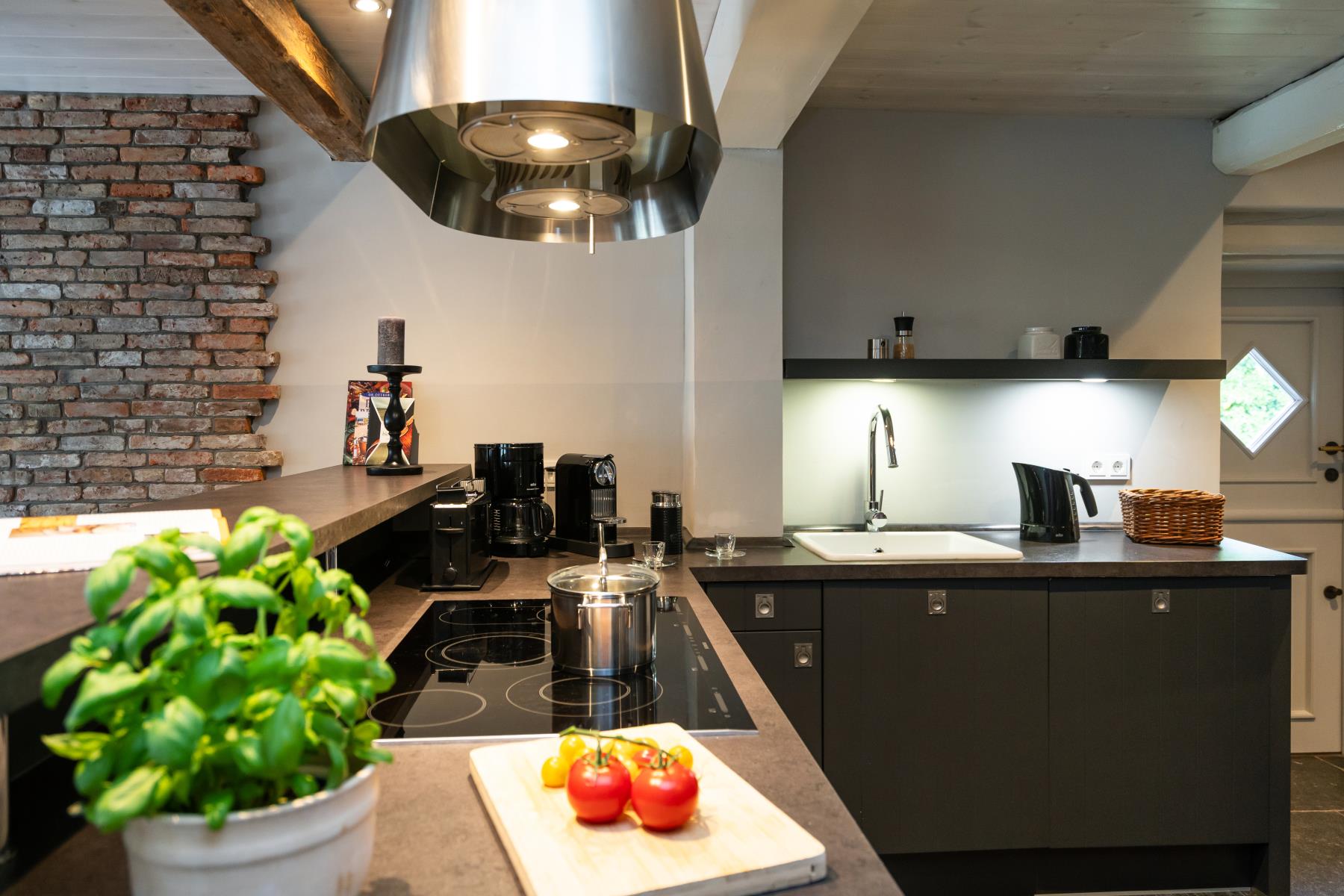 Über eine elegante, schwarze zweiflügelige Eingangstür betreten Sie die traditionsreiche „Goode Stuv“. Links befindet sich der gemütliche Wohnbereich mit klassischem Kachelofen, offener Wohnküche und stilvoller Essecke. Hochwertige Materialien, kantige Backsteine und viele Holzelemente schaffen eine warme, cozy und luxuriöse Atmosphäre.