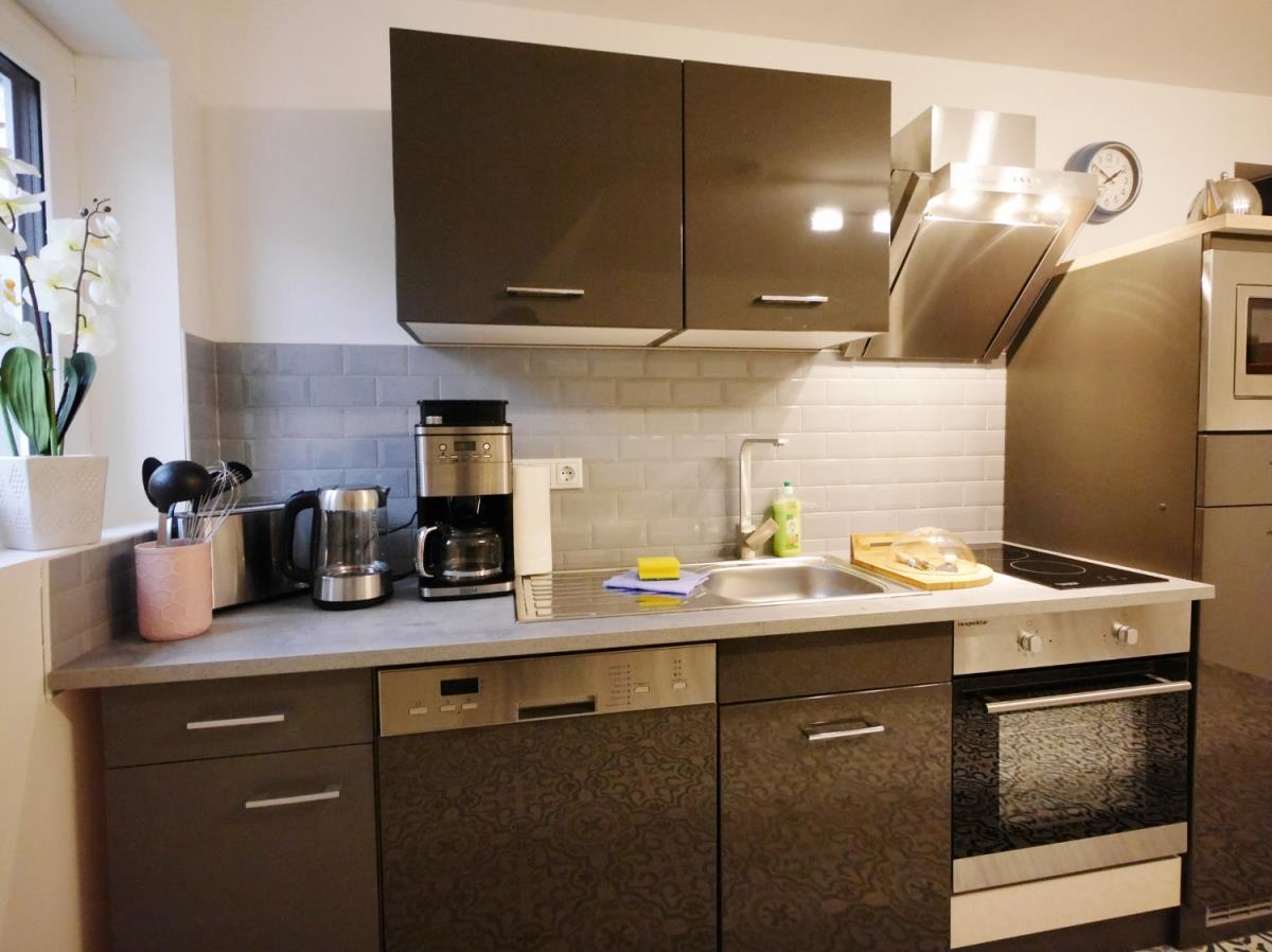 - Wohnküche mit Esstisch und Küchenzeile mit Geschirrspüler, Kaffeemaschine und zweckmäßiger Ausstattung