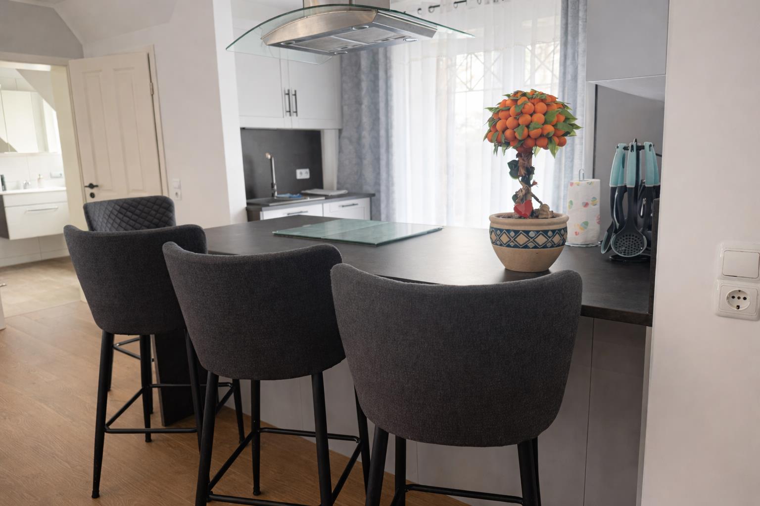 Hochwertige Ausstattung mit modernen Geräten und stilvollen Möbeln