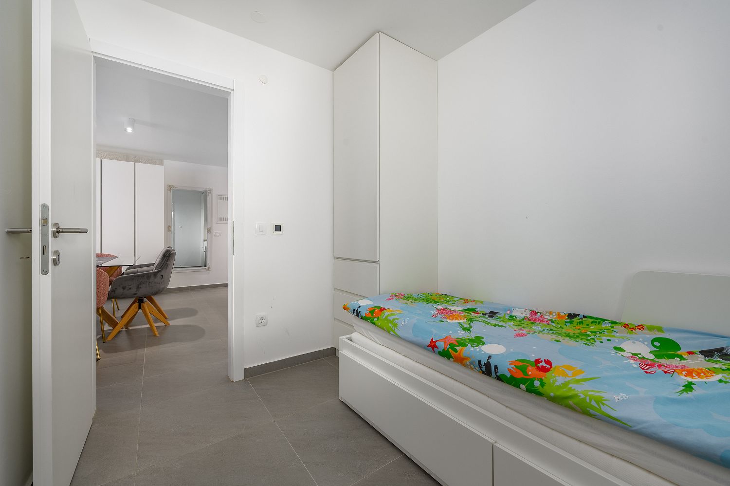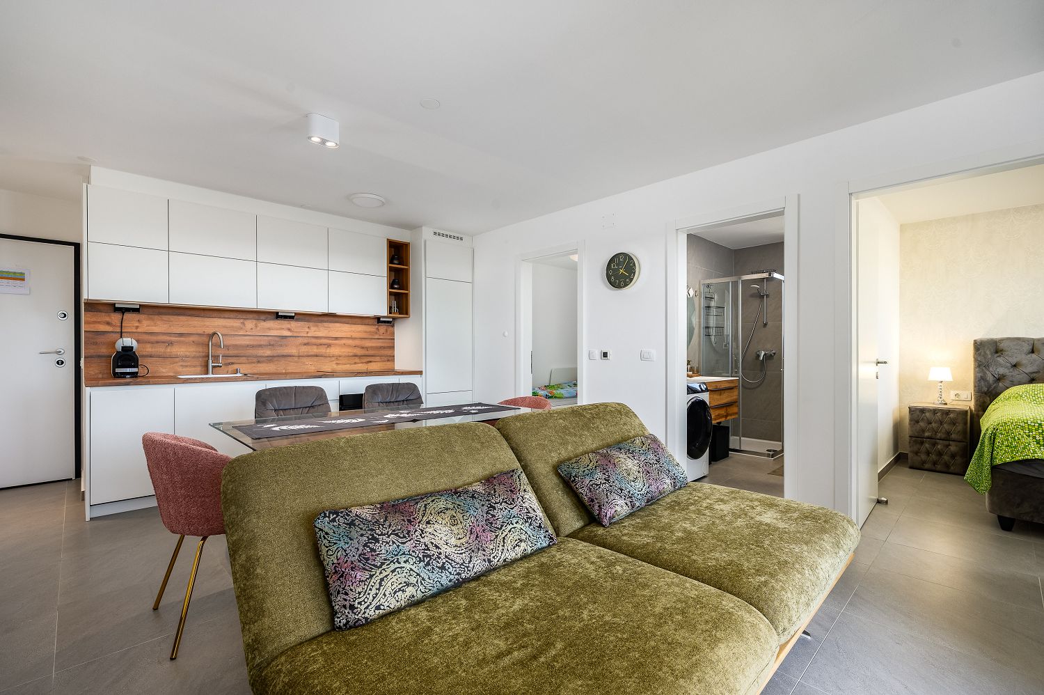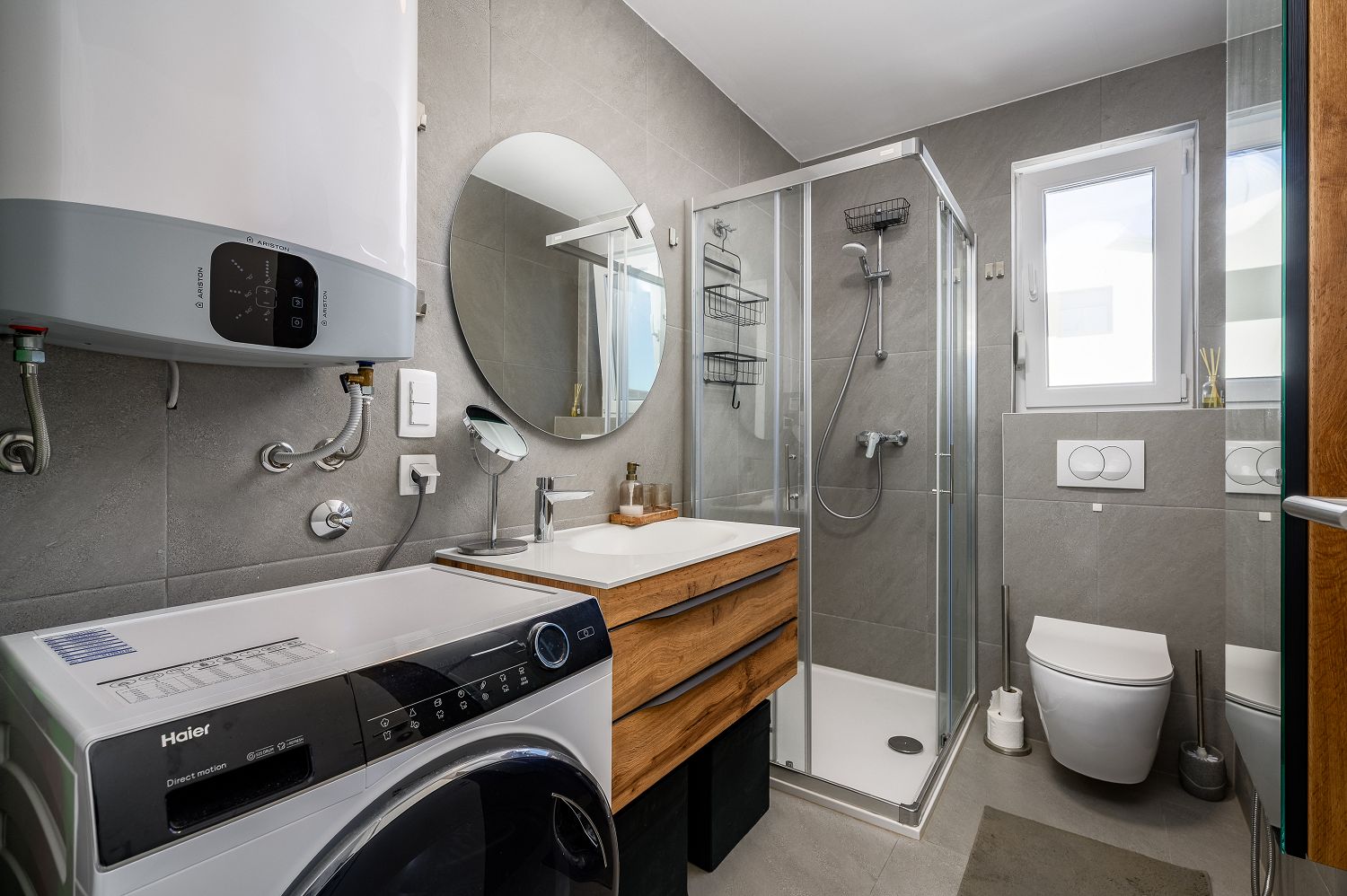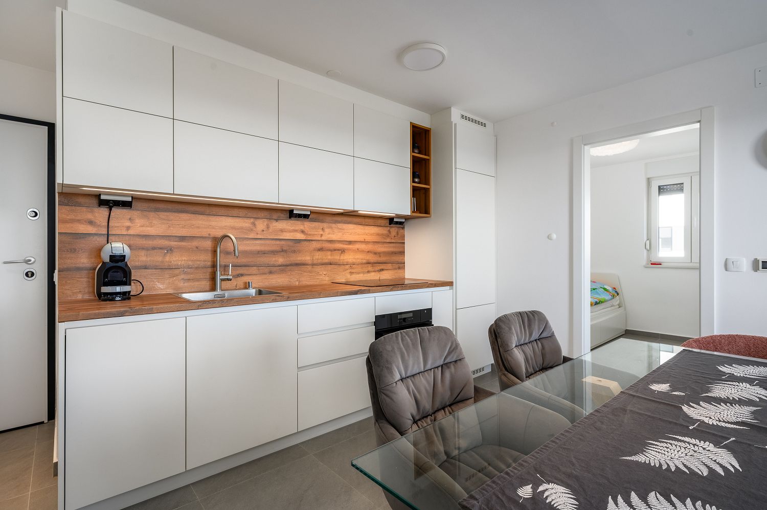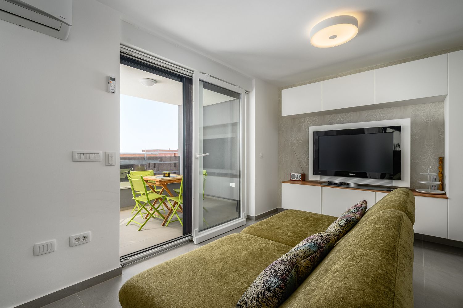 Willkommen in dieser modernen Wohnung im ersten Stock eines neueren Wohngebäudes in Zambratija. Ein privater Parkplatz ist vorhanden. Die Unterkunft ist 850 Meter vom Sandstrand entfernt. Sie ist ideal für einen angenehmen Urlaub mit Familie oder Freunden.