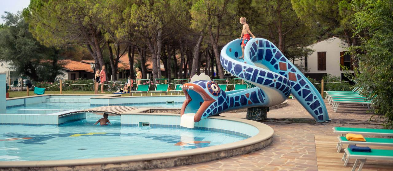 Die familienfreundliche Ferienanlage Residence Punta Spin liegt inmitten der wunderschönen Lagunenlandschaft der nördlichen Adria, nur 6 km von Grado entfernt. Eingebettet in einen üppigen, schattenspendenden Pinienwald bietet die Ferienanlage neben Ruhe und Erholung eine Vielzahl von Unterhaltungsmöglichkeiten. Sie befindet sich direkt an einem flachabfallenden Strand, an dem es sowohl einen freien Strandabschnitt, als auch einen privaten Bereich mit der Möglichkeit Sonnenschirme- und -Liegen anzumieten, gibt. Alternativ sorgt die grosszügige Poolanlage für Abkühlung während der Sommermonate. Hier steht ein halbolympisches Becken, ein Kinderpool mit Rutsche und ein Allwetterpool, der bei schlechtem Wetter überdacht werden kann, zur Verfügung. Ein Animationsteam sorgt in der Hochsaison für Unterhaltung. Aktivurlauber kommen ebenfalls auf Ihre Kosten: die Anlage verfügt über einen Tennis-, Basketball- und Fussballplatz, Minigolf und einen Fahrradverleih. Für das leibliche Wohl sorgen ein Restaurant/Pizzeria, eine Beach- und Poolbar und eine Eisdiele. Zu den weiteren Leistungen gehören: ein Supermarkt mit Zeitungen und Tabakwaren, Münzwaschmaschinen und Ausflugsangebote (gegen Gebühr).