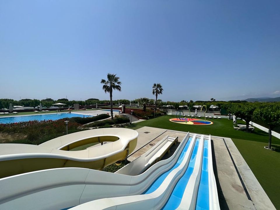 Die familienfreundliche Unterkunft befindet sich in der wunderschönen Ferienanlage Els Pins. Das Feriendorf liegt an der nördlichen Costa de Barcelona, zwischen dem malerischen Fischerstädtchen Malgrat de Mar und dem grösseren Küstenort Blanes mit seinen vielfältigen Geschäften, Sehenswürdigkeiten und gastronomischen Angeboten. Das Feriendorf befindet sich in privilegierter Lage direkt am Meer und ist somit ideal für Familien. Für Jung und Alt steht ein breites Sportangebot und Animationsprogramm mit Abendunterhaltung zur Verfügung (von Anfang Juli bis Ende August). Auf Kinder wartet der Miniclub und zwei Spielplätze, wo sie sich nach Herzenslust austoben können. Die Anlage verfügt über zwei Poolanlagen (die Poolanlage Mediterránea ist nur in der Hochsaison geöffnet) mit jeweils einem Erwachsenenpool und einem Kinderpool. Die Poolanlage Oasis wartet ausserdem mit grossen Wasserrutschen auf. Für Ihr leibliches Wohl ist durch den Supermarkt und das Restaurant mit Terrasse direkt bei der Poolanlage sowie eine Bar für kleine Imbisse gesorgt. Weiter stehen Ihnen ein Fahrradverleih, Schliessfächer in der Rezeption sowie Münzwaschmaschinen und Trockner zur Verfügung.