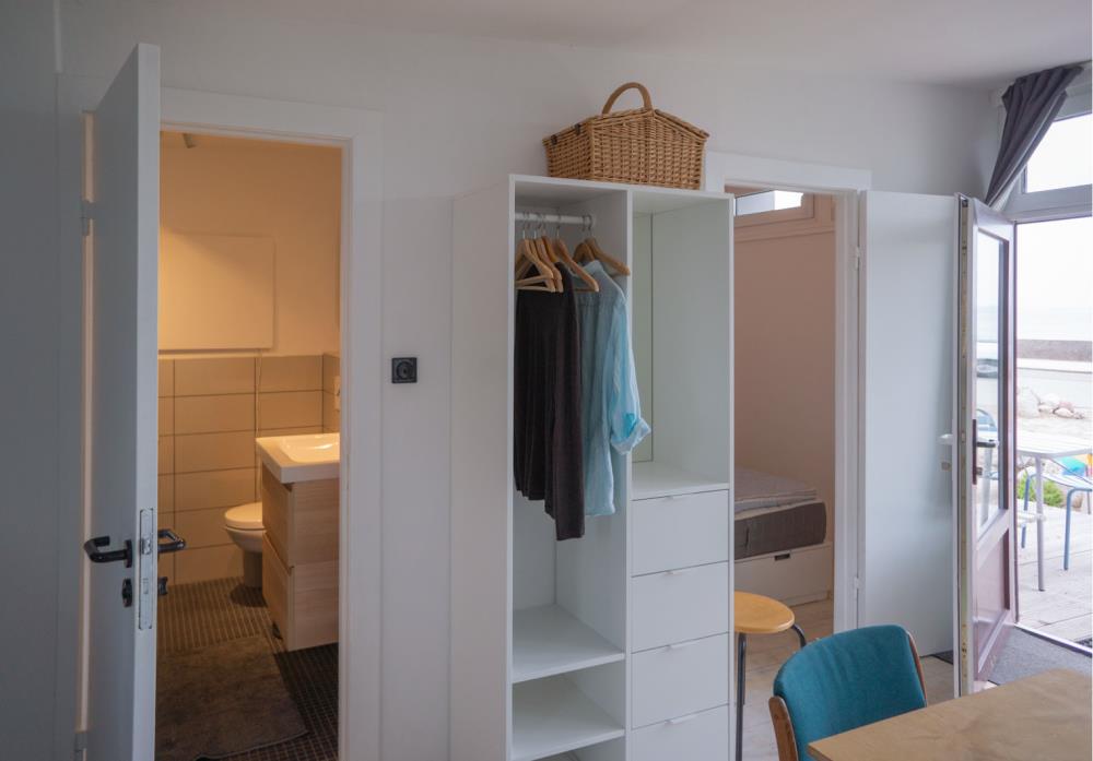 Die Wohnung wird ohne Parkplatz vermietet. Das Auto kann aber wenige Meter Landeinwärts in einer Seitenstraße abgestellt werden.
