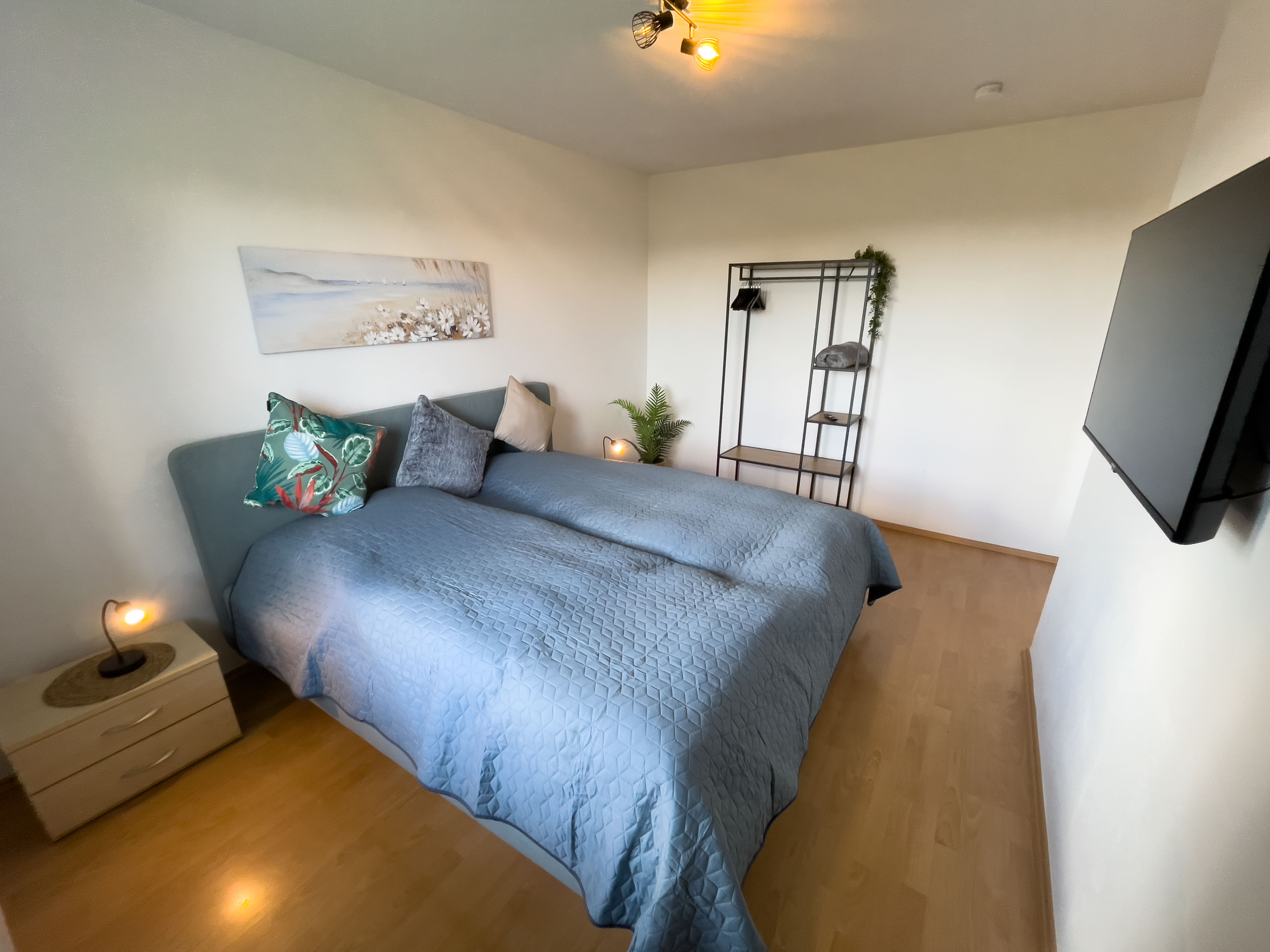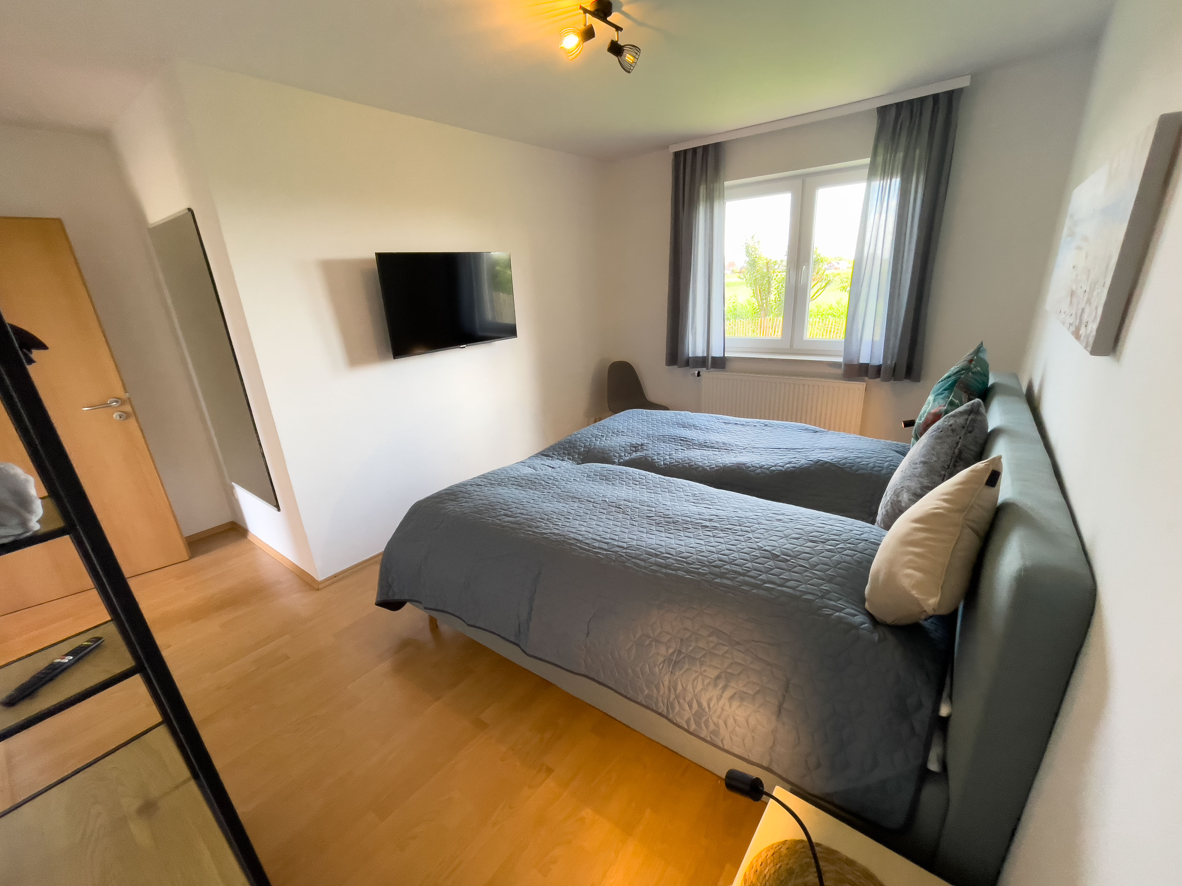 Der Bungalow verfügt über drei Schlafzimmer, jeweils mit einem Doppelbett und ausreichend Stauraum. Im Hauptschlafzimmer sorgt ein weiterer Smart-TV für Unterhaltung. Das moderne Bad ist mit Dusche und WC ausgestattet; zusätzlich steht Ihnen ein separates Gäste-WC zur Verfügung. Eine Waschmaschine befindet sich ebenfalls im Haus.