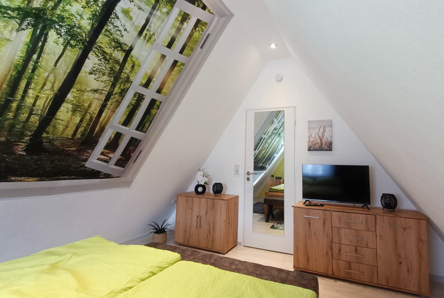 - ein Schlafzimmer mit Doppelbett (160x200) und TV