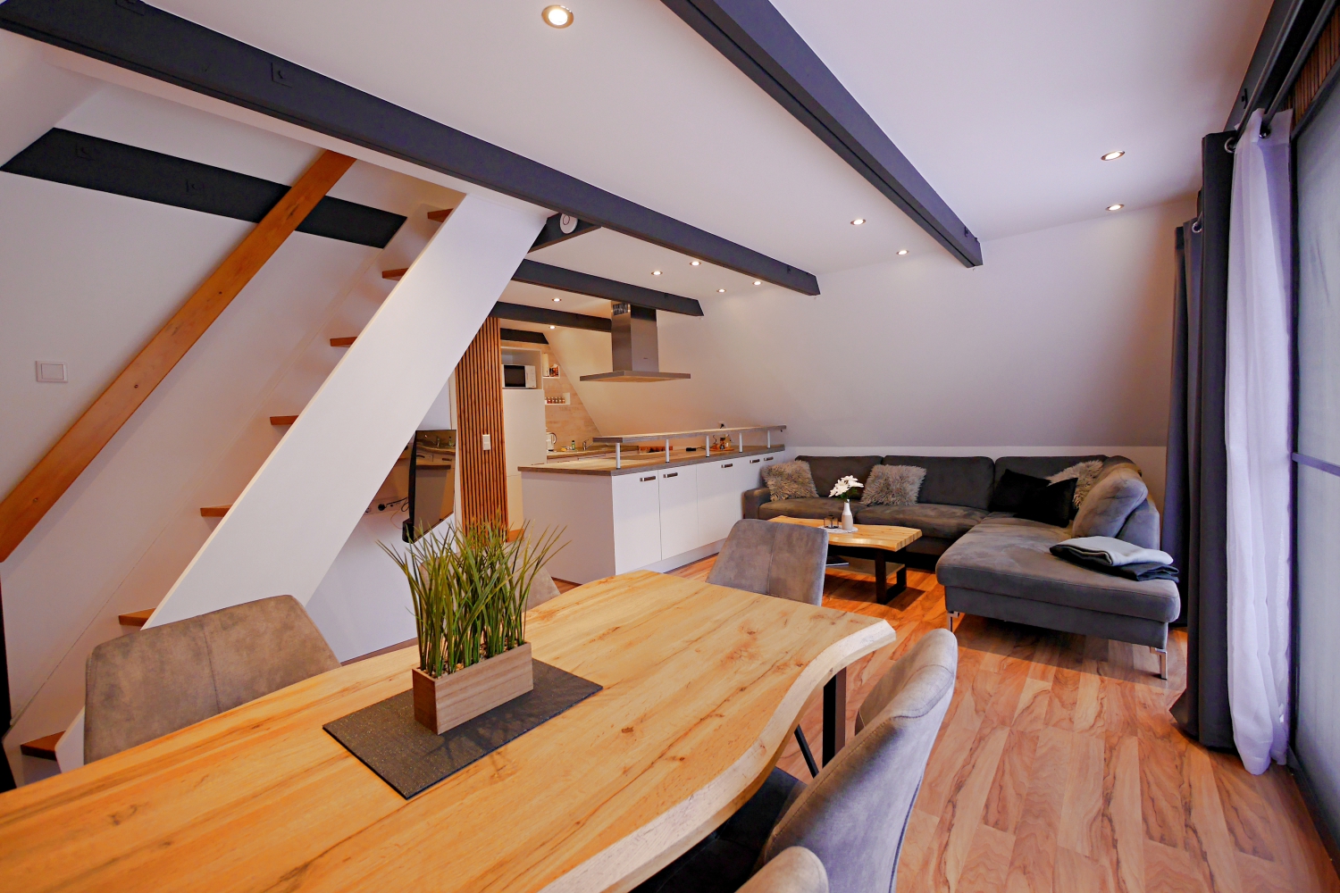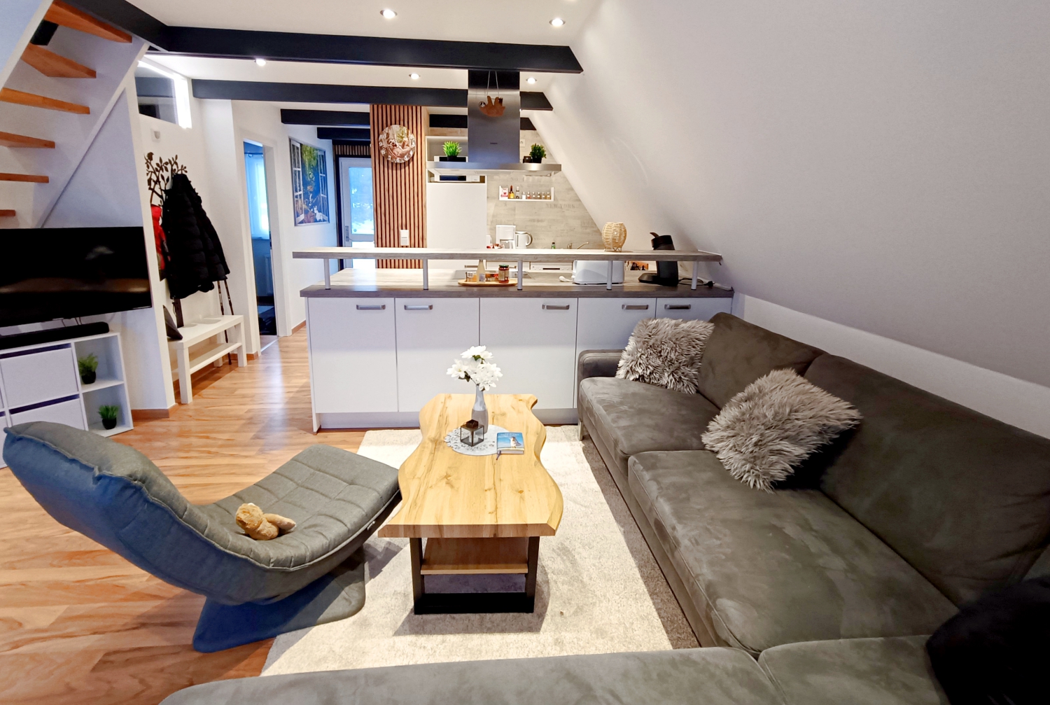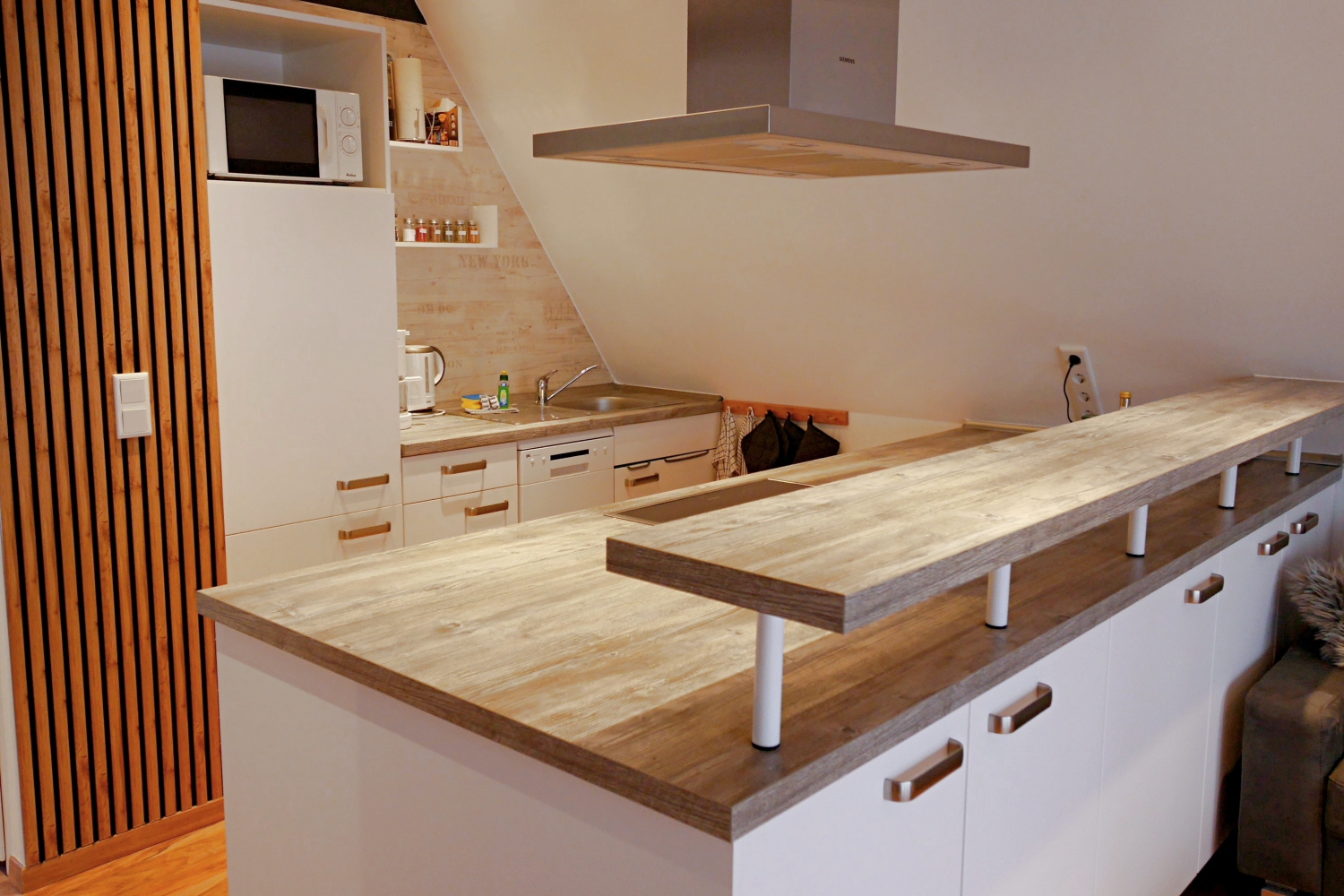 - offene Küche mit Theke und TOP-Ausstattung, die kaum Wünsche offen lässt: u.a. Mikrowelle, Geschirrspüler, Kaffeemaschine, PAD-Maschine, Wasserkocher, Toaster, Mixer, Waffeleisen/Sandwichtoaster