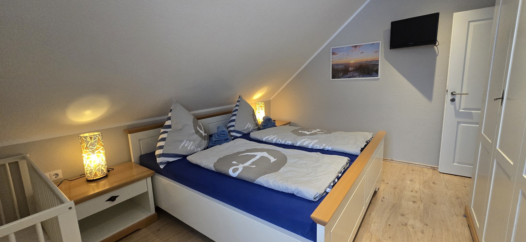 Komfortables Ferienhaus für bis zu 7 Personen und 1 Kleinkind Neubau 2010, Wohn-Esszimmer, Einbauküche mit Spülmaschine, Mikrowelle und Backofen 4 separate Schlafzimmer, davon 1 Schlafzimmer ebenerdig 2 Bäder, Waschmaschine und Trockner LCD Fernseher und WLAN Kinderbett, Wickelkommode und Kinderstuhl Terrasse mit Gartenmöbel und Liegen, Spiel- und Liegewiese in Süd/Westlage Grill, Fahrradhaus mit Bollerwagen, Parkplatz am Haus 150 Meter bis zum Badestrand und zur PromenadeIch stimme der Verarbeitung von Daten (insbesondere meiner IP-Adresse) und deren Übertragung außerhalb der EU durch OpenStreetMap zu, um die Karte anzuzeigen.
