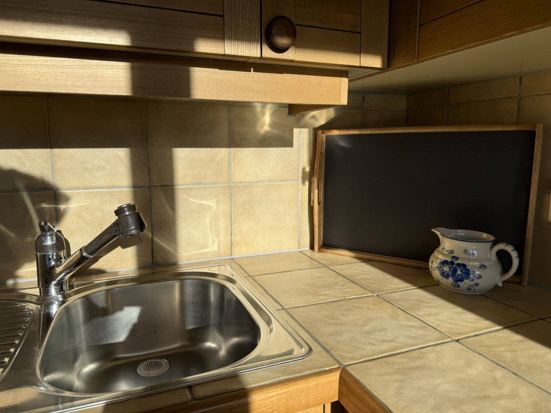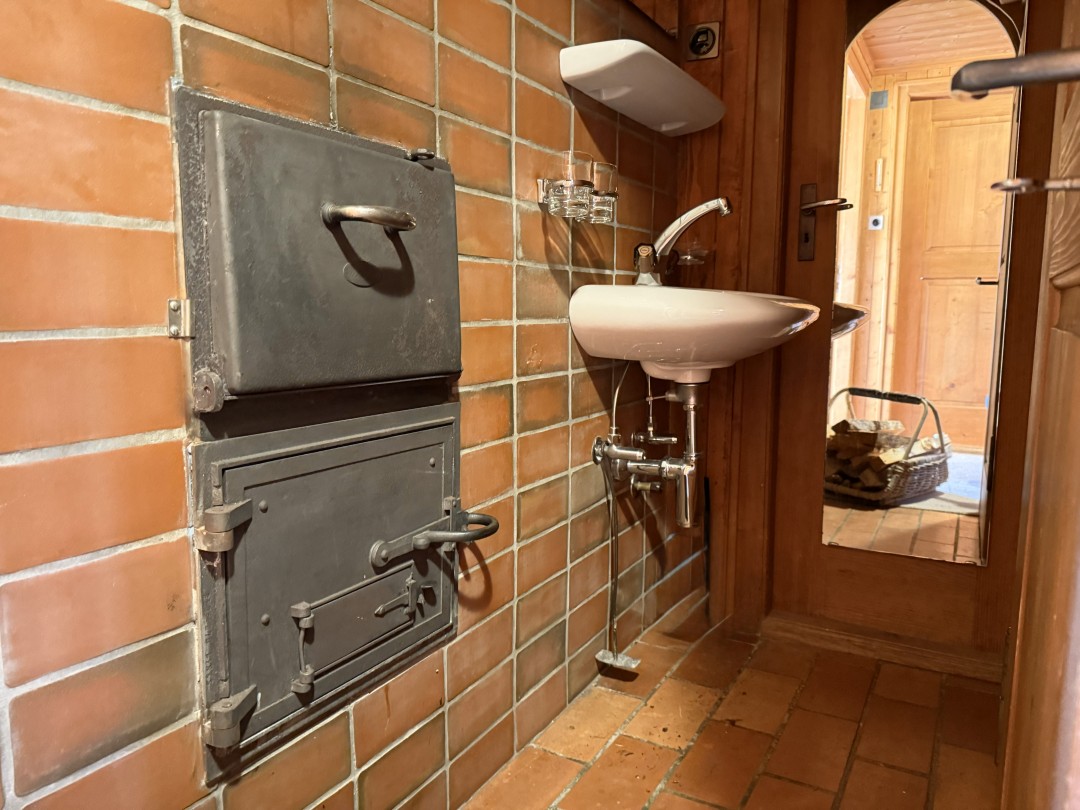 Geheizt wird mit dem Holzofen. Eine Anweisung liegt auf, bitte unbedingt beachten.