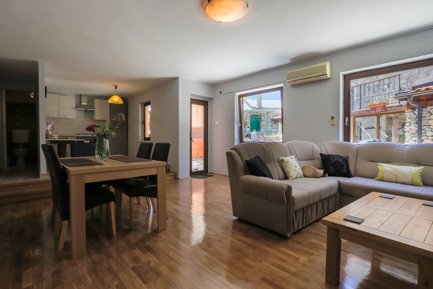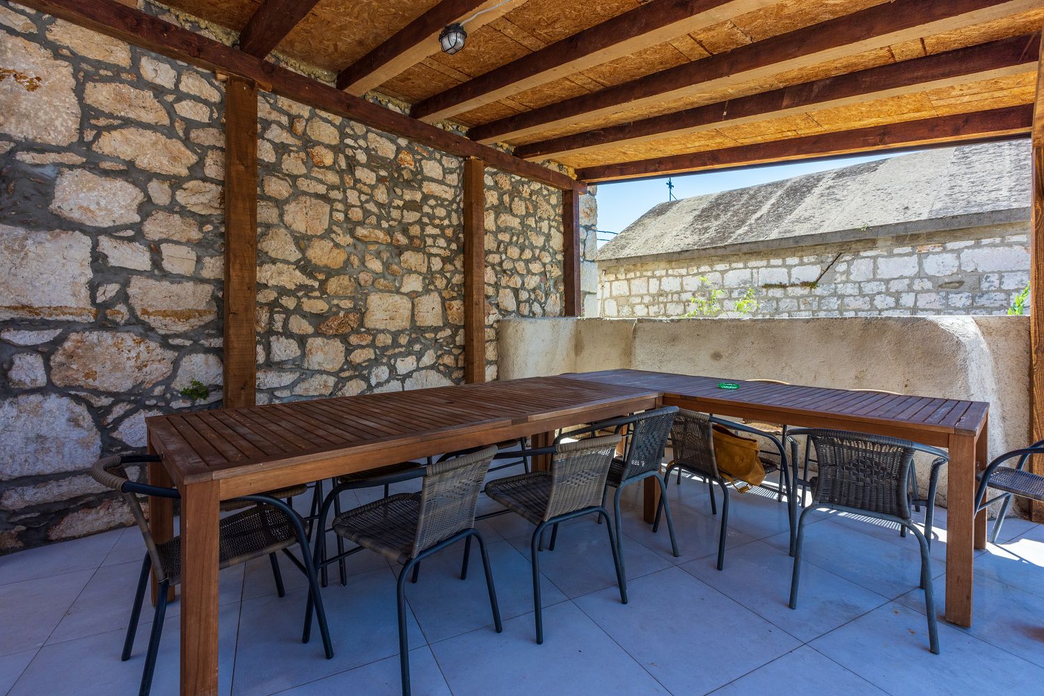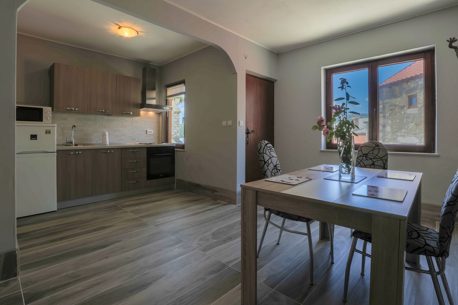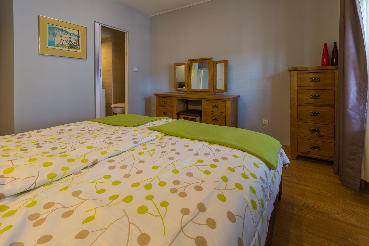 Die erste Einheit befindet sich im Erdgeschoss des Haupthauses und besteht aus zwei Schlafzimmern, einem Wohn-/Esszimmer mit Küche, einem Badezimmer, einem Gäste-WC und einem Flur. Hinzu kommt eine überdachte Terrasse. Die zweite Einheit befindet sich im ersten Obergeschoss des Haupthauses und verfügt über zwei Schlafzimmer, ein Wohn-/Esszimmer mit Küche, in dem sich eine Schlafcouch befindet, zwei Badezimmer, einen möblierten Balkon und einen Flur. Die dritte Einheit ist das Steinhaus, das eine angenehme und gut ausgestattete Küche, ein Wohnzimmer, zwei Schlafzimmer, zwei Badezimmer und einen kleinen Balkon bietet. Die Apartments des Haupthauses stehen auch außerhalb der Hauptsaison (Juli/August) zur Verfügung zur Einzel- oder Gesamtvermietung zur Verfügung. In der kalten Jahreszeit sind die Die Räume können u. a. mit der Heizfunktion der Klimaanlagen beheizt werden. Haustiere sind herzlich willkommen.