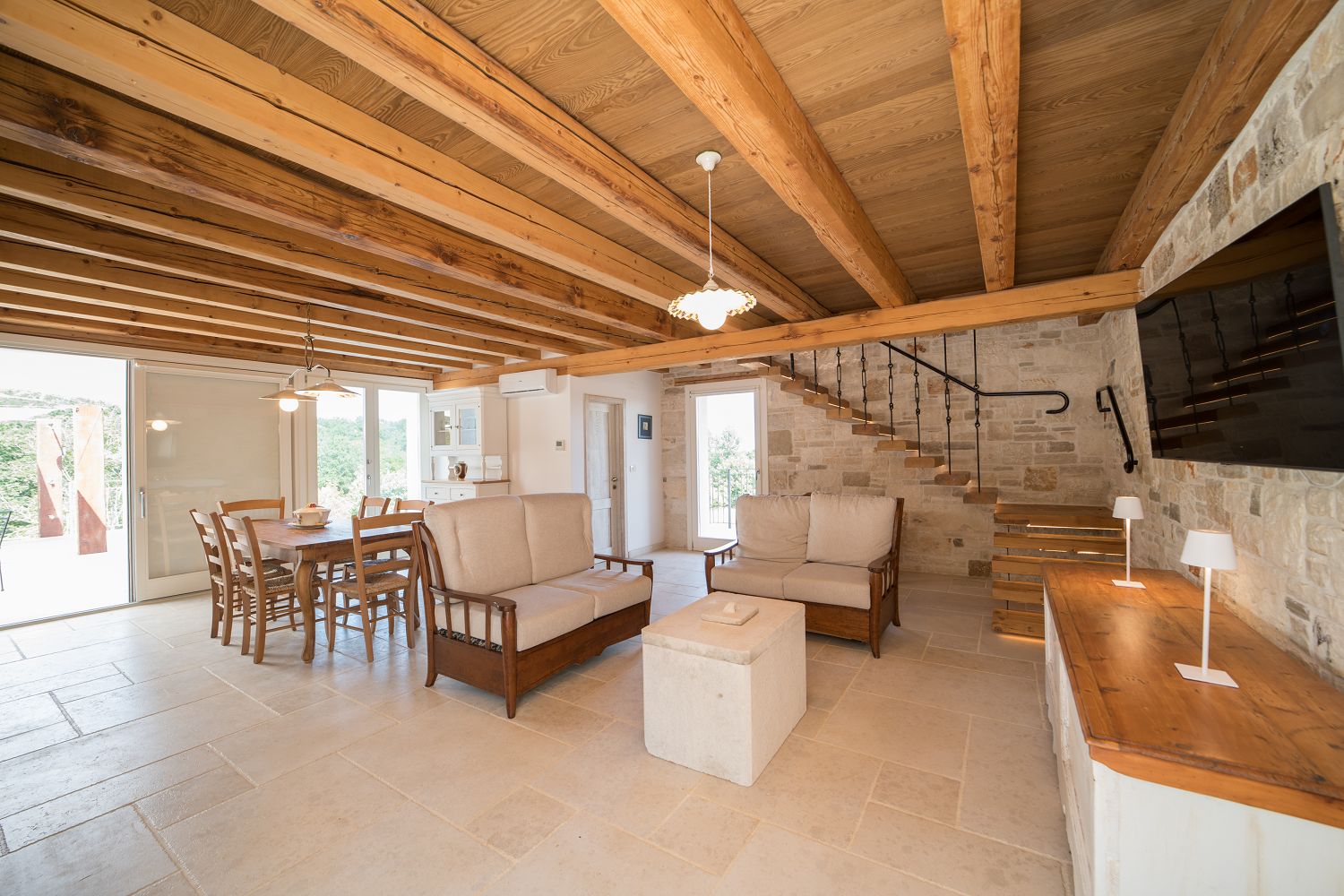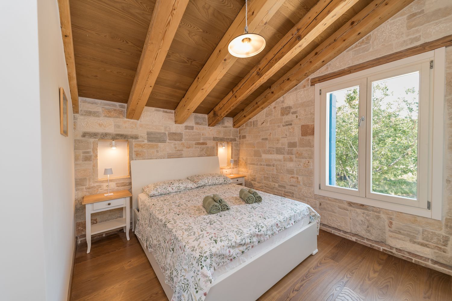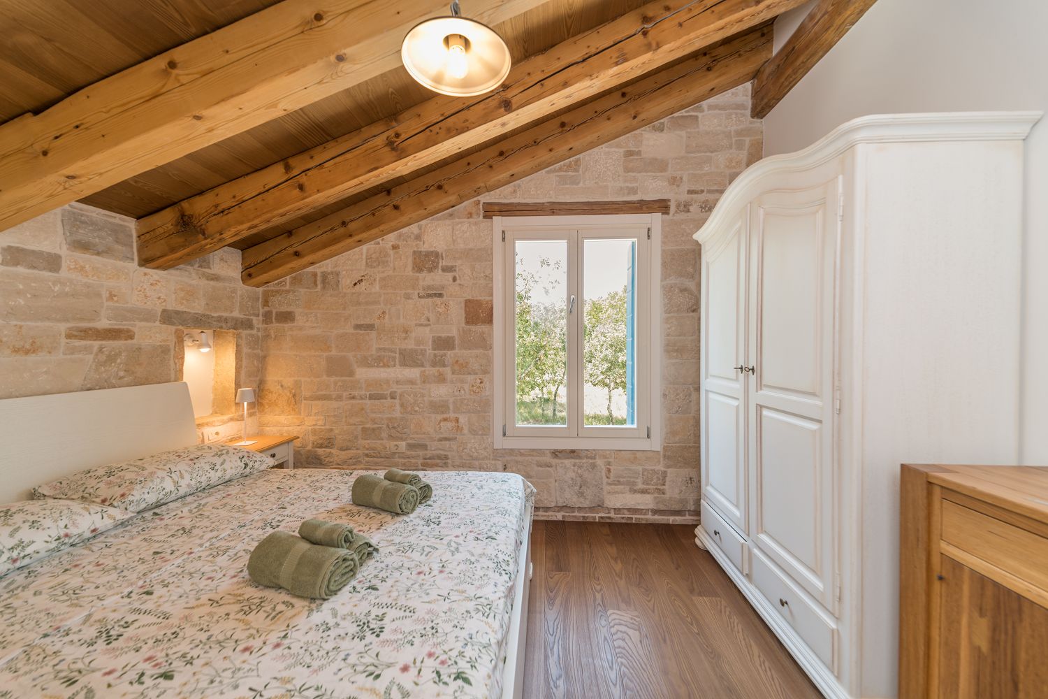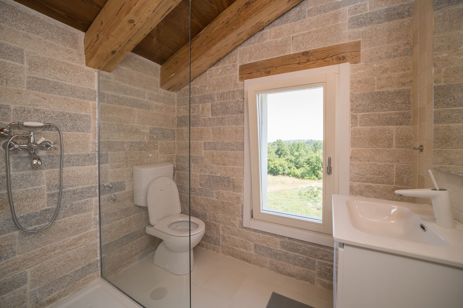 Willkommen in diesem tollen Anwesen, einer neu erbauten istrischen Steinvilla, die Ihnen ein bezauberndes Urlaubserlebnis verspricht. Dieser reizvolle Zufluchtsort liegt in einem ruhigen, kleinen Dorf, ist von grüner Natur umgeben und bietet seinen Gästen Frieden und Ruhe. Betreten Sie die Villa und fühlen Sie sich in vergangene Zeiten versetzt. Die aufwendigen Details vermitteln ein Gefühl von antikem Charme und integrieren gleichzeitig modernen Komfort. Eines der Haupthighlights der Villa ist der private Swimmingpool. Dank des Heizsystems können Sie das ganze Jahr über ein erfrischendes Bad genießen und sich im wohltuenden Wasser entspannen. Die Villa verfügt über zwei separate Einheiten, die für mehr Komfort und Privatsphäre sorgen. Beide sind komplett ausgestattet und verfügen über eine eigene Küche, einen Ess- und Wohnbereich. Die größere Einheit verfügt über zwei Schlafzimmer mit eigenem Bad und Queensize-Betten, die kleinere über ein Schlafzimmer mit einem Queensize-Bett. Genießen Sie Ihren Urlaub gemeinsam mit Familie oder Freunden, teilen Sie den Spaß und bewahren Sie Ihre Privatsphäre.
