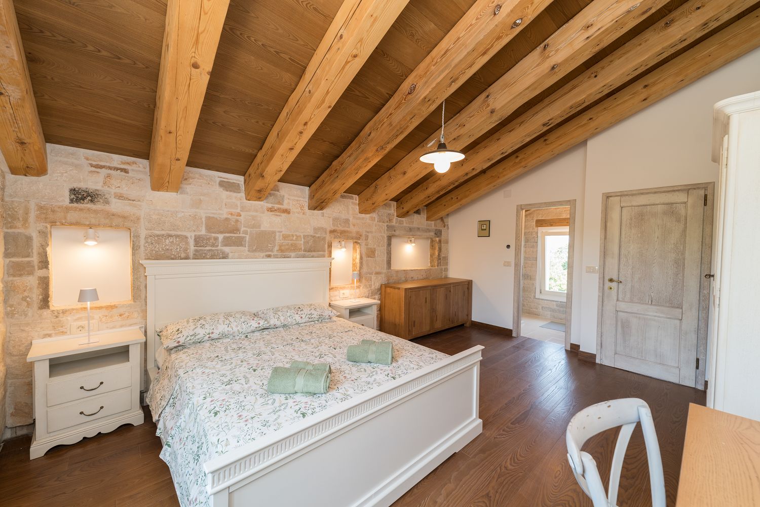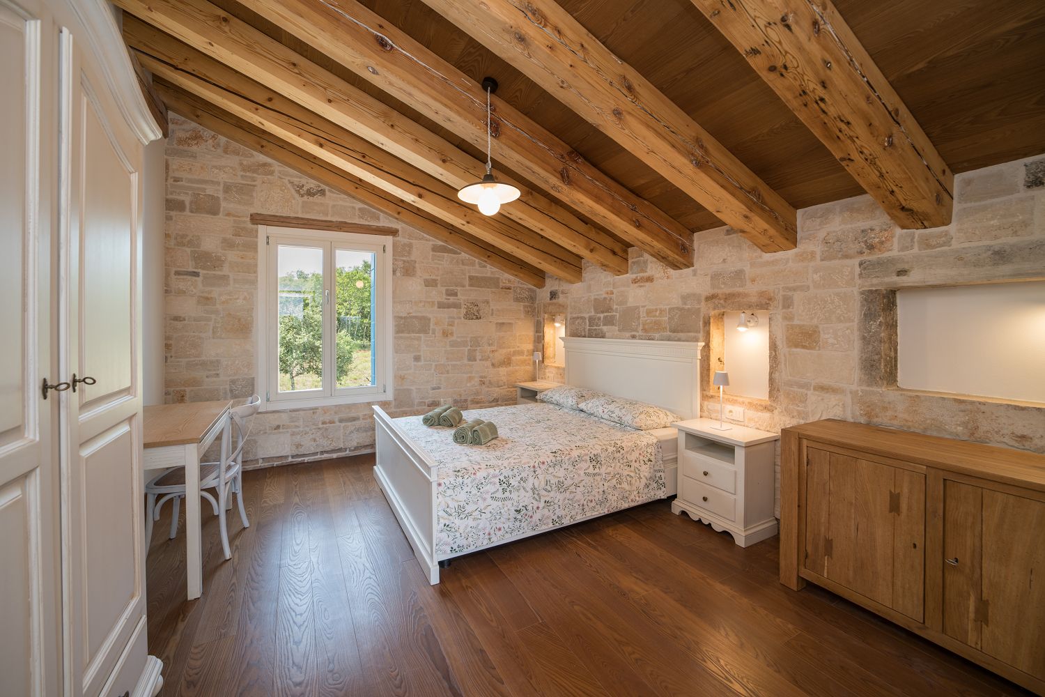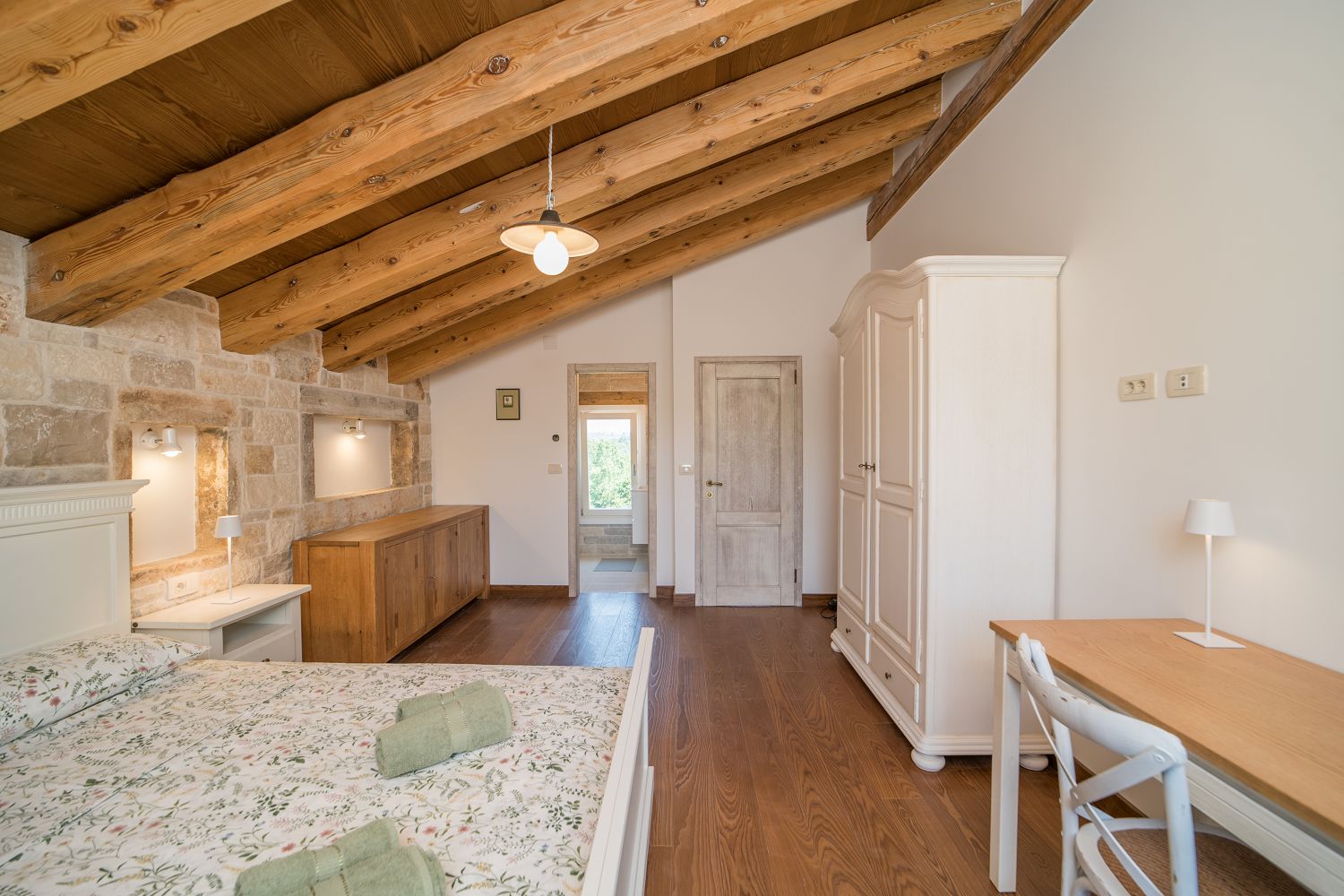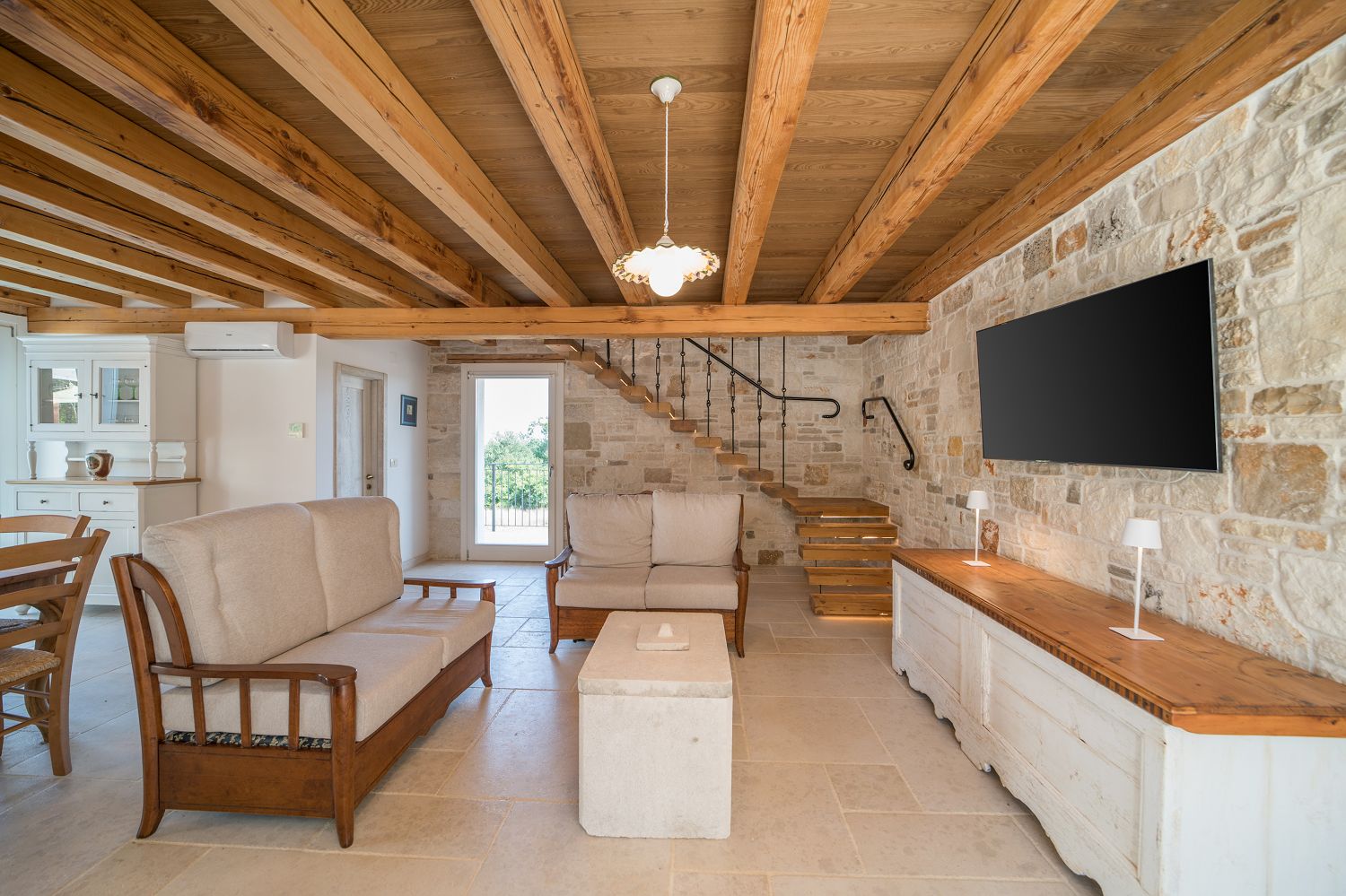 Willkommen in diesem tollen Anwesen, einer neu erbauten istrischen Steinvilla, die Ihnen ein bezauberndes Urlaubserlebnis verspricht. Dieser reizvolle Zufluchtsort liegt in einem ruhigen, kleinen Dorf, ist von grüner Natur umgeben und bietet seinen Gästen Frieden und Ruhe. Betreten Sie die Villa und fühlen Sie sich in vergangene Zeiten versetzt. Die aufwendigen Details vermitteln ein Gefühl von antikem Charme und integrieren gleichzeitig modernen Komfort. Eines der Haupthighlights der Villa ist der private Swimmingpool. Dank des Heizsystems können Sie das ganze Jahr über ein erfrischendes Bad genießen und sich im wohltuenden Wasser entspannen. Die Villa verfügt über zwei separate Einheiten, die für mehr Komfort und Privatsphäre sorgen. Beide sind komplett ausgestattet und verfügen über eine eigene Küche, einen Ess- und Wohnbereich. Die größere Einheit verfügt über zwei Schlafzimmer mit eigenem Bad und Queensize-Betten, die kleinere über ein Schlafzimmer mit einem Queensize-Bett. Genießen Sie Ihren Urlaub gemeinsam mit Familie oder Freunden, teilen Sie den Spaß und bewahren Sie Ihre Privatsphäre.