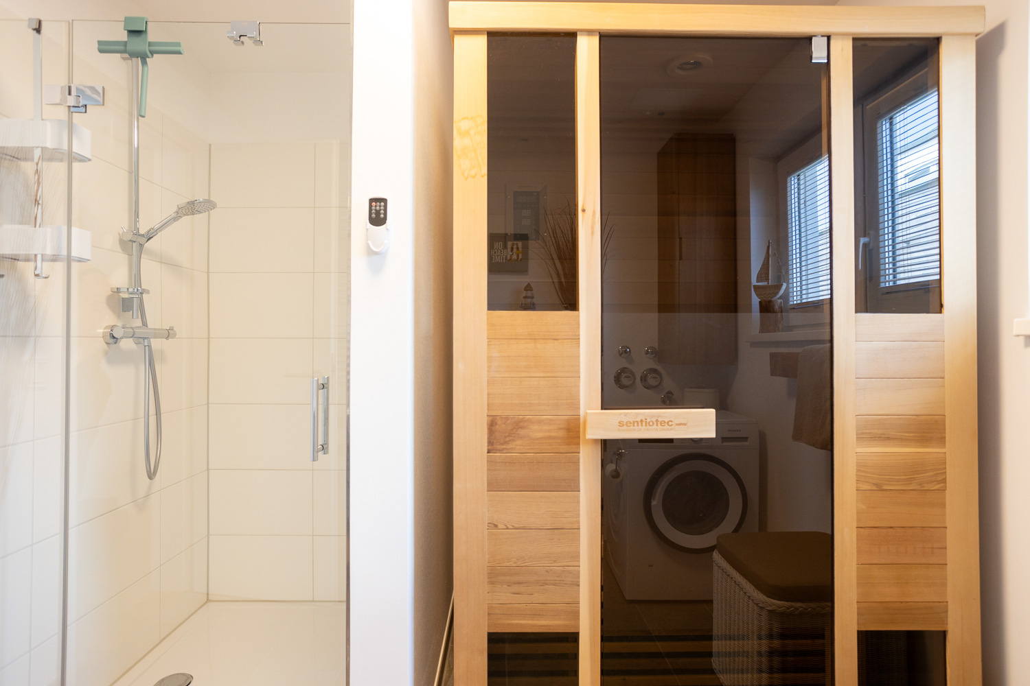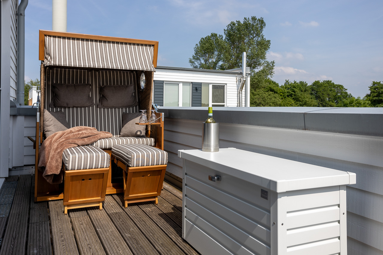 Terrasse, Dachterrasse, Kaminofen, Infrarot-Sauna, Strandkorb, Weitblick bis zum Horizont, frische Nordseeluft und das Lachen der Möwen. Könnt Ihr es fühlen?