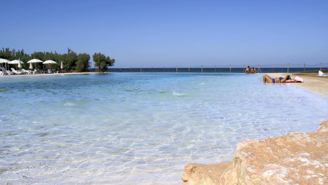 STRANDEin bequemer Weg von 250 Metern durch einen Pinienwald verbindet den Haupteingang des Feriendorfs mit dem nahegelegenen Sandstrand, der frei zugänglich ist und bequem zu Fuß oder mit dem Fahrrad erreicht werden kann. Darüber hinaus haben die Gäste des Feriendorfs direkten Zugang zu einem Bereich mit niedrigen Klippen, ebenfalls mit freiem Zugang, ideal für diejenigen, die die felsige Küste erkunden möchten.