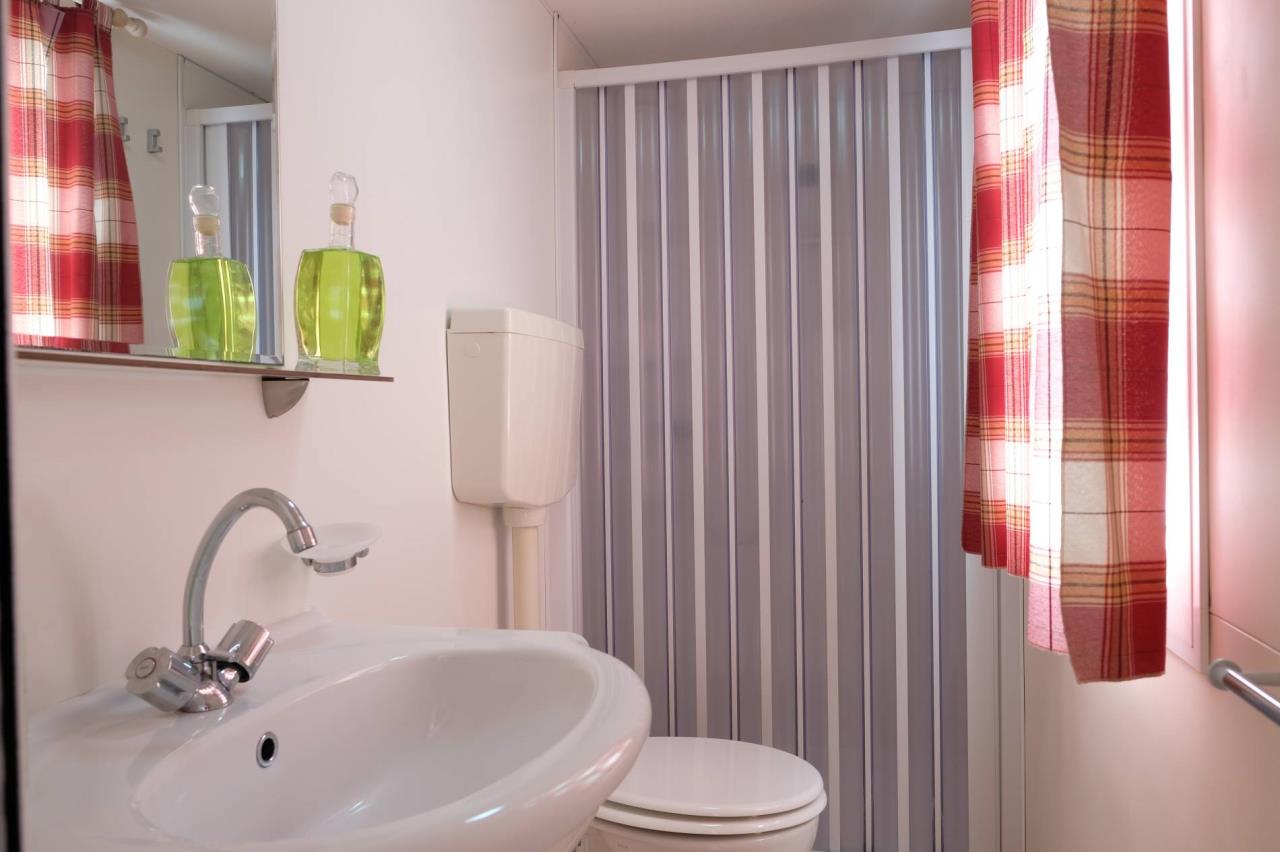 Das Mobilehome Happy Easy bietet Platz für max. 6 Personen (davon mind. 1 Kind unter 12 Jahren). Die Unterkunft besteht aus einem Schlafzimmer mit Doppelbett und einem Schlafzimmer mit zwei Einzelbetten und einem Hochbett für ein Kind unter 12 Jahren. Die Sitzbank im Wohnbereich kann bei Bedarf in einen weiteren Schlafplatz umfunktioniert werden. Die Küchenzeile befindet sich ebenfalls im Wohnbereich und verfügt über einen 4-Flammen-Gasherd, Geschirr, Besteck, Töpfen und einen Kühlschrank mit kleinem Gefrierfach. Das Badezimmer ist mit einem WC, einer Dusche und einem Waschbecken ausgestattet. Der halbüberdachte Aussenbereich ist mit Tisch und Stühlen, sowie zwei Liegen oder Liegestühlen und einer elektrischen Grillplatte ausgestattet. Wenn Sie mehr als eine Unterkunft benötigen, ist dies bei uns in der Regel möglich, da wir über mehrere Objekte des gleichen Haustyps verfügen.