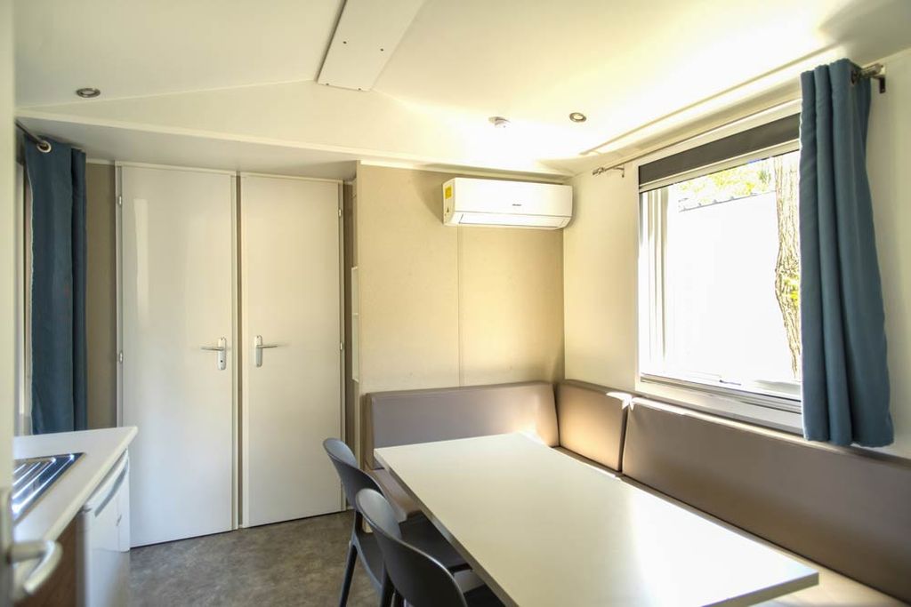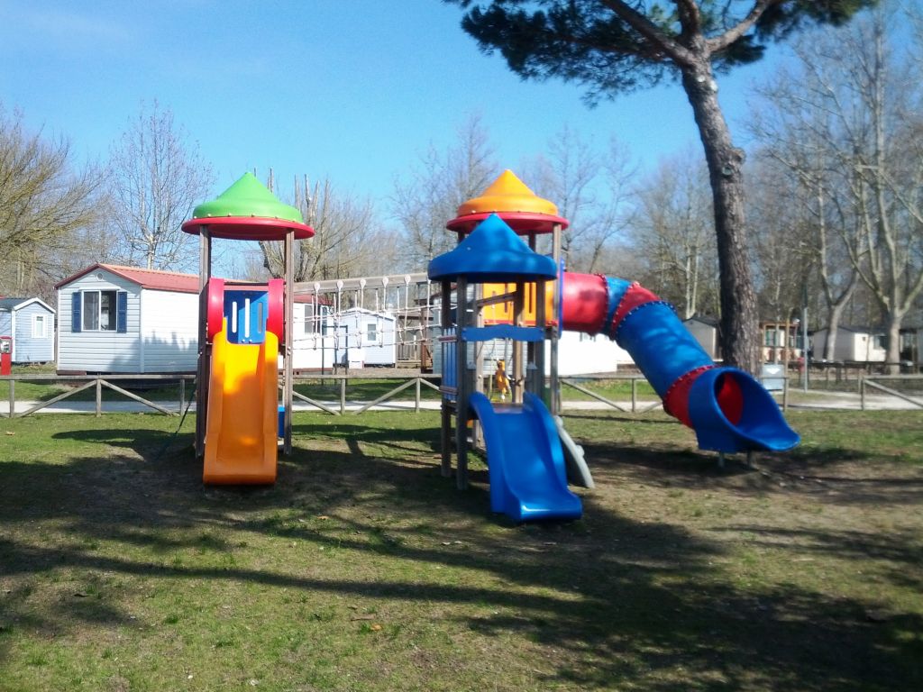 Das 2019 erbaute Mobilehome Orione ist für maximal 5 Personen, davon mindestens ein Kind bis max. 7 Jahre ausgelegt. Es verfügt über ein Schlafzimmer mit Doppelbett und ein zweites Zimmer mit zwei Einzelbetten sowie einem kleinen queren Bett oben drüber, die Fenster sind mit Mückengitter ausgestattet. Das Wohnzimmer verfügt über einen TV sowie eine kleine Kochnische mit einem 4-Flammen Gasherd, italienischer Mokkamaschine, Pfannen, Töpfen, Geschirr und Besteck sowie einem kleinen Kühlschrank. Die Unterkunft verfügt über zwei Badezimmer mit WC, Dusche und Waschbecken. Der überdachte Holzterrasse mit Tisch und Stühlen lädt zum gemütlichen Entspannen ein, während die Kinder sich auf dem Spielplatz oder am Pool austoben können. Ein Wäscheständer ist vorhanden. Weiter stehen Kinderbett und Hochstühle zur Verfügung (bei Buchung bitte reservieren). Klimaanlage vorhanden, Grillen erlaubt (Gas oder elektrisch) ein Parkplatz innerhalb der Anlage ist auch vorhanden. Fahrzeit am ital. Grenze ca. 3.5h. Auf Wunsch kann vor Ort auch Halb- oder Vollpension dazu gebucht werden. Hinweis Wenn Sie mehr als eine Unterkunft benötigen, ist dies bei uns in der Regel möglich, da wir über mehrere Objekte des gleichen Haustyps verfügen.