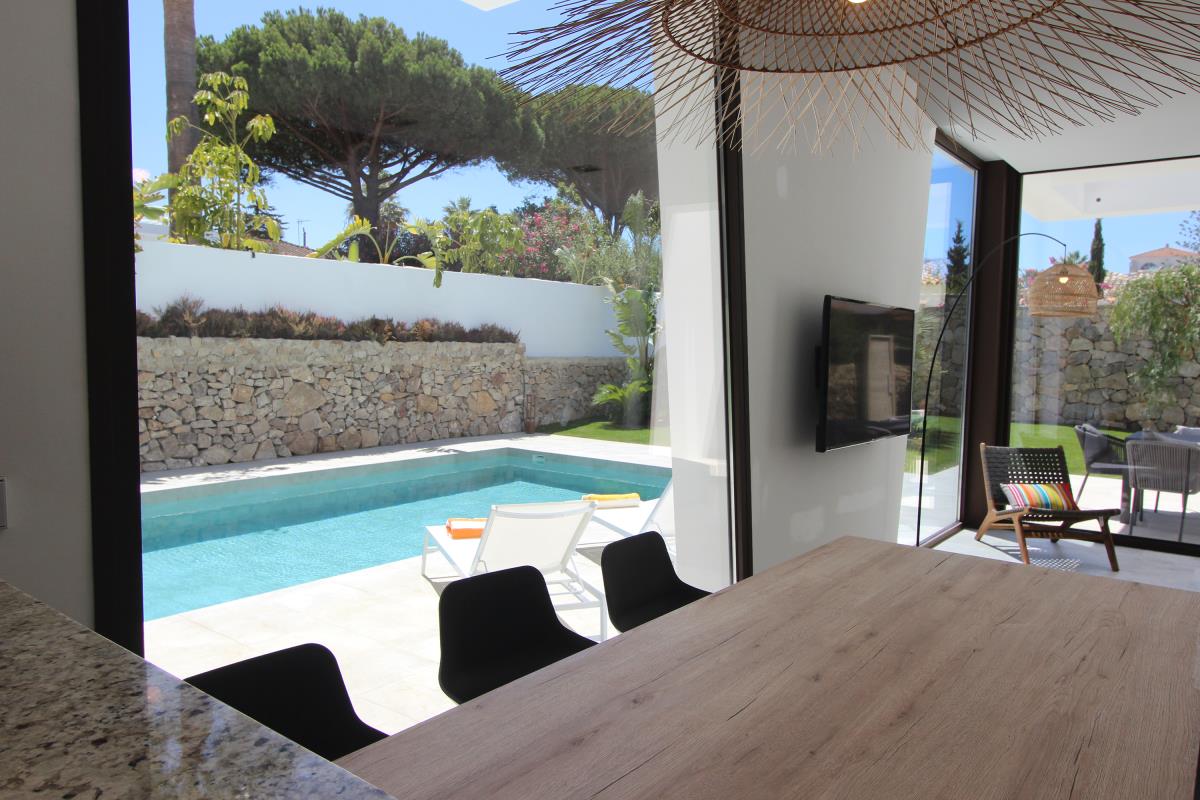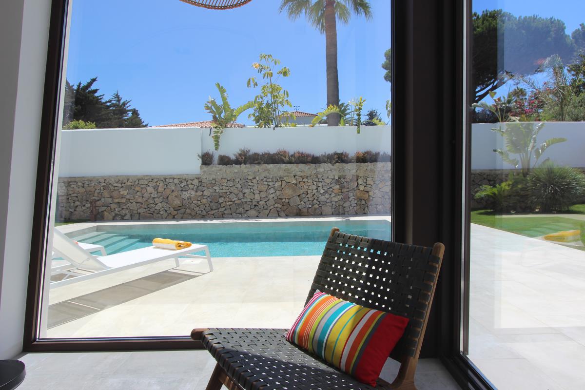 Casa Holbox A ist eine wunderschöne Doppelhaushälfte, die durch seine luxuriöse Austattung überzeugt. Es befindet sich nur 300 Meter vom Strand entfernt und 3 km von der schönen Altstadt Conils. Der Wohnraum hat ein grosses Sofa, einen 50 Zoll Flatscreen TV, in dem nationale und internationale Sender empfangen werden können. Das Haus ist mit Internet per Glasfaser und mit Klimaanlage ausgestattet. Die Küche besitzt alle Geräte die nötig sind für einen längeren Aufenthalt und am Esstisch gibt es Platz für bis zu 6 Personen. Außerdem gibt es im unteren Stockwerk ist ein Gäste-WC und im Garten eine sichtgeschützte Dusche mit kaltem und warmen Wasser. Im ersten Stock befinden sich die 3 Schlafzimmer. Das Hauptschlafzimmer hat ein großes Doppelbett, das zweite Schlafzimmer hat zwei 90x200 cm Betten, und das dritte Schlafzimmer ist mit einem 90x200 cm Bett ausgestattet und hat ausziehbares Bett, das genutzt werden kann, wenn zusätzlich noch ein Kind mitreist. Die zwei kleineren Zimmer teilen sich einen schönen Balkon. Der Garten ist rund um den Pool ist sehr schön angelegt und nachts sind Garten und Pool beleuchtet und bieten ein schöne Atmospäre. Ein (nicht zu großes) Auto kann auf dem Grundstück geparkt werden. Casa Holbox A ist ein ideales Haus für entspannte Ferien. Für zwei zusammen reisende Familien kann das Holbox B mit angemietet werden und die Verbindungstür im Garten geöffnet werden.