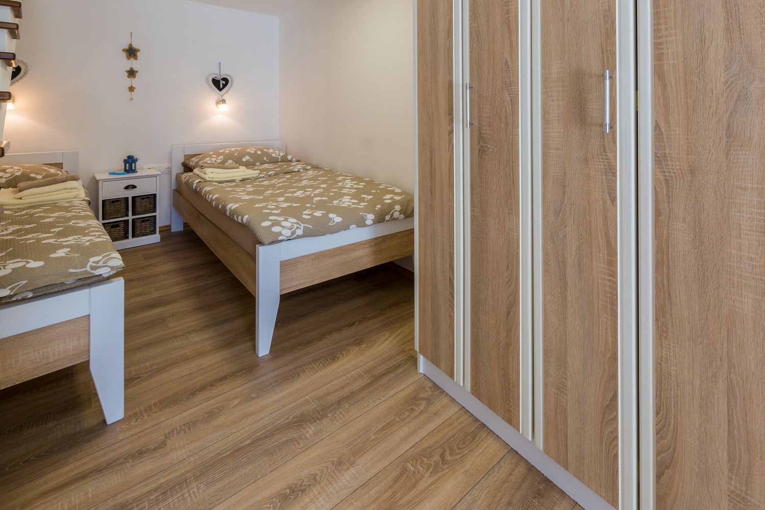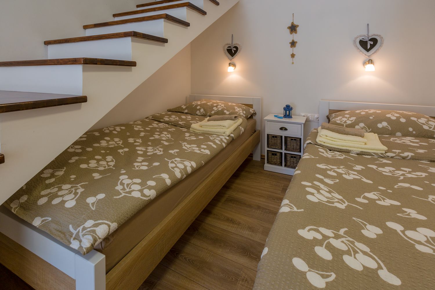 Das im Jahr 2017 neu eingerichtete Ferienhaus besticht durch sein angenehmes Ambiente im Zentrum der Altstadt von Crikvenica. Es ist ideal für Familien mit zwei Kindern, da es für maximal vier Personen geeignet ist. Der Eingang befindet sich im ersten Obergeschoss, wo sich eine komplett ausgestattete Küche mit Essbereich, ein Schlafzimmer und ein Badezimmer befinden. Von der Küche aus gelangt man auf die bestuhlte Terrasse, auf der man angenehme Abende verbringen kann. Über die Innentreppe gelangt man in die untere Etage, auf der sich ein Schlafzimmer, ein Badezimmer und der Wohnbereich mit einer Sitzcouch befinden. Als Extras bietet das gemütliche Ferienhaus WLAN, einen Grill und eine Klimaanlage. Der Parkplatz befindet sich auf einem privaten Grundstück, 50 m vom Haus entfernt. Es besteht auch die Möglichkeit, das Auto in einer Garage abzustellen. Diese befindet sich im 5 km entfernten Ort Grizane.