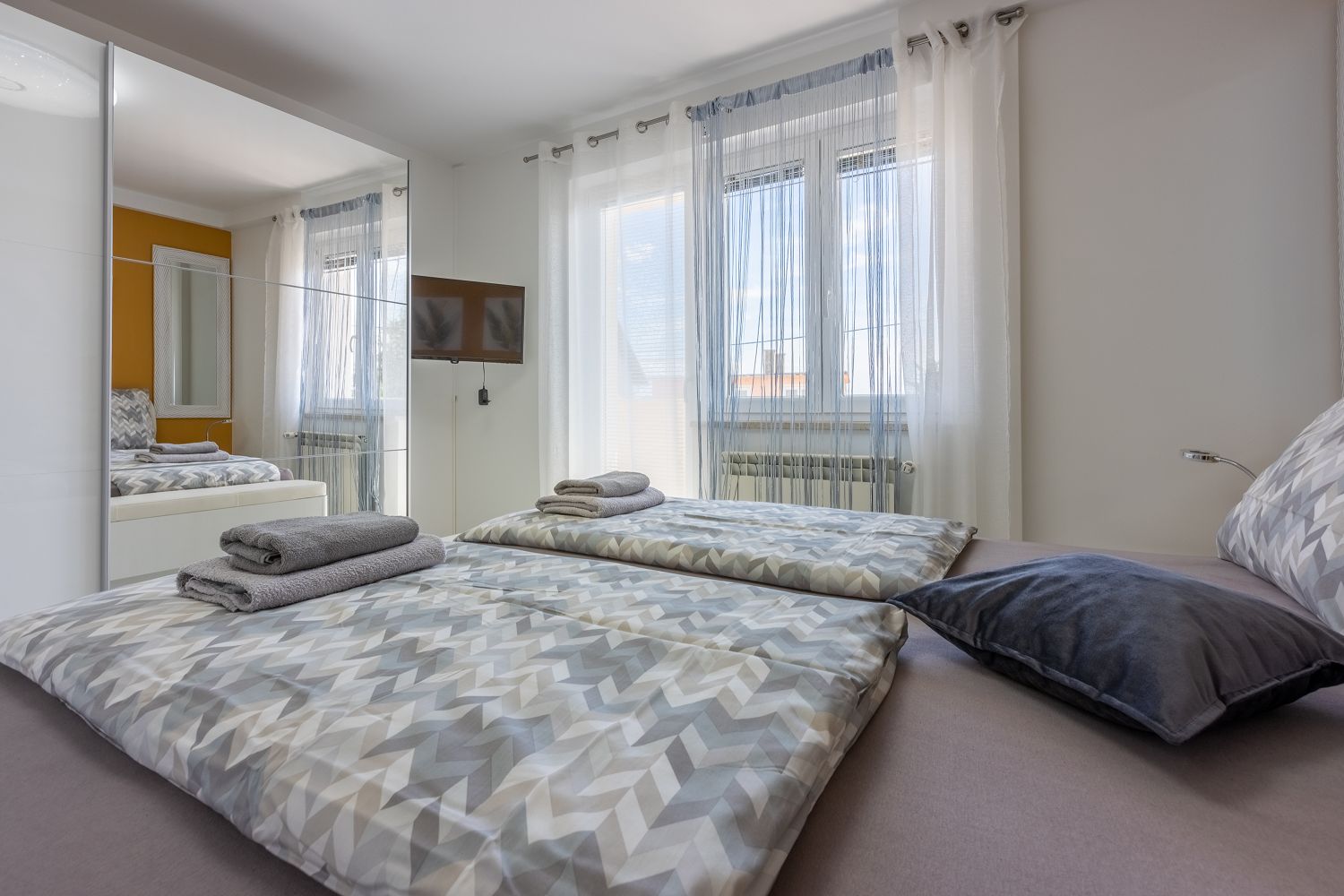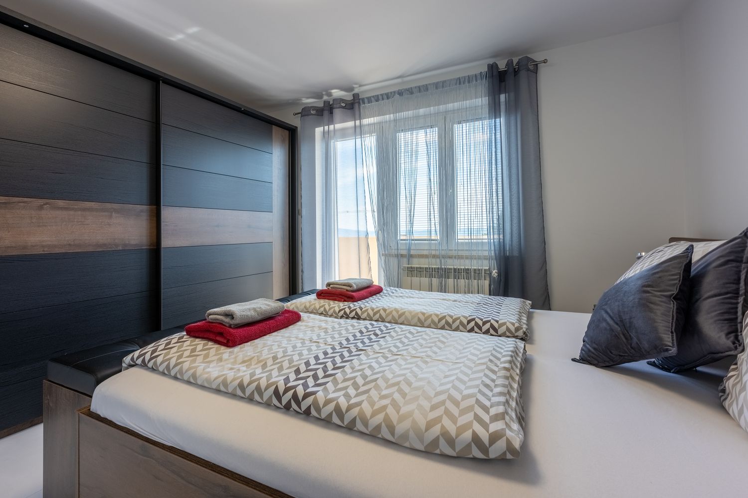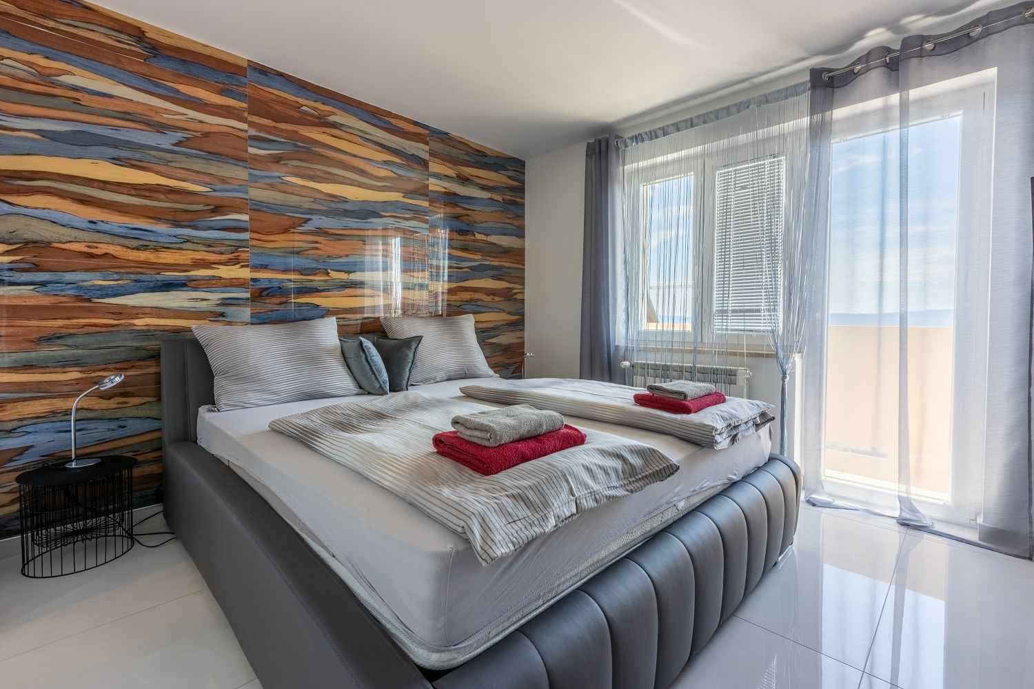 Dieses moderne Ferienhaus liegt in einem ruhigen Stadtteil des Urlaubsortes Crikvenica an der Kvarner Bucht. Es ist stilvoll und charmant eingerichtet. Der wundervolle Außenbereich bietet viel Platz und zahlreiche Freizeitmöglichkeiten. Der Wohnbereich sowie alle Schlafzimmer verfügen über Satellitenfernsehen. Im Keller des Hauses befindet sich ein separater Raum mit einem Billardtisch. Das Erdgeschoss besteht aus einer voll ausgestatteten Küche mit einem stilvollen Essbereich für bis zu acht Personen, einem Wohnraum, zwei Schlafzimmern mit Balkon, zwei Badezimmern und einem Wäscheraum. Von der Wohn-/Ess-/Küche aus hat man Zugang zum hinteren Außenbereich. Die übrigen zwei Schlafzimmer und zwei Badezimmer befinden sich im ersten Obergeschoss. Dort stehen Ihnen auch einige Fitnessgeräte zur Verfügung. Der gut ausgestattete Außenbereich wird durch den Poolbereich dominiert, der über eine schattige Terrasse, acht Sonnenliegen, einen Whirlpool für sechs Personen, einen Tischtennistisch und viel Grün verfügt. Diese Villa befindet sich in einer ruhigen und idyllischen Umgebung und ist daher für Partyurlauber nicht geeignet. Buchungen von Jugendgruppen unter 25 Jahren sind nicht möglich.