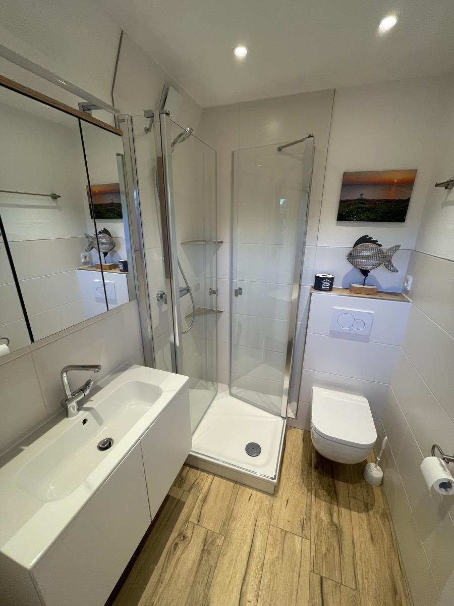 Das modern und gemütlich im nordischen Stil eingerichtete „Kamp Huus“ bietet alles für einen erholsamen Urlaub an der Nordsee. Es verfügt über eine separate Küche mit Ceranfeld. Mikrowelle und Spülmaschine und ein modernes Bad. Zwei helle Schlafzimmer bieten Platz für vier Personen – eines mit einem Doppelbett, das andere mit zwei Einzelbetten. Vom geschmackvoll eingerichteten Wohnzimmer mit Essbereich haben Sie Zugang zur Südterrasse. Machen Sie es sich gemütlich und genießen Sie Ihren Urlaub! Für zusätzlichen Komfort stehen Ihnen kostenfreies W-Lan und ein Parkplatz direkt auf dem Grundstück zur Verfügung.