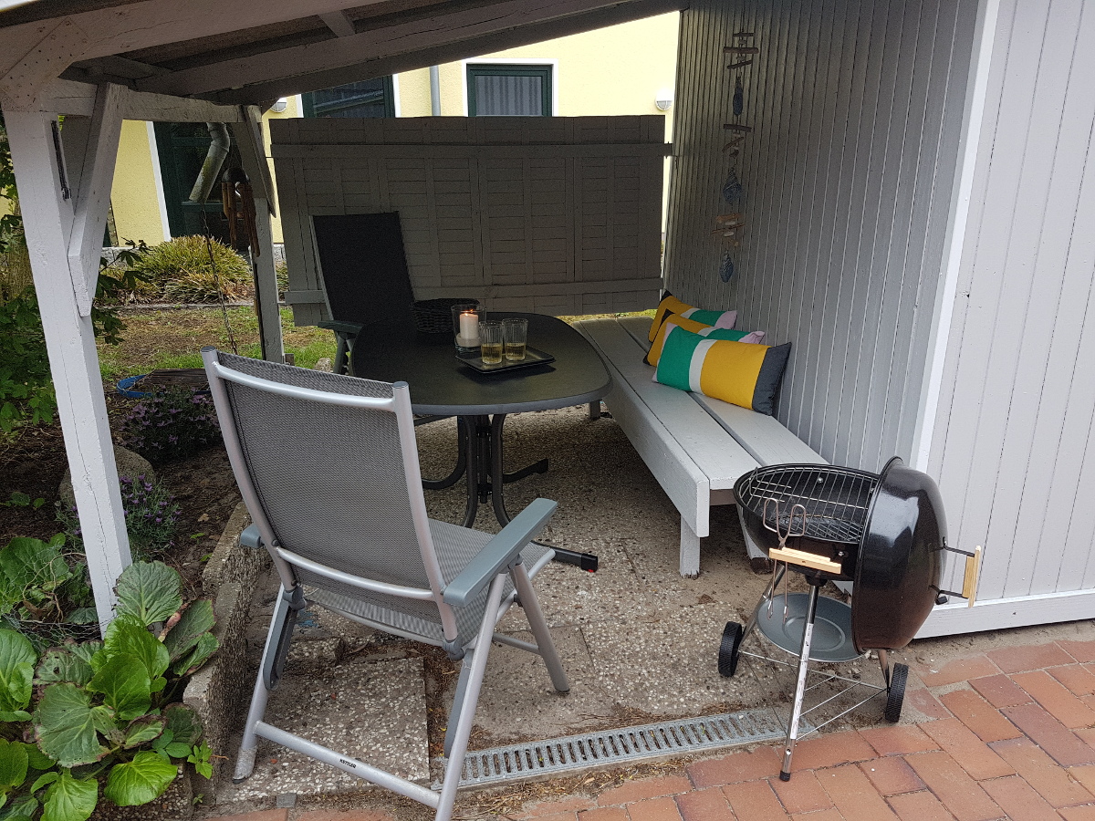 Die Terrasse lädt zu einem entspannten Frühstück im Sonnenschein oder zu gemütlichen Abendstunden im Freien ein. Der eigene kleine Garten bietet zusätzlichen Freiraum und eignet sich ideal für Familien mit Kindern, die hier ungestört spielen können.