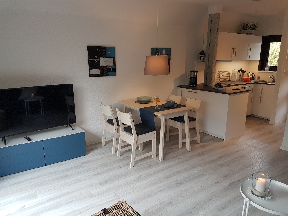 Die moderne und gemütliche Ausstattung des Hauses sorgt dafür, dass Sie sich vom ersten Moment an wohlfühlen. Eine voll ausgestattete Küche mit Essecke, ein großzügiges Badezimmer sowie zwei helle Schlafzimmer bieten Platz für bis zu vier Personen. Ein Schlafzimmer verfügt über ein Doppelbett, das zweite über zwei Einzelbetten. Im Wohnzimmer können Sie nach einem sonnigen Strandtag, einer Wattwanderung oder einem Spaziergang durch Duhnen wunderbar entspannen.