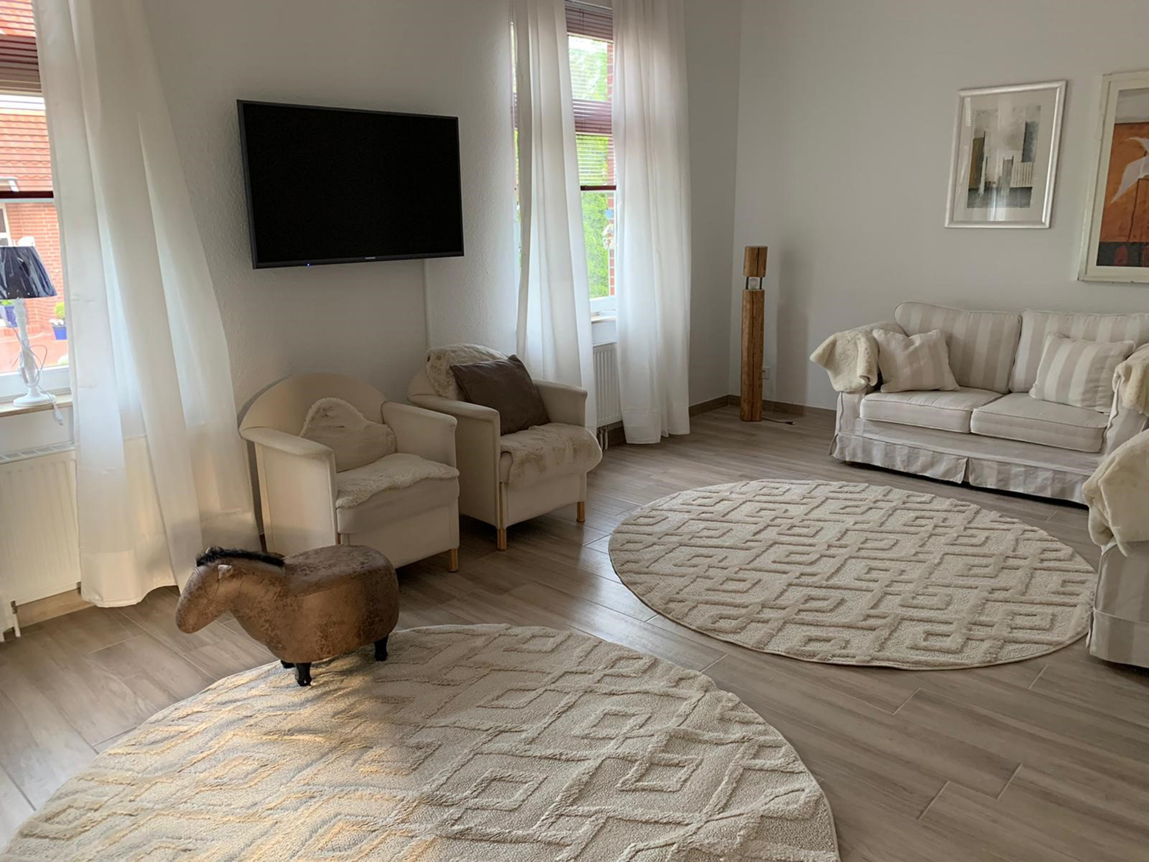 Das im Sommer 2021 final eingerichtete, helle und freundliche Ferienhaus in Dornum befindet sich nah an der ostfriesischen Nordseeküste. Das im modernen Landhausstil eingerichtete Friesenhaus, verfügt über ein großes gemütliches Wohnzimmer, mit Wohncouchen und Flachbild-TV/Kabel sowie einer komplett eingerichteten, neuen Küche inkl. Kühlschrank mit Gefriermöglichkeit, Backofen, Mikrowelle, Spülmaschine und gemütlicher Essgruppe. Zwei Schlafzimmer sind jeweils mit einem Doppelbett (180 x 200cm) ausgestattet. Das neue Badezimmer ist mit Dusche und separatem WC ausgestattet. Die Bettwäsche ist bereits aufgezogen und frische Handtücher liegen ausreichend bereit. Wir wünschen uns, dass Sie sich sehr wohl fühlen. Der ortsübliche Kurbeitrag ist bei Anreise in bar bei der Facility-Managerin noch zu entrichten.