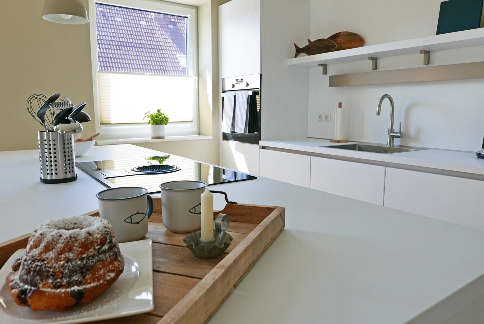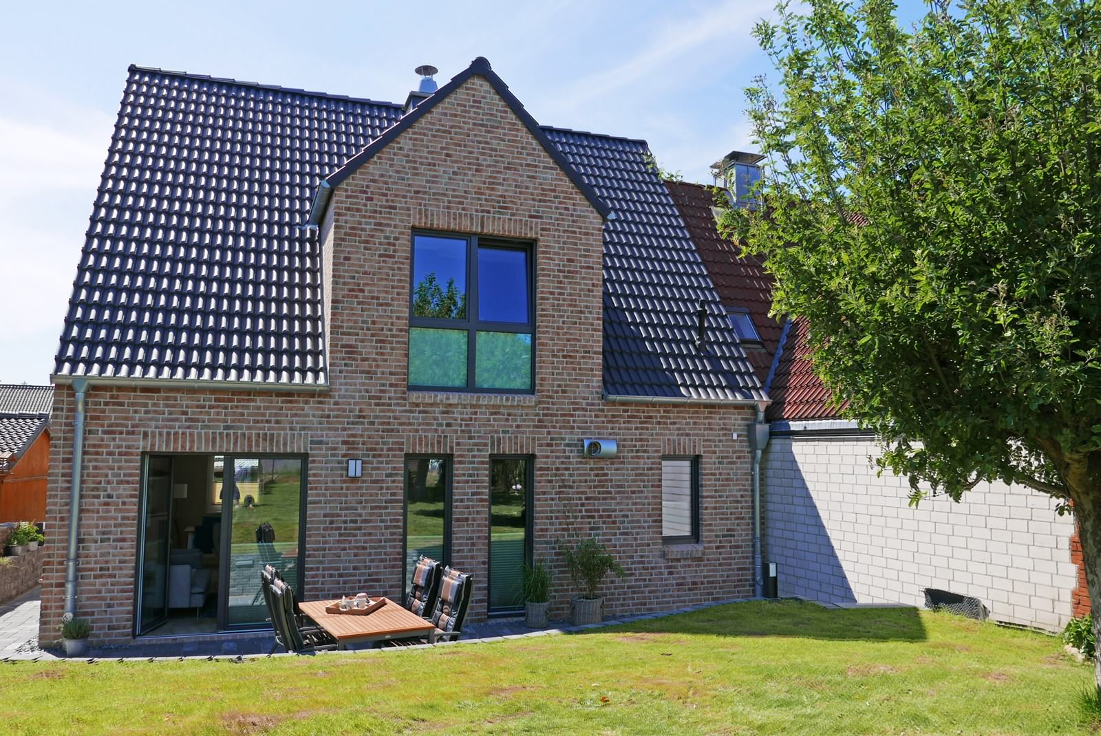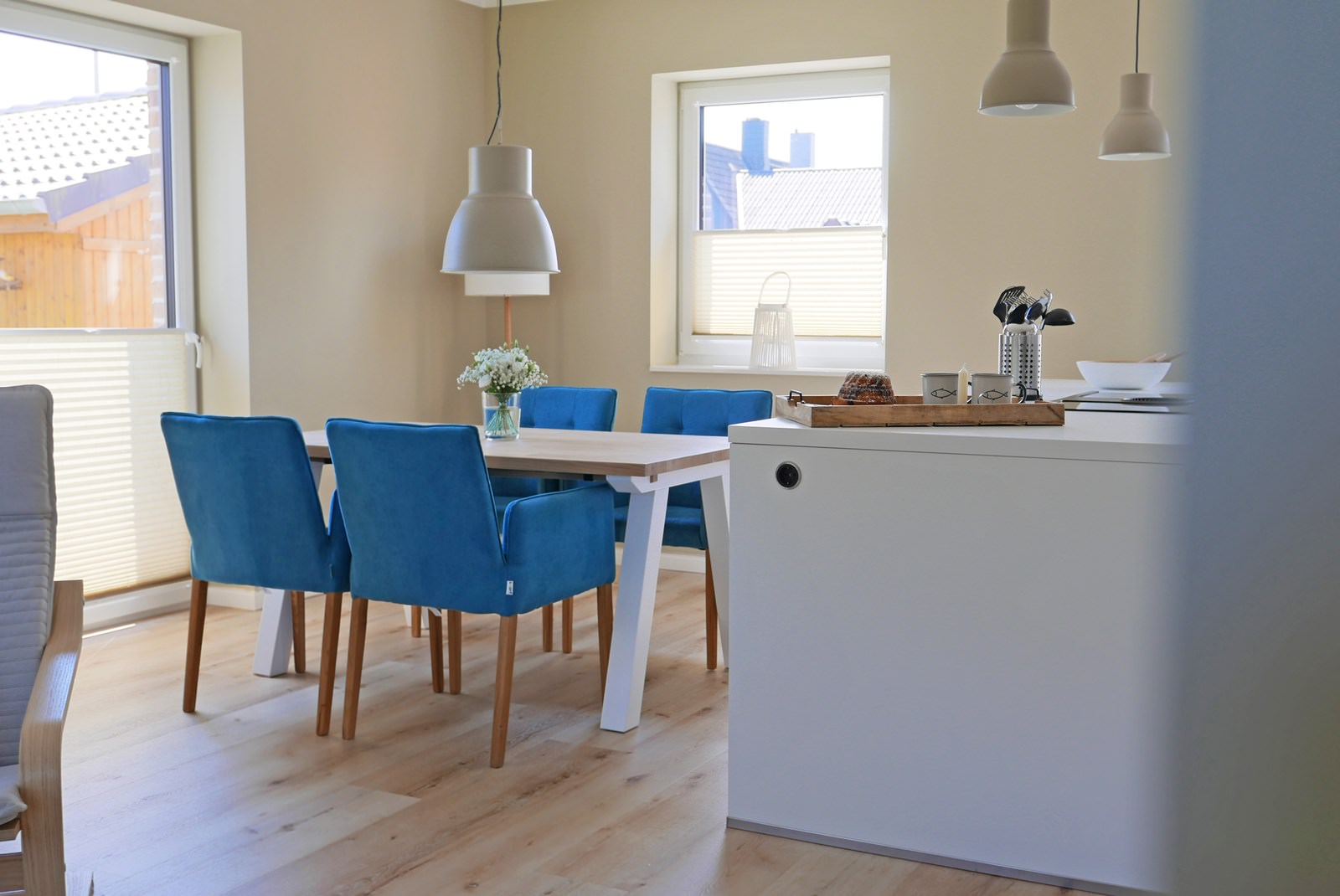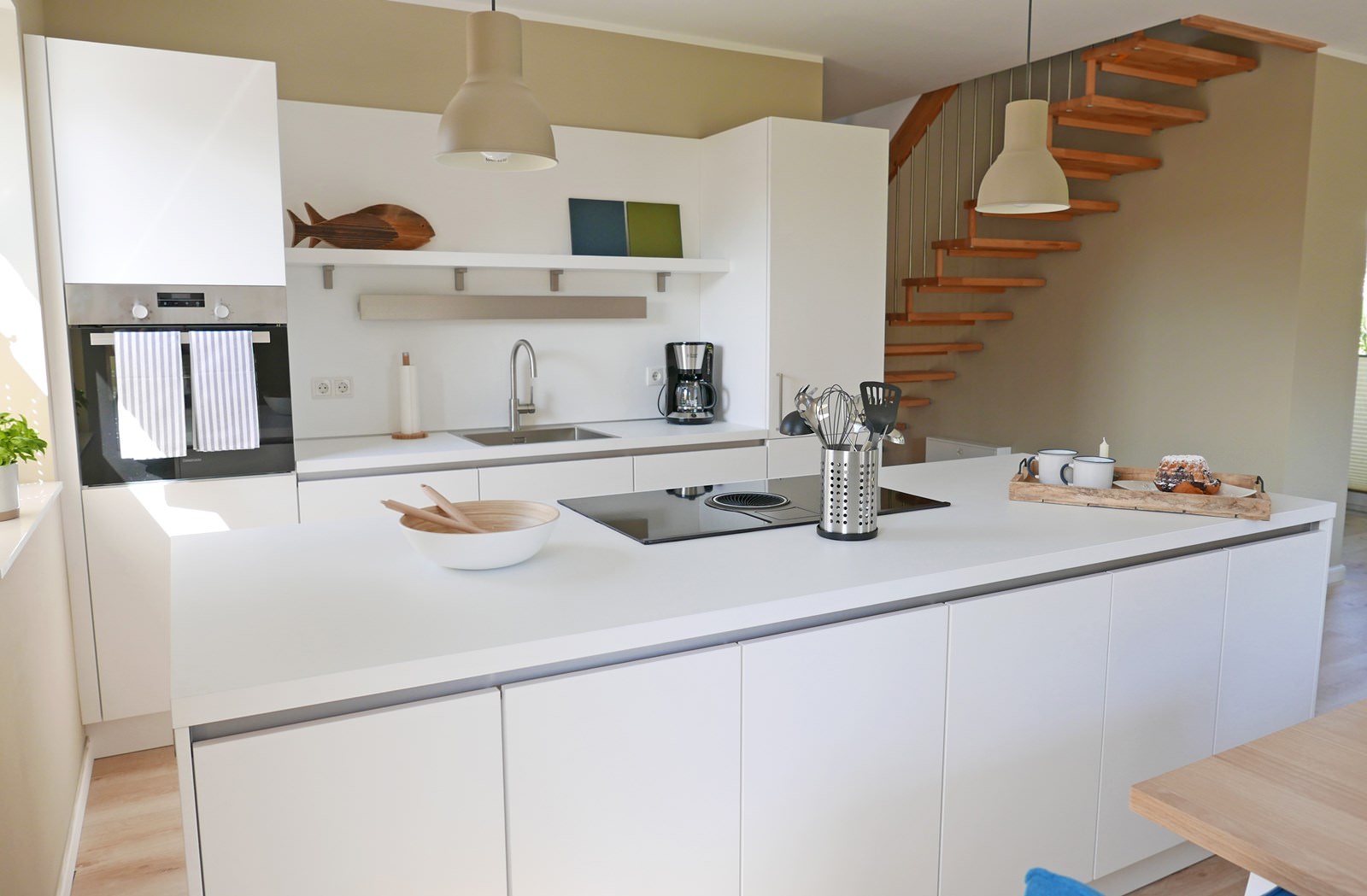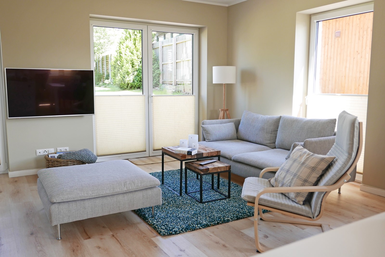 Gönnen Sie sich eine Auszeit und genießen Sie gemeinsame Stunden mit der ganzen Familie in der schönen Ostseeregion. Das Ferienhaus ist ein frisch fertiggestellter Neubau und wurde mit viel Liebe zum Detail maritim eingerichtet - auf ca. 95m² wird bis zu 4 Personen viel Raum für Komfort geboten. Der offene Wohnbereich punktet vor allem durch die vielen bodentiefen Fenster, die den Raum mit Licht durchfluten sowie einer durchdachten Einrichtung mit gemütlichem, maritimem Ambiente. Von hier aus gelangt man auch direkt auf die Terrasse des ca. 300m² großen Gartens. Auf der Rasenfläche haben Ihre Kinder viel Platz zum Toben und Spielen, auch ein Fußballtor steht Ihnen hier zur Verfügung. Tagsüber können Sie ein ausgiebiges Sonnenbad im Garten nehmen und abends lassen Sie den Tag beim Grillen ausklingen oder Sie nehmen mit einem Glas Wein auf der gemütlichen Couchgarnitur Platz – So schön kann ein Urlaub an der Ostsee sein! Ein besonderes Highlight der Doppelhaushälfte stellt definitiv die an den Wohnbereich offen angelegte, topmoderne Küche mit Kochinsel dar: Hier kommen Hobbyköche voll auf ihre Kosten! Es lassen sich leicht schmackhafte Mahlzeiten zubereiten, denn die Küche verfügt über alle Geräte, die man für einen komfortablen Urlaub benötigt. Frische Zutaten gefällig? Jeden Mittwoch und Samstagvormittag findet in Eckernförde auf dem Kirchplatz ein Wochenmarkt von 7 Uhr bis 13 Uhr statt, auf dem Sie eine große Auswahl an regionalen und saisonalen Produkten finden – ideal, um in der großzügigen, modernen Küche des Hauses ein köstliches Essen mit frischen Zutaten vom Markt zu zaubern. So wird das Kochen im Urlaub zum genussvollen Erlebnis! Für die Nachtruhe stehen in der „Borbyer Perle“ zwei Schlafzimmer im 1. Obergeschoss zur Verfügung. Beide Zimmer wurden mit einem hochwertigen Boxspringbett ausgestattet, eines davon verfügt sogar über einen weiteren Flachbild-TV. Das großzügige Badezimmer mit ebenerdiger Dusche und Regenduschkopf, Waschtisch und WC befindet sich ebenfalls im 1.Stock. Im Erdgeschoss steht ein zusätzliches Gäste-WC zur Verfügung.