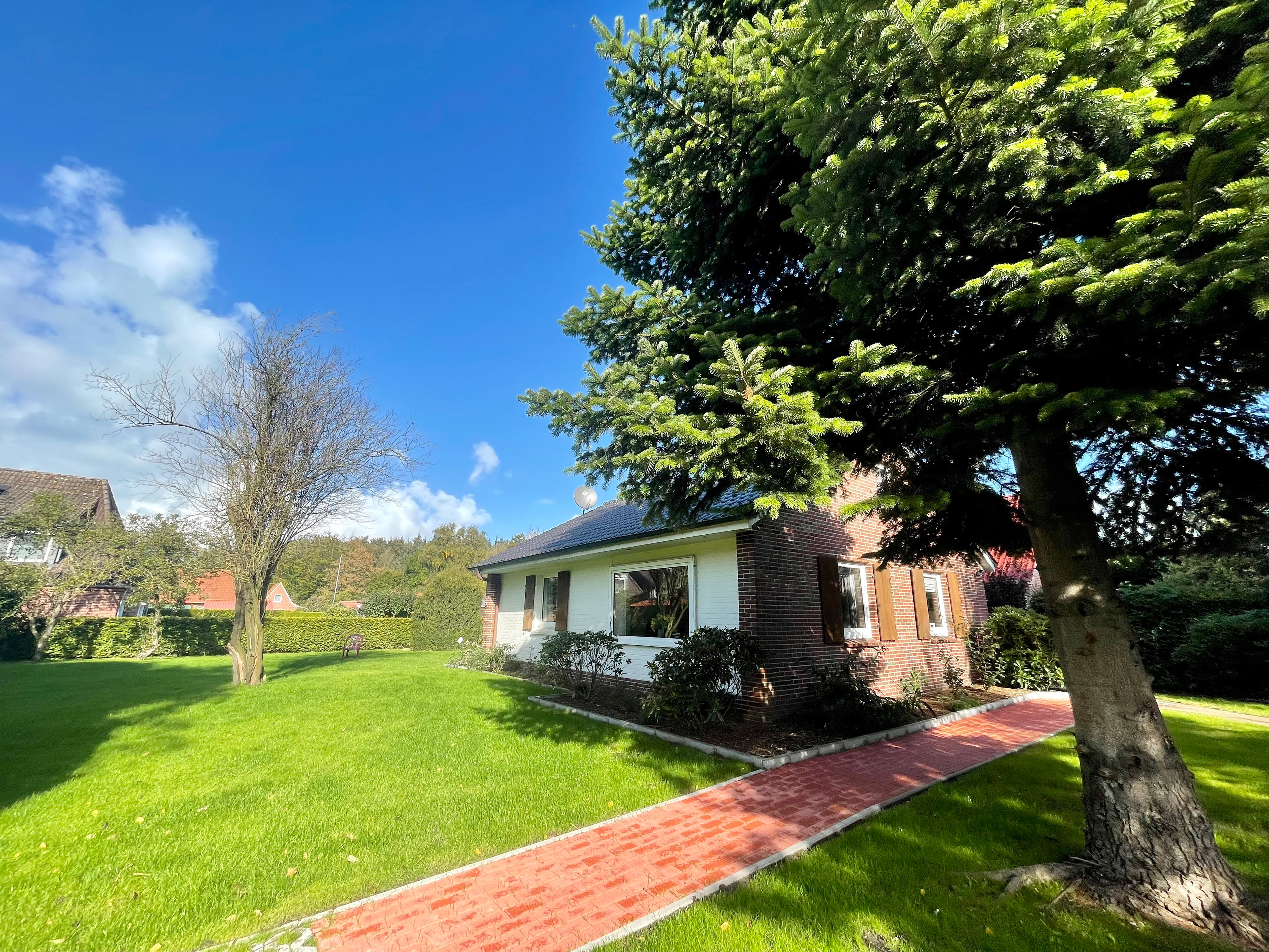 Das Haus liegt versteckt in zweiter Reihe in einer ruhigen Wohnsiedlung, sehr nahe der Innenstadt. Nähe zum Strand und dem Kurort von Bensersiel. Es handelt sich bei dem Haus um ein freistehendes Haus, bzw. Bungalow, mit großem Garten – alles zur alleinigen Nutzung. Auf dem Grundstück befindet sich zudem eine große Terrasse, sowie zwei Parkplätze.