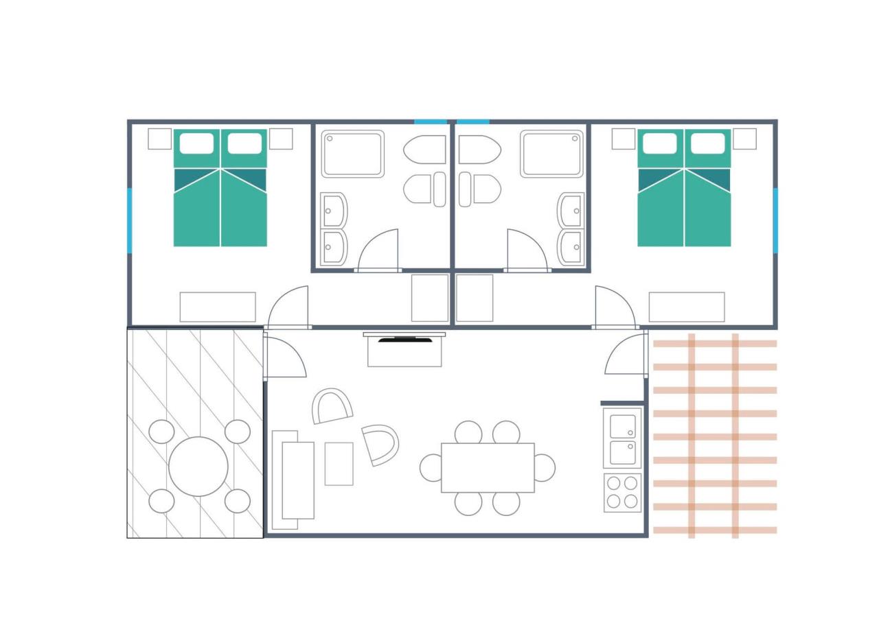 Das Holiday Home Comfort Lemon ist ein Ferienhaus im Erdgeschoss und ist für maximal 6 Personen geeignet. Es besteht aus zwei Schlafzimmern: eines mit zwei Einzelbetten, die zu einem Doppelbett zusammengeschoben werden können, und eines mit zwei Einzelbetten. Im Wohnzimmer gibt es ein Bettsofa, das zwei weitere Schlafgelegenheiten bietet. Die Kochnische ist komplett eingerichtet und verfügt über Geschirr, Besteck, Töpfe, eine Mikrowelle, eine italienische Espressokanne sowie einen Kühlschrank mit Eisfach. Ein SAT-TV und Klimaanlage sind vorhanden. Die beiden Badezimmer verfügen je über eine Dusche, Bidet sowie Waschbecken, WC und Haartrockner. Die überdachte Terrasse mit Tisch und Stühlen lädt zum gemütlichen Entspannen ein, während die Kinder sich auf dem Spielplatz oder am Pool austoben können. Grillen ist erlaubt. Fahrzeit ab kroatischer Grenze ca. 1h. Barrierefreie Unterkünfte sind auf Anfrage und je nach Verfügbarkeit buchbar. Hinweis: Wenn Sie mehr als eine Unterkunft benötigen, ist dies bei uns in der Regel möglich, da wir über mehrere Objekte des gleichen Haustyps verfügen.