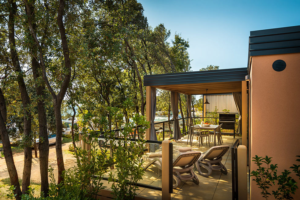 Die Unterkunft befindet sich in der Ferienanlage Istra Premium Camping Resort, die wunderschön nahe der Stadt Funtana auf einer Halbinsel gelegen ist. Die luxuriöse Anlage besticht neben ihrer einzigartigen Lage an der türkis blauen Küste Istriens inmitten schattenspendender Pinienbäume, besonders durch Ihre Vielzahl an Unterhaltungsmöglichkeiten für die ganze Familie. Folgende Leistungen stehen ihnen (teilweise gegen Gebühr) zur Verfügung: ein grosser Wasserpark mit mehreren Schwimmbecken und Wasserrutschen, Sonnenliegen- und Schirme am Pool, sowie am Strand. Mehrere Spielplätze (Indoor/Outdoor), einen Miniclub, Kinderbetreuung und Unterhaltungsmöglichkeiten für Babys, Kinder und Jugendliche. Ein Fitnessstudio, Sportplätze, ein Fahrradverleih, Sportkurse und ein toller Wellnessbereich lassen auch für die Erwachsenen keine Wünsche offen. Für das leibliche Wohl sorgen eine Vielzahl an Restaurants, Bars und Supermärkte.