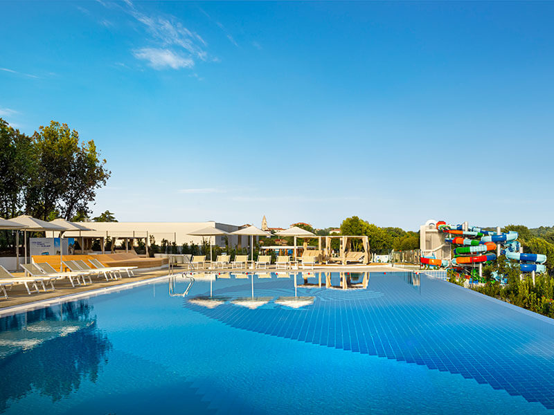 STRANDDas Istra Premium Camping Resort liegt auf einer Halbinsel und ist somit von dem schönen, türkisblauen Wasser der Küste Istriens umgeben. Es gibt mehrere feine Kieselstrände, die mit Sonnenliegen- und schirmen ausgestattet (gegen Gebühr) sind.