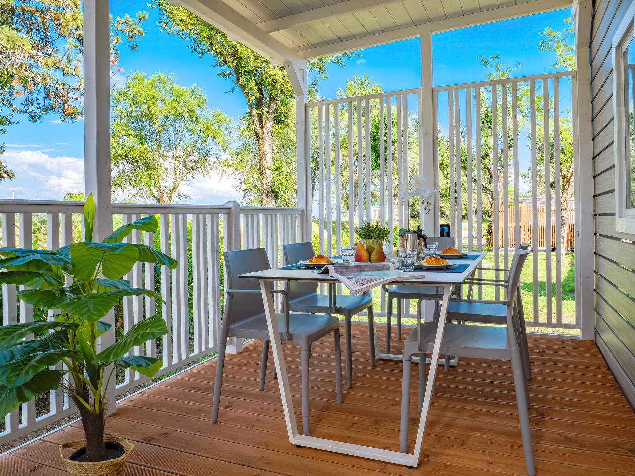 Die moderne und komfortabel eingerichtete Lodge bietet Platz für max. 4 Personen und besteht aus einem Schlafzimmer mit Doppelbett, sowie einem Schlafzimmer mit zwei Einzelbetten. Im Wohnbereich befindet sich ein Sofa und SAT-Fernseher. Ebenfalls im Wohnbereich befindet sich ein Tisch mit Stühlen. Die gut eingerichtete Küche befindet sich im Wohnbereich und verfügt über Induktionsherd, Geschirr, Besteck, Töpfe, Mokka-Kaffeemaschine, Geschirrspüler, Mikrowelle, sowie einen Kühlschrank. Die Unterkunft verfügt über zwei Badezimmer, die jeweils mit einer Dusche, einem Waschbecken, einem WC, sowie einem Bidet ausgestattet sind. Die überdachte Holzterrasse ist möbliert und lädt zum Entspannen ein.Klimaanlage und Heizung sind inklusive.Fahrzeit ab italienischer Grenze ca. 2h. Hinweis: Wenn Sie mehr als eine Unterkunft benötigen, ist dies bei uns in der Regel möglich, da wir über mehrere Objekte des gleichen Haustyps verfügen.