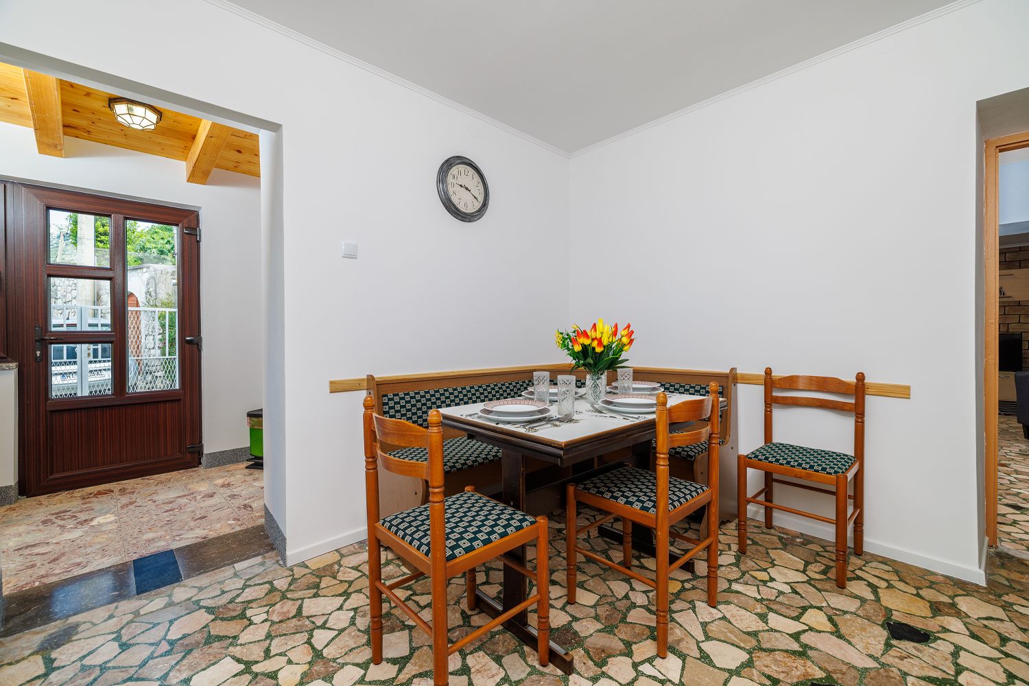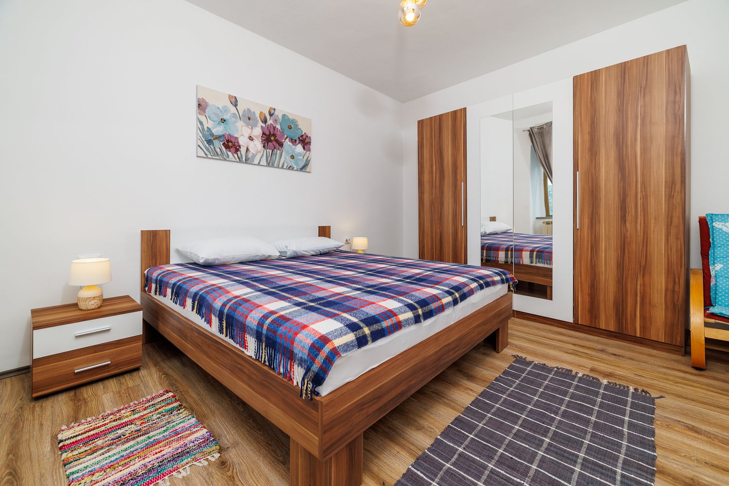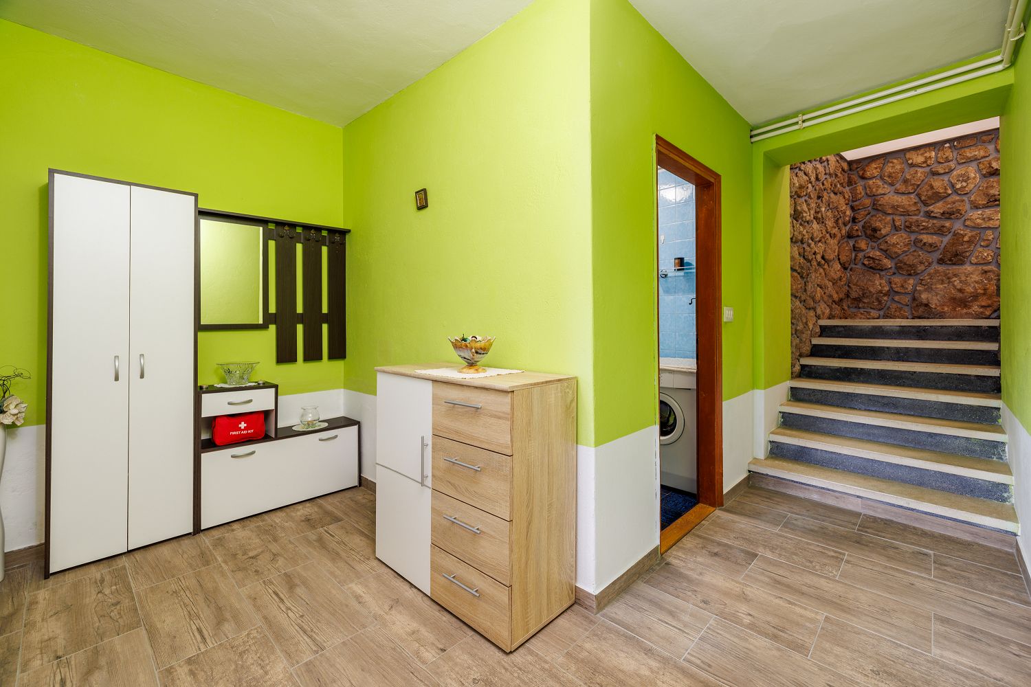 Im Erdgeschoss befinden sich der Eingangsbereich, eine Ess-/Küche, ein Wohnzimmer und ein Badezimmer. Im Wohnzimmer steht mit einer ausziehbaren Schlafcouch eine fünfte Schlafmöglichkeit zur Verfügung. Von der Küche aus hat man direkten Zugang zur Terrasse und zum Hof. Über eine Innentreppe gelangt man ins erste Obergeschoss, wo sich ein großer Flur und zwei Schlafzimmer befinden. Beide Schlafzimmer sind mit einem Doppelbett ausgestattet. Das Ferienhaus bietet mit zwei Klimaanlagen höchsten Komfort: Eine sorgt im großzügigen Wohnbereich des Erdgeschosses für angenehme Temperaturen, während die zweite den Flur und die angrenzenden Räume im Obergeschoss ideal klimatisiert. Im schönen Außenbereich befinden sich zwei private Parkmöglichkeiten, eine sehr angenehme Terrasse, ein Grillplatz und ein Garten.