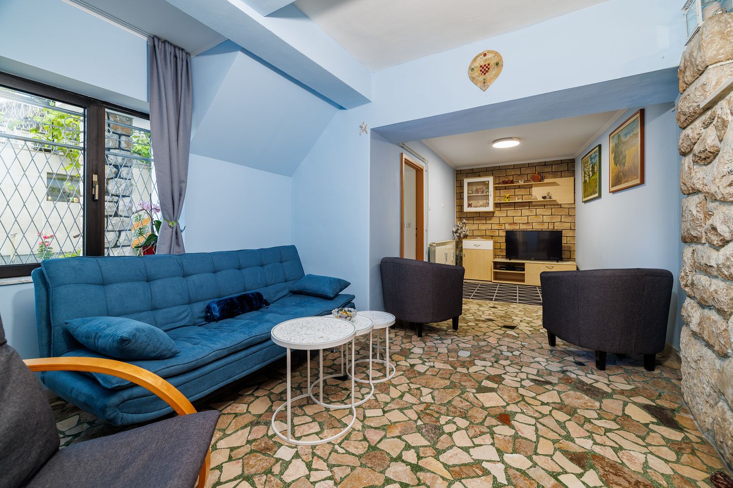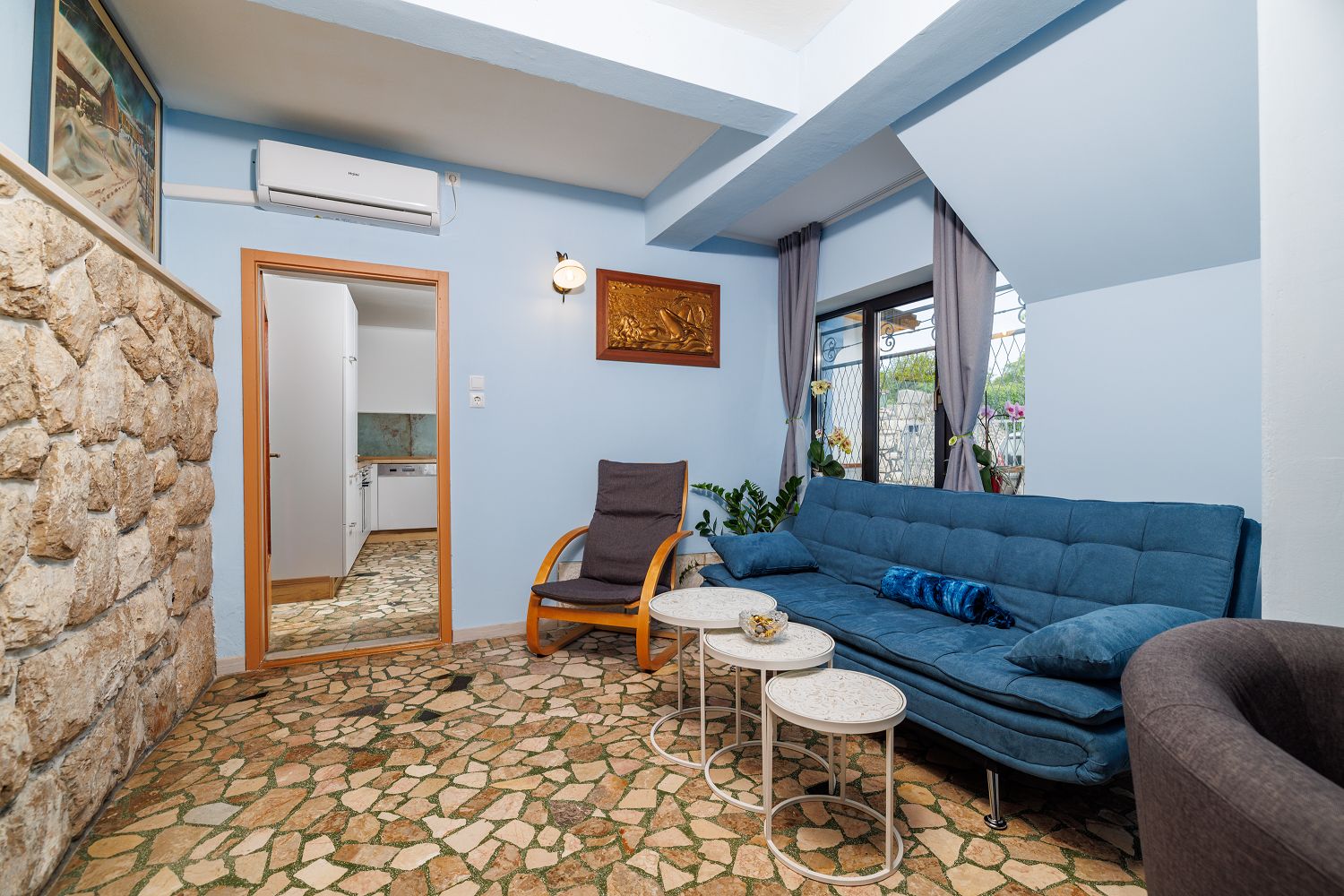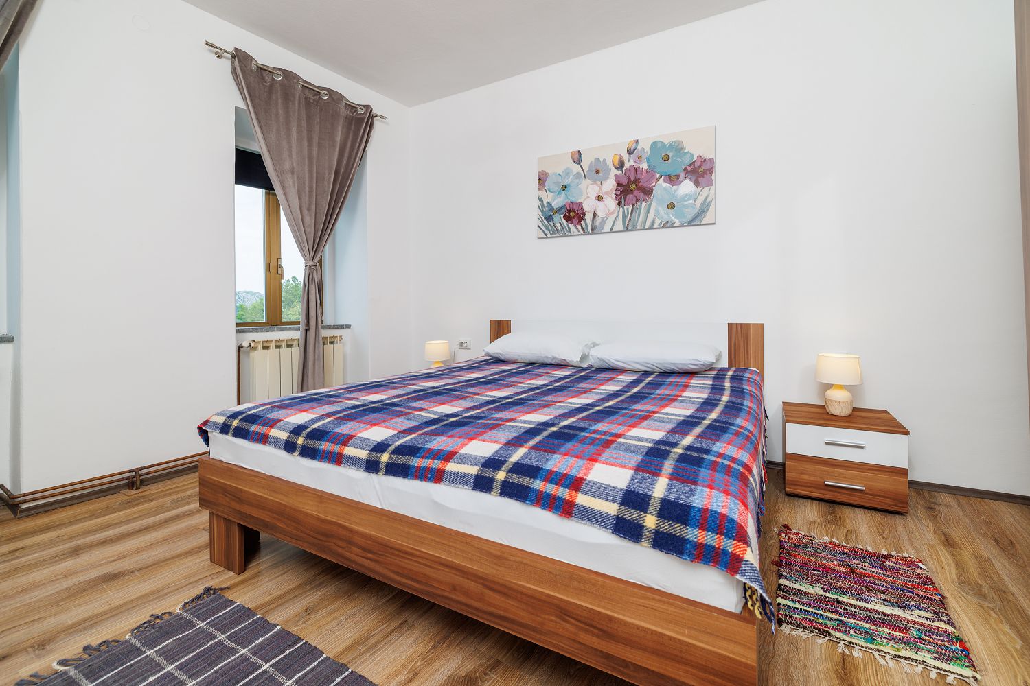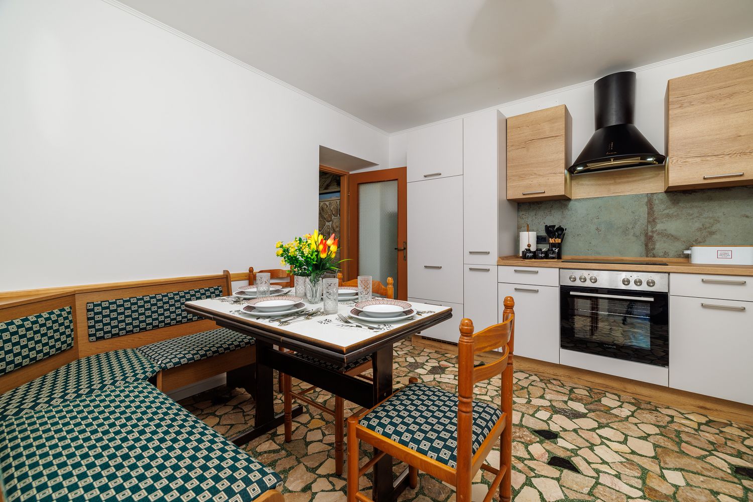 Im Erdgeschoss befinden sich der Eingangsbereich, eine Ess-/Küche, ein Wohnzimmer und ein Badezimmer. Im Wohnzimmer steht mit einer ausziehbaren Schlafcouch eine fünfte Schlafmöglichkeit zur Verfügung. Von der Küche aus hat man direkten Zugang zur Terrasse und zum Hof. Über eine Innentreppe gelangt man ins erste Obergeschoss, wo sich ein großer Flur und zwei Schlafzimmer befinden. Beide Schlafzimmer sind mit einem Doppelbett ausgestattet. Das Ferienhaus bietet mit zwei Klimaanlagen höchsten Komfort: Eine sorgt im großzügigen Wohnbereich des Erdgeschosses für angenehme Temperaturen, während die zweite den Flur und die angrenzenden Räume im Obergeschoss ideal klimatisiert. Im schönen Außenbereich befinden sich zwei private Parkmöglichkeiten, eine sehr angenehme Terrasse, ein Grillplatz und ein Garten.