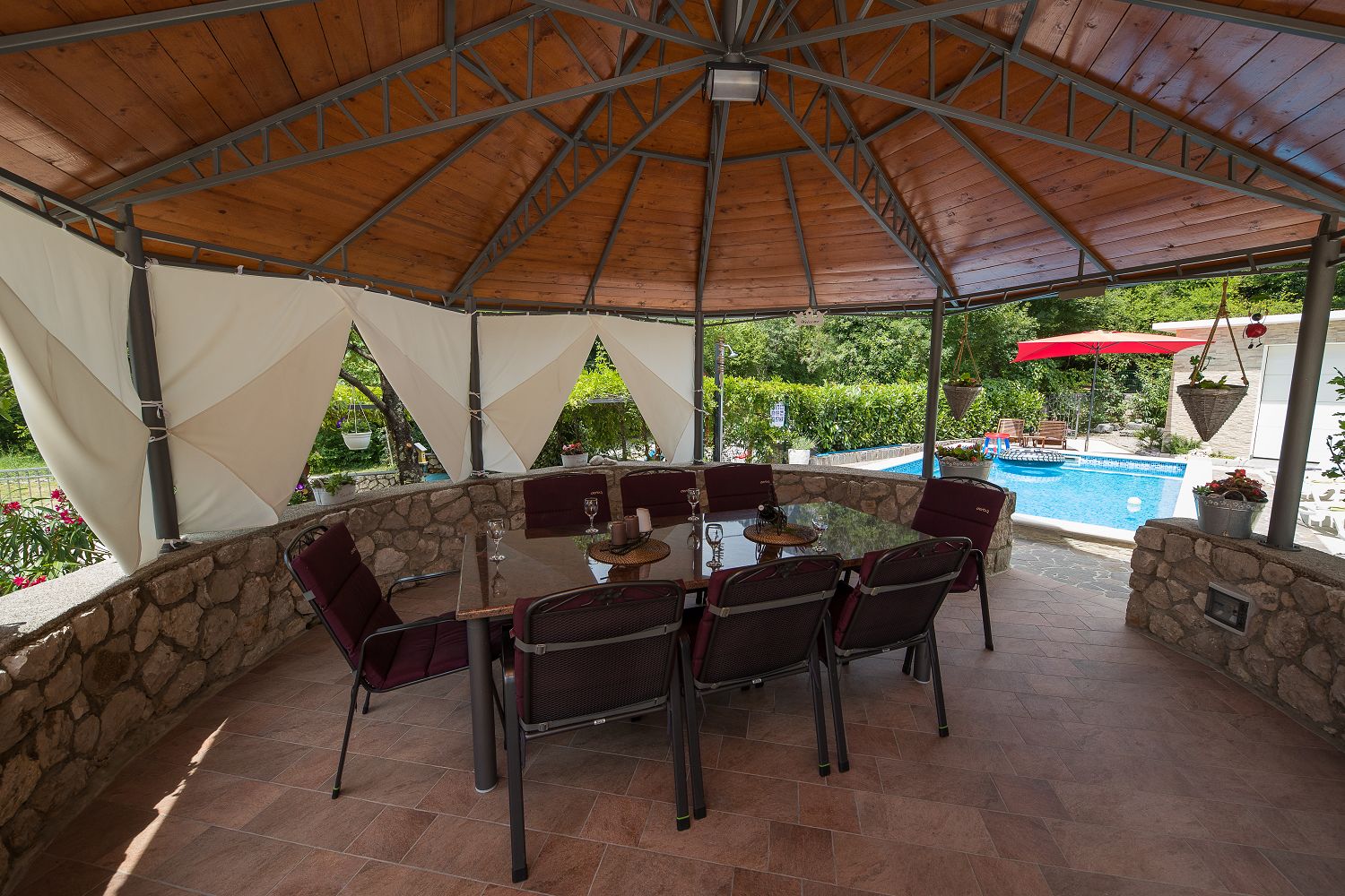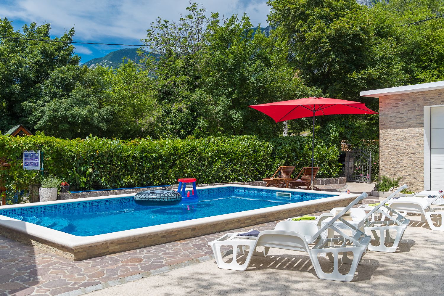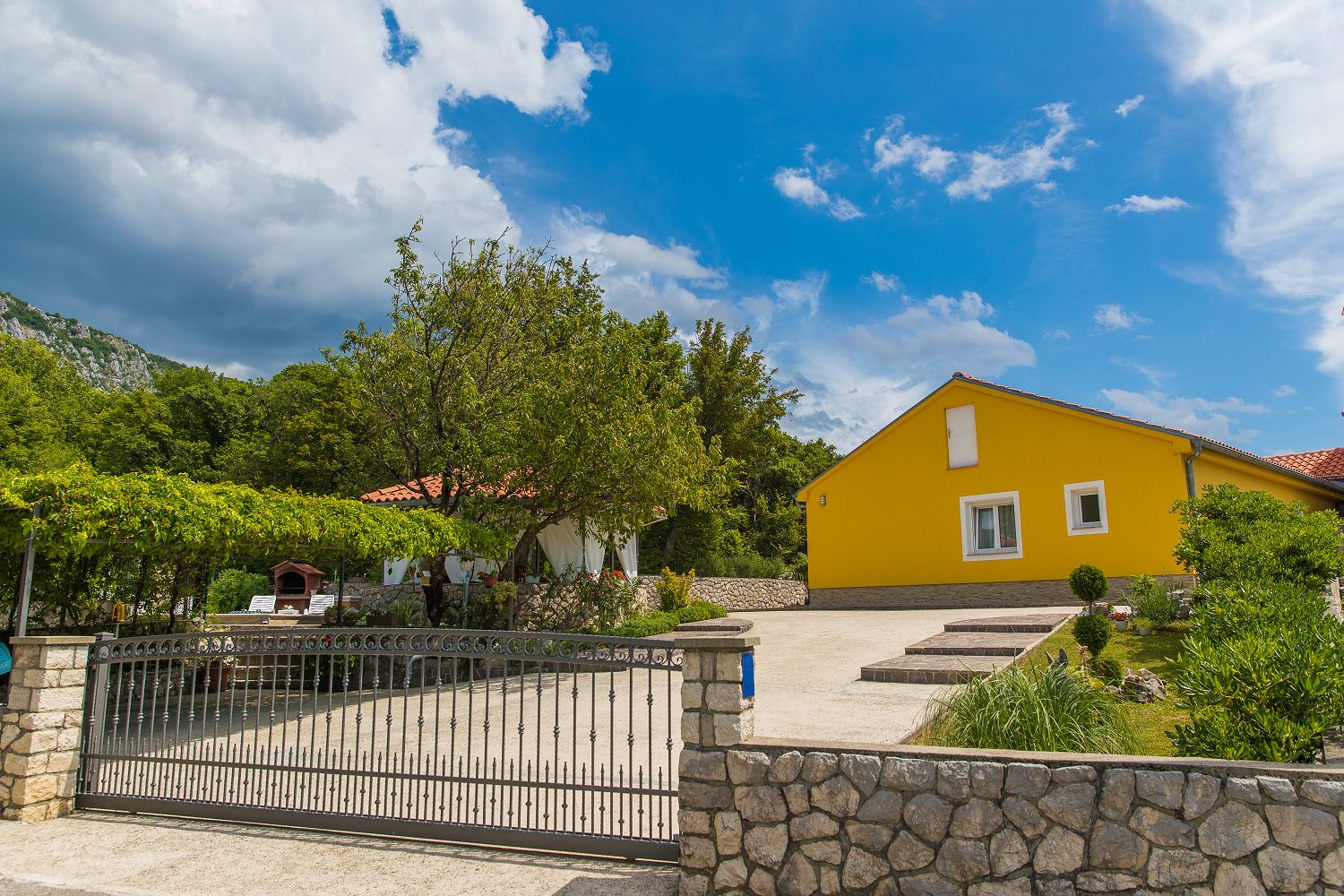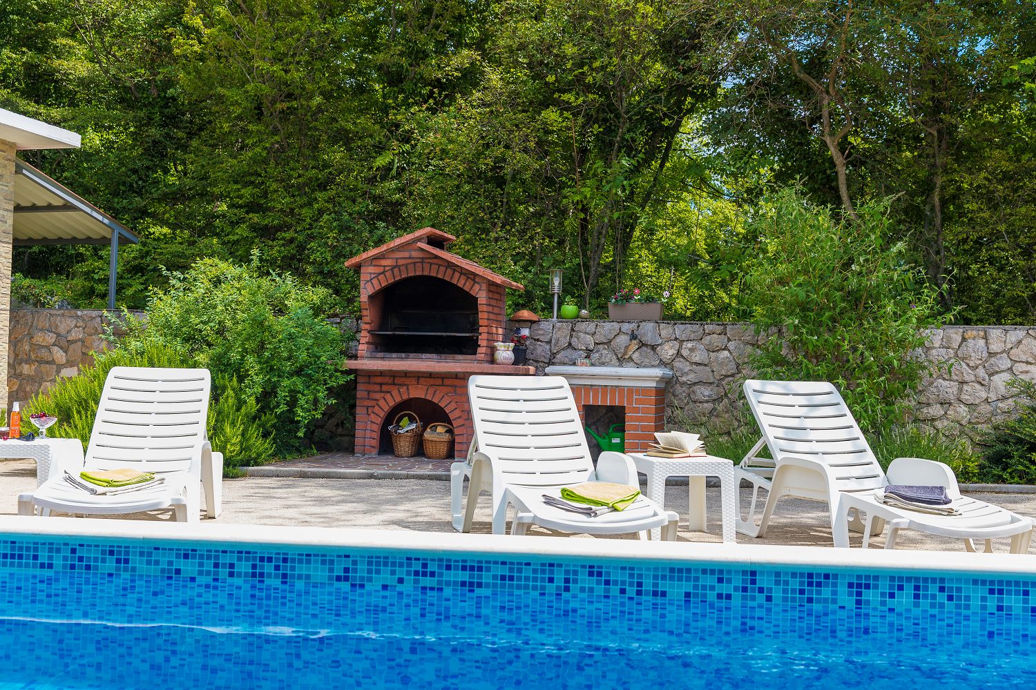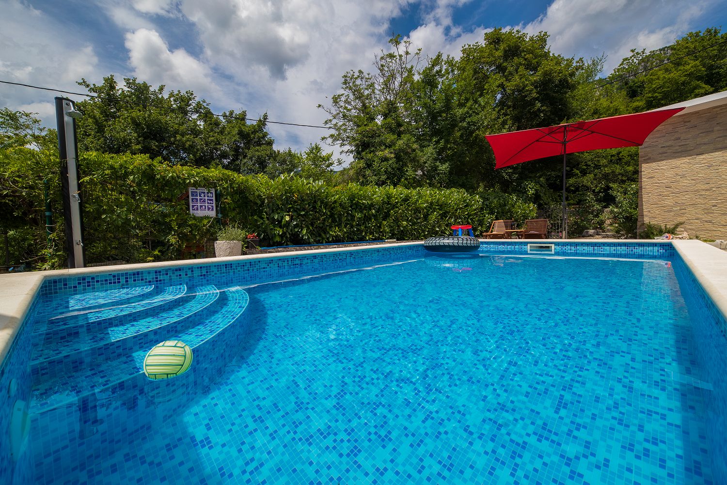 Dieses Ferienhaus mit Swimmingpool für vier bis sechs Personen ist von viel Grün umgeben und befindet sich im schönen Hinterland von Crikvenica. Die nächstgelegene Stadt ist der bekannte Badeort Crikvenica in der Kvarner Bucht, den Sie in nur wenigen Minuten mit dem Auto erreichen. Dort gibt es zahlreiche Möglichkeiten, seine Freizeit zu gestalten, beispielsweise mit verschiedenen Wassersportarten, Strandbars, einem Bootsverleih, Tretbooten, mehreren Tennisplätzen und einem Minigolfplatz. An den verschiedenen Stränden können Erholungsdurstige sich Sonnenliegen und Schirme mieten. An der Strandpromenade kann man gut und vielseitig essen sowie Souvenirs und Strandrequisiten kaufen. Das komplett eingezäunte 250 m² große Grundstück und das 100 m² große, komfortable Haus sind ideal für Familien geeignet.