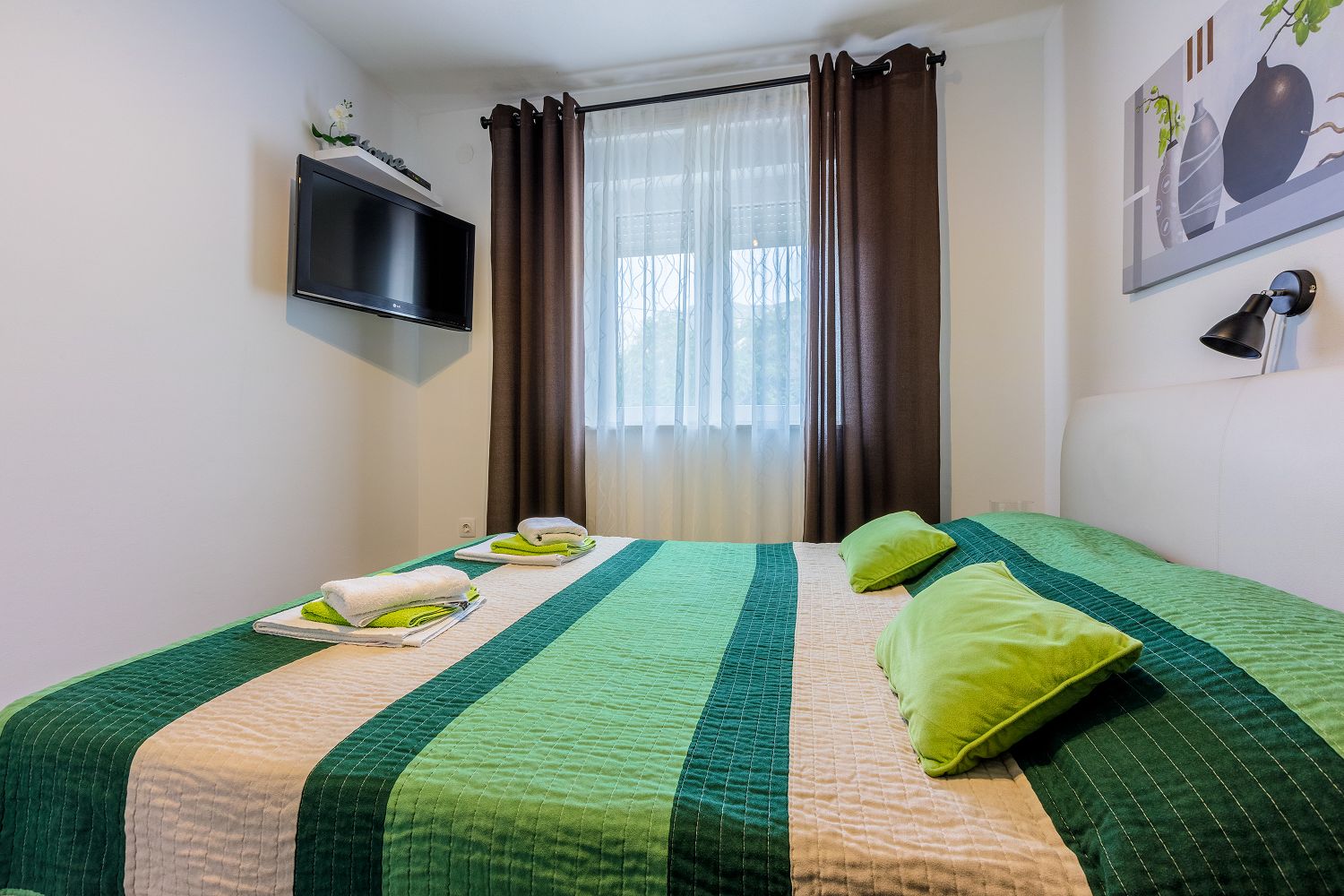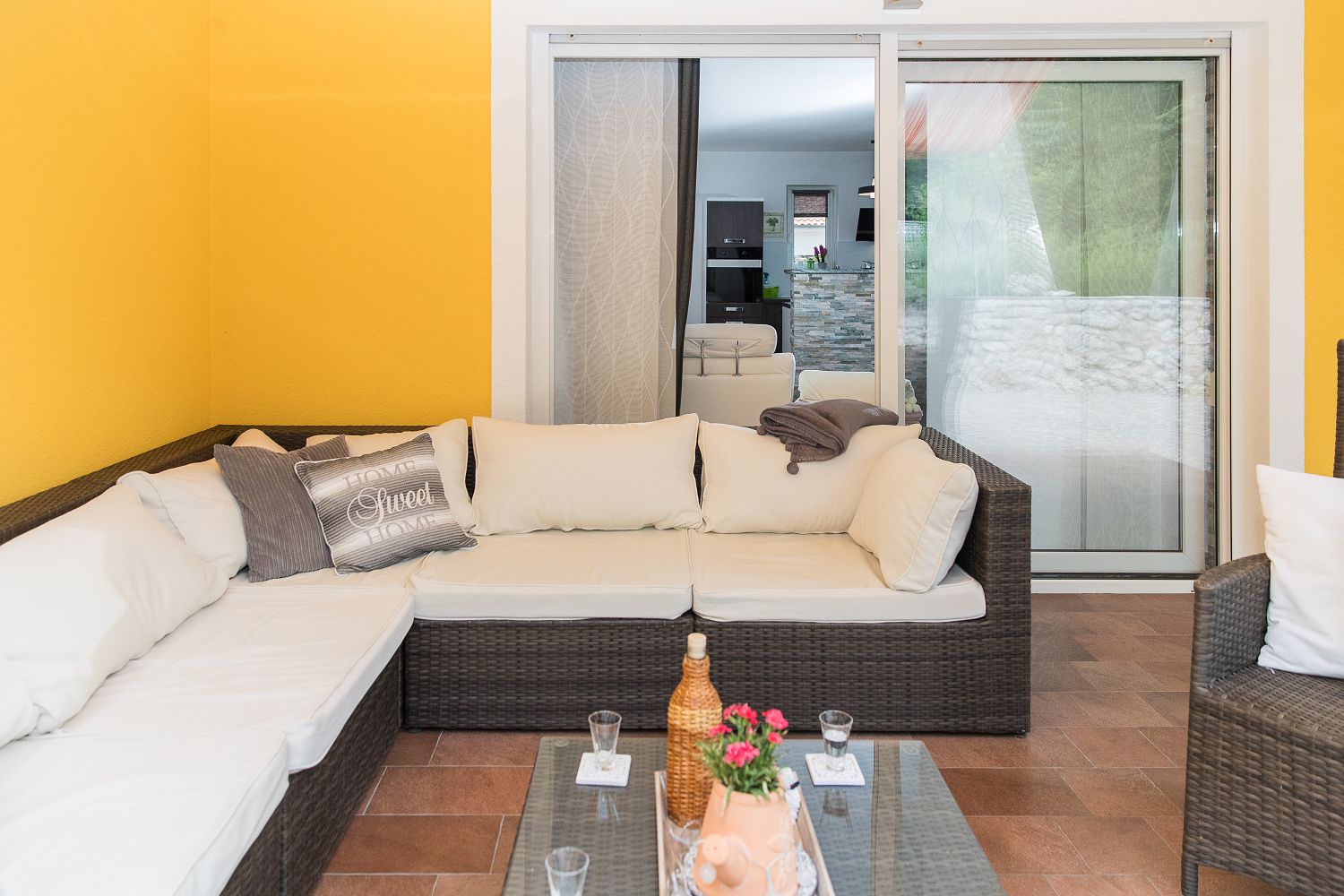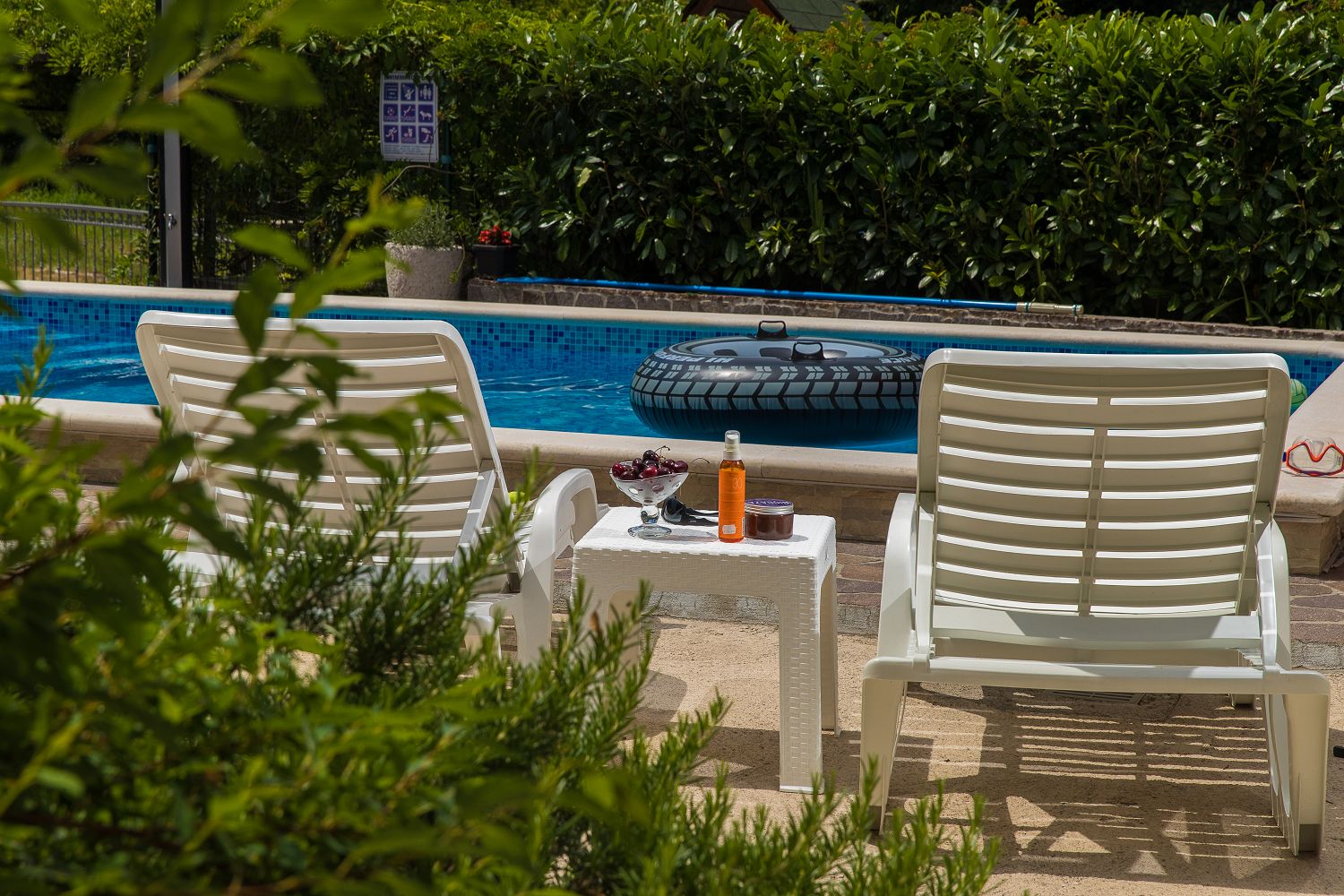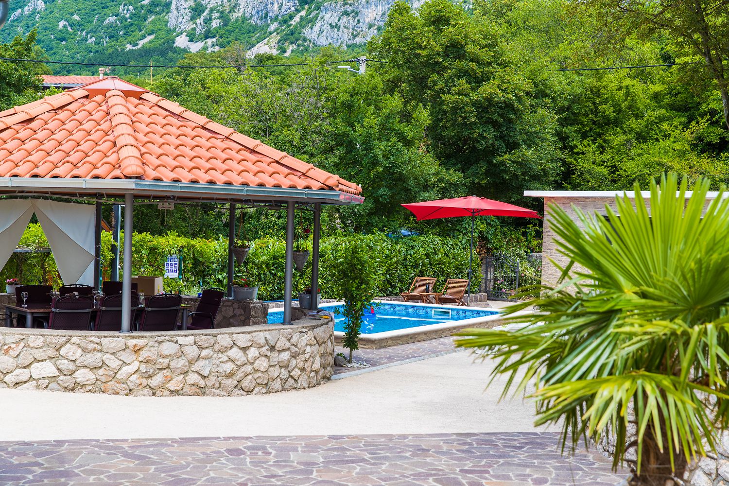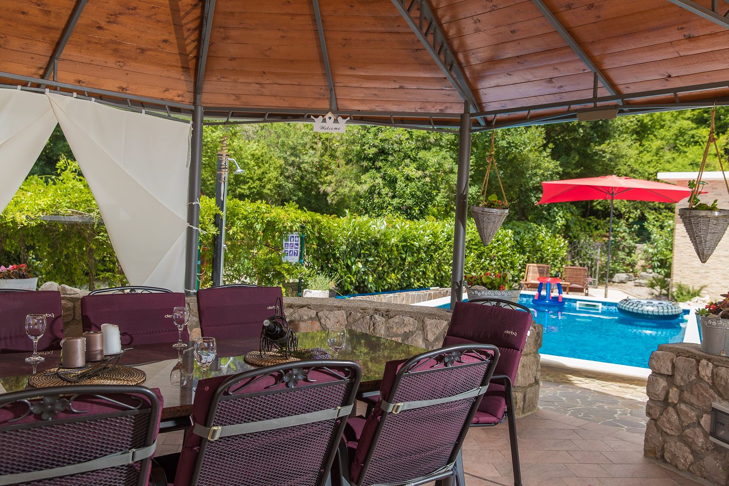 Dieses Ferienhaus mit Swimmingpool für vier bis sechs Personen ist von viel Grün umgeben und befindet sich im schönen Hinterland von Crikvenica. Die nächstgelegene Stadt ist der bekannte Badeort Crikvenica in der Kvarner Bucht, den Sie in nur wenigen Minuten mit dem Auto erreichen. Dort gibt es zahlreiche Möglichkeiten, seine Freizeit zu gestalten, beispielsweise mit verschiedenen Wassersportarten, Strandbars, einem Bootsverleih, Tretbooten, mehreren Tennisplätzen und einem Minigolfplatz. An den verschiedenen Stränden können Erholungsdurstige sich Sonnenliegen und Schirme mieten. An der Strandpromenade kann man gut und vielseitig essen sowie Souvenirs und Strandrequisiten kaufen. Das komplett eingezäunte 250 m² große Grundstück und das 100 m² große, komfortable Haus sind ideal für Familien geeignet.