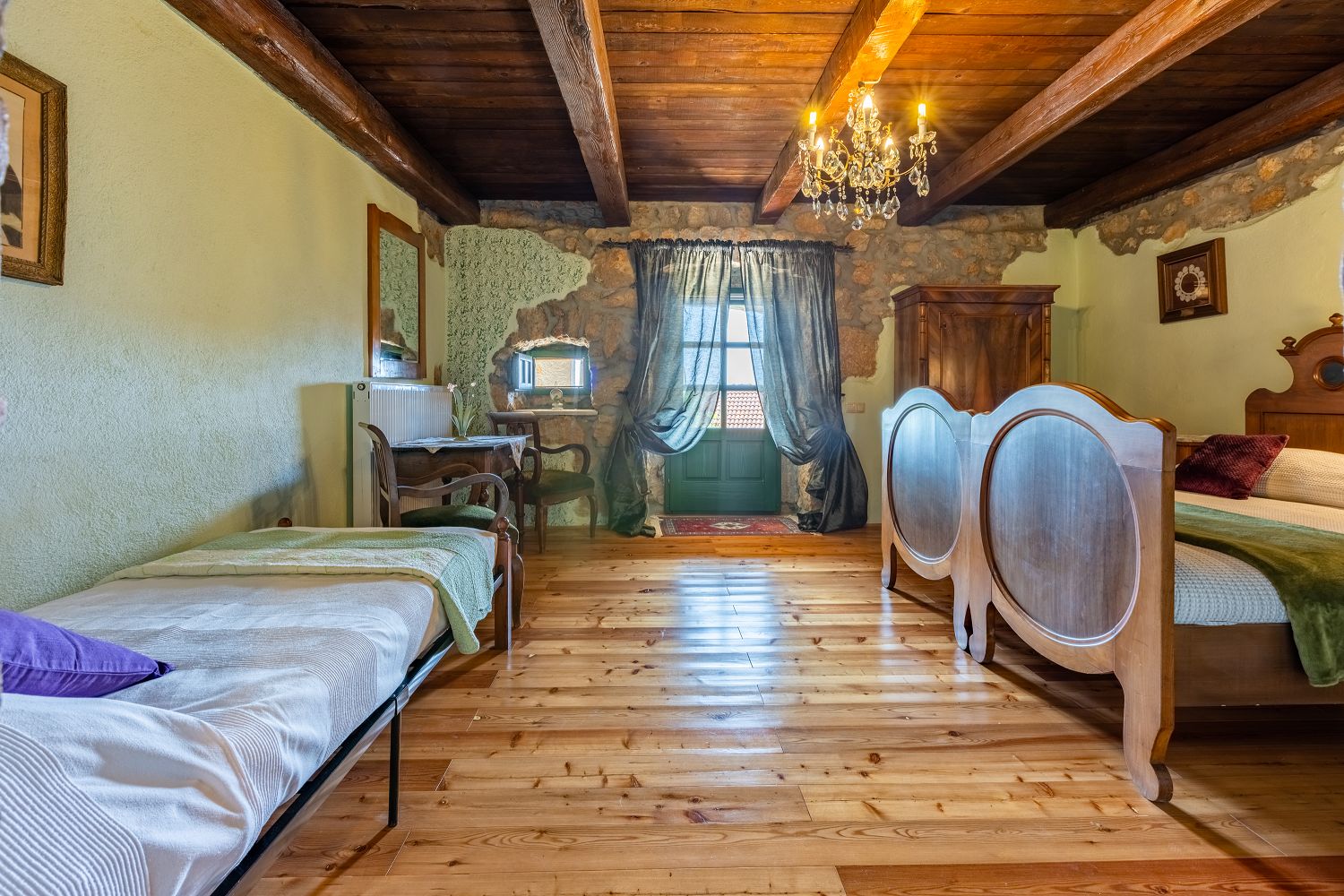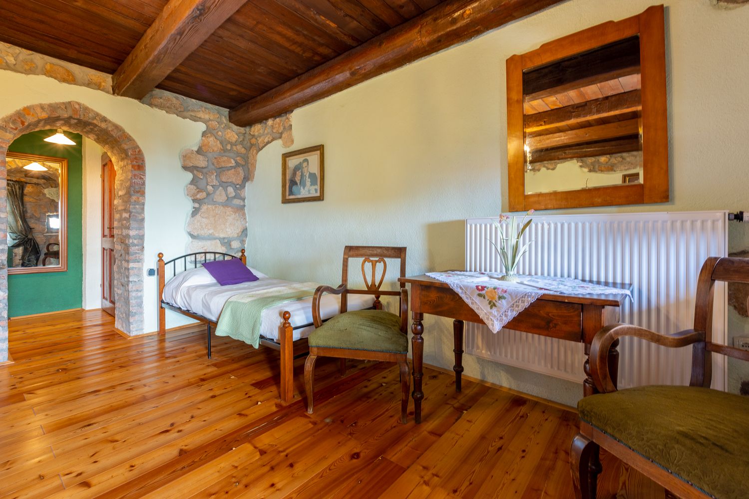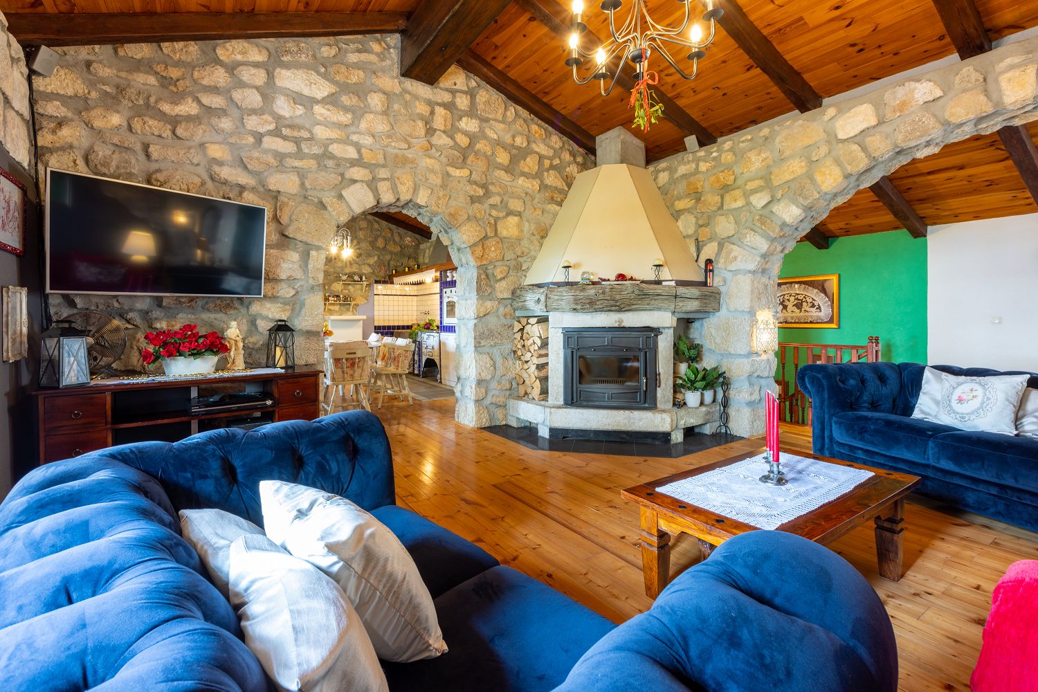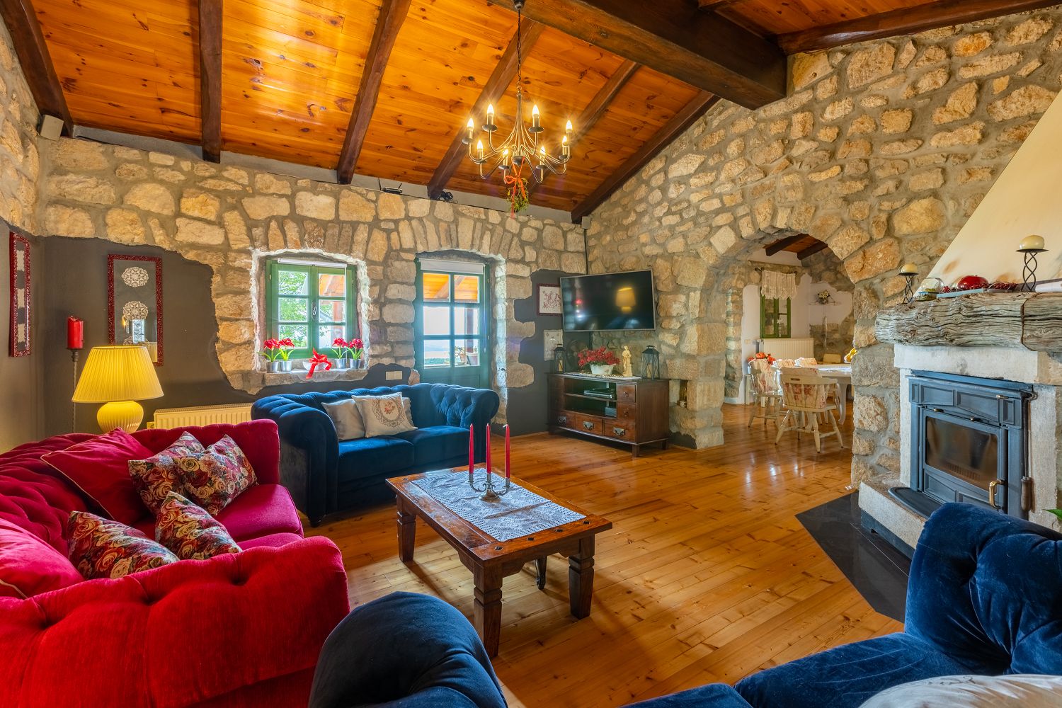 Das Ferienhaus erstreckt sich über zwei Etagen und bietet auf ca. 220 m² Wohnfläche mehrere Eingänge von allen Seiten. Die Räume sind sehr groß: Das Wohnzimmer ist ca. 30 m² groß, die Küche mit Esszimmer ebenfalls. Die Räume sind offen und vermitteln dadurch ein Gefühl von Freiheit. Die Schlafzimmer sind jedoch für ruhiges Schlafen voneinander getrennt. Es gibt luxuriös eingerichtete und sehr große Bäder, eine Terrasse mit Meerblick, einen Garten vor dem Haus und einen weiteren großen Garten hinter dem Haus. Das Haus wird ganzjährig vermietet und ist komplett beheizt, die Bäder verfügen sogar über Fußbodenheizung. Zwei größere Schlafzimmer befinden sich im Erdgeschoss und haben direkten Zugang zur Terrasse. Auf der anderen Seite befinden sich zwei große Bäder mit jeweils zwei Waschbecken aus Stein. In beiden Zimmern steht jeweils ein rustikales Doppelbett (ca. 160 x 200 cm) mit Top-Matratzen sowie ein weiteres Einzelbett. Ob Sie das Einzelbett benutzen möchten, ist Ihnen überlassen. Durch die Treppe im Flur sind beide Zimmer mit dem ersten Geschoss verbunden. Dort befindet sich ein weiteres, jedoch kleineres Schlafzimmer mit einem Doppelbett (140 x 200 cm). Neben dem Zimmer steht eine Toilette mit Waschbecken zur Verfügung. Weiter geht es zum Wohnzimmer, in dem sich auch eine Klimaanlage befindet. Von hier aus gelangt man zur Terrasse/zum Balkon sowie durch eine massive gewölbte Steinöffnung in die Küche und das Esszimmer. Vom Wohnzimmer aus gelangt man auch zur Garage. Auf der anderen Seite befindet sich der Haupteingang. Im Wohnzimmer stehen ein SAT-TV mit DVD-Player und Surround-System zur Verfügung. Es ist auch Wireless Internet vorhanden. Die Küche ist mit Besteck, Pfannen, Töpfen und Küchentüchern ausgestattet. Weiterhin vorhanden sind ein Toaster, eine Mikrowelle, ein Wasserkocher und natürlich eine Kaffeemaschine. Ein Geschirrspüler ist ebenfalls vorhanden. Alle Betten sind mit Bettwäsche bezogen. Die Bettwäsche wird einmal wöchentlich gewechselt, sofern der Aufenthalt mindestens zwei Wochen beträgt. Handtücher für das Badezimmer werden ebenfalls zur Verfügung gestellt.