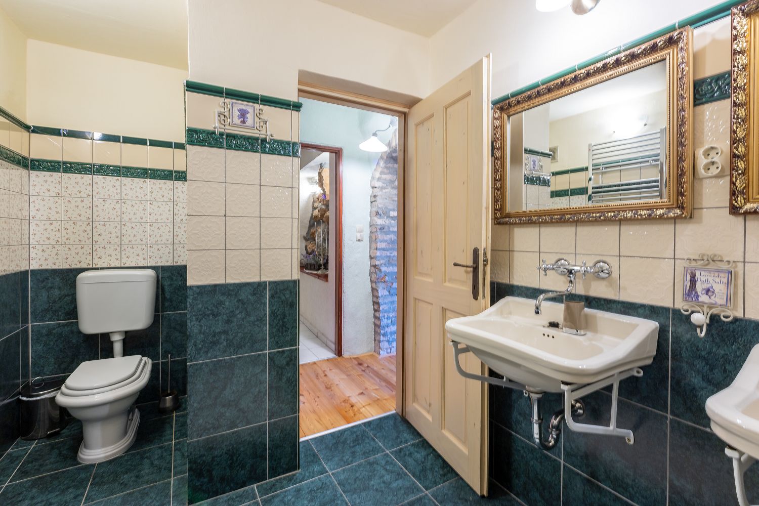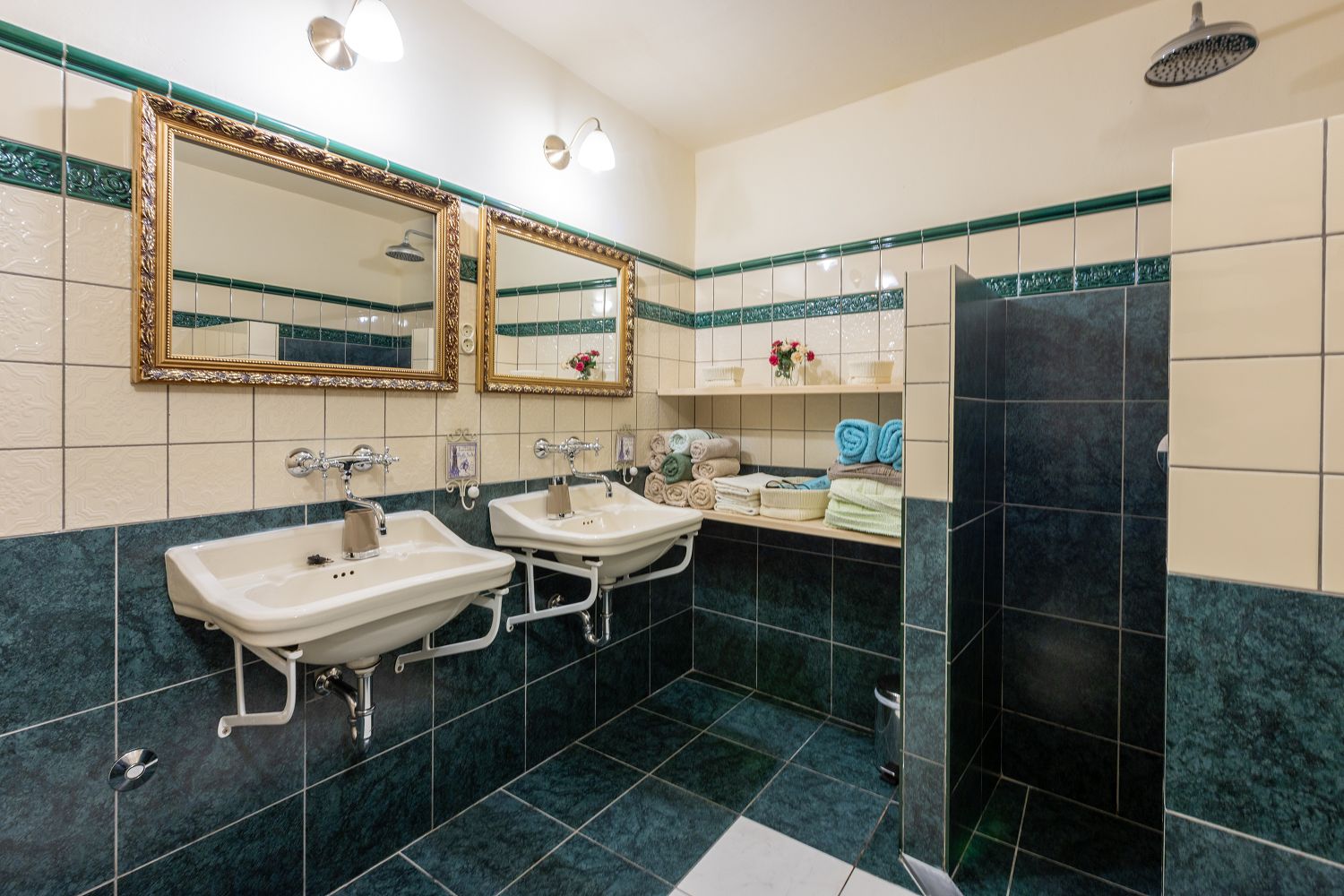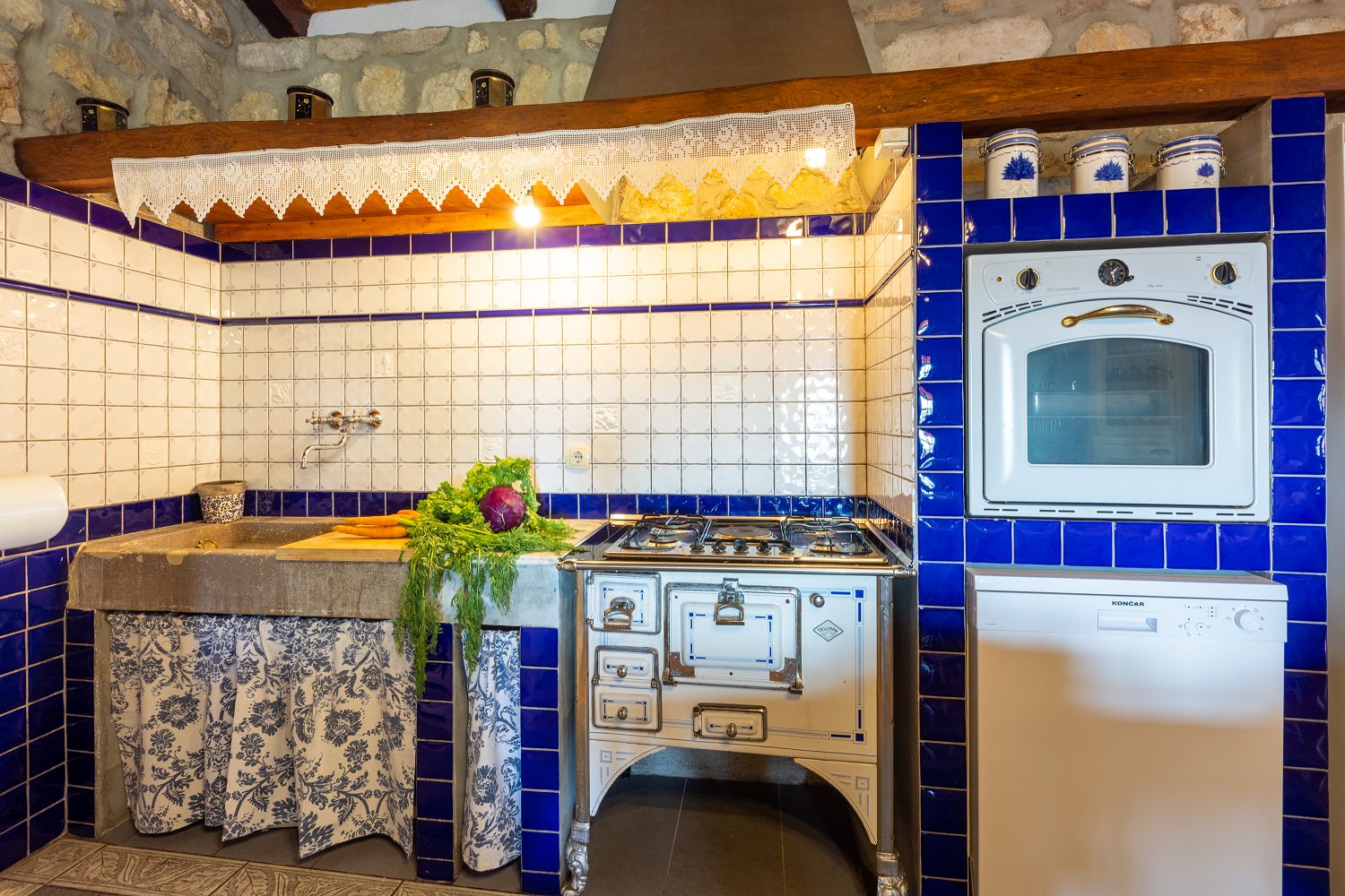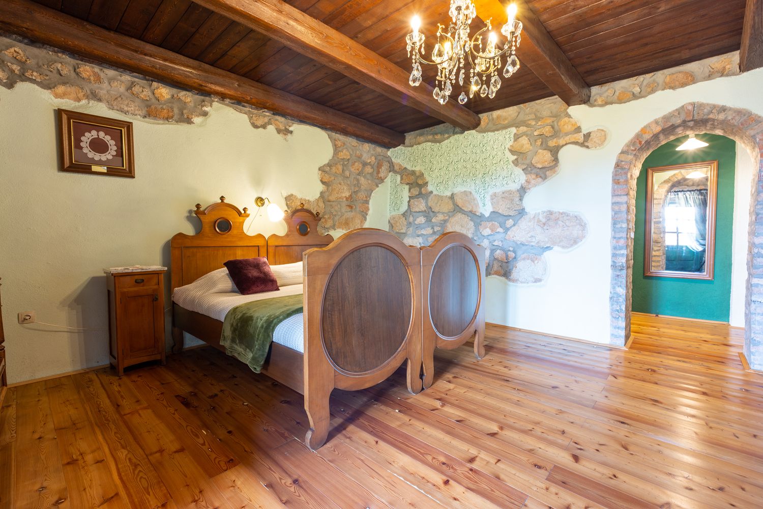 Das Ferienhaus erstreckt sich über zwei Etagen und bietet auf ca. 220 m² Wohnfläche mehrere Eingänge von allen Seiten. Die Räume sind sehr groß: Das Wohnzimmer ist ca. 30 m² groß, die Küche mit Esszimmer ebenfalls. Die Räume sind offen und vermitteln dadurch ein Gefühl von Freiheit. Die Schlafzimmer sind jedoch für ruhiges Schlafen voneinander getrennt. Es gibt luxuriös eingerichtete und sehr große Bäder, eine Terrasse mit Meerblick, einen Garten vor dem Haus und einen weiteren großen Garten hinter dem Haus. Das Haus wird ganzjährig vermietet und ist komplett beheizt, die Bäder verfügen sogar über Fußbodenheizung. Zwei größere Schlafzimmer befinden sich im Erdgeschoss und haben direkten Zugang zur Terrasse. Auf der anderen Seite befinden sich zwei große Bäder mit jeweils zwei Waschbecken aus Stein. In beiden Zimmern steht jeweils ein rustikales Doppelbett (ca. 160 x 200 cm) mit Top-Matratzen sowie ein weiteres Einzelbett. Ob Sie das Einzelbett benutzen möchten, ist Ihnen überlassen. Durch die Treppe im Flur sind beide Zimmer mit dem ersten Geschoss verbunden. Dort befindet sich ein weiteres, jedoch kleineres Schlafzimmer mit einem Doppelbett (140 x 200 cm). Neben dem Zimmer steht eine Toilette mit Waschbecken zur Verfügung. Weiter geht es zum Wohnzimmer, in dem sich auch eine Klimaanlage befindet. Von hier aus gelangt man zur Terrasse/zum Balkon sowie durch eine massive gewölbte Steinöffnung in die Küche und das Esszimmer. Vom Wohnzimmer aus gelangt man auch zur Garage. Auf der anderen Seite befindet sich der Haupteingang. Im Wohnzimmer stehen ein SAT-TV mit DVD-Player und Surround-System zur Verfügung. Es ist auch Wireless Internet vorhanden. Die Küche ist mit Besteck, Pfannen, Töpfen und Küchentüchern ausgestattet. Weiterhin vorhanden sind ein Toaster, eine Mikrowelle, ein Wasserkocher und natürlich eine Kaffeemaschine. Ein Geschirrspüler ist ebenfalls vorhanden. Alle Betten sind mit Bettwäsche bezogen. Die Bettwäsche wird einmal wöchentlich gewechselt, sofern der Aufenthalt mindestens zwei Wochen beträgt. Handtücher für das Badezimmer werden ebenfalls zur Verfügung gestellt.
