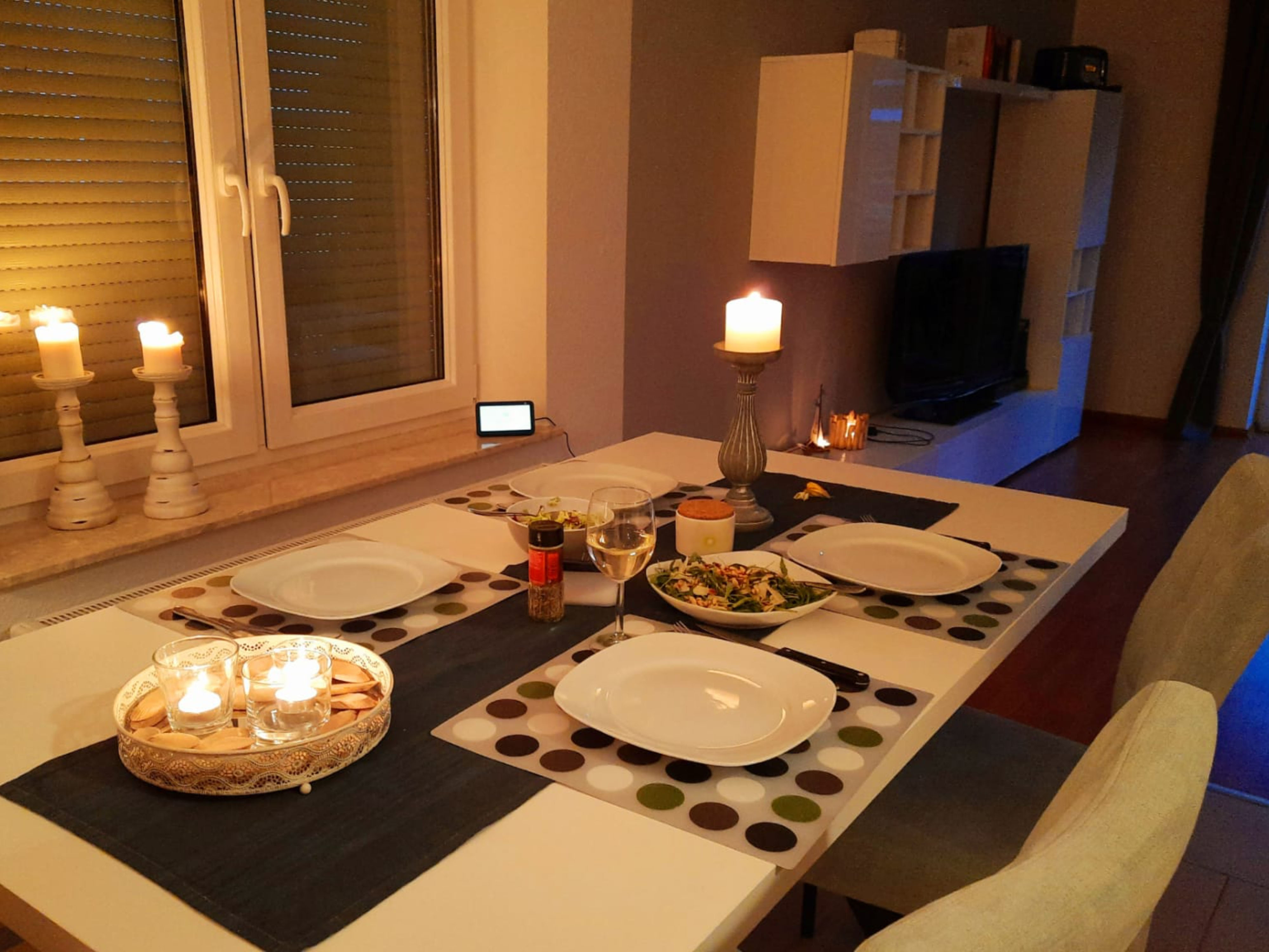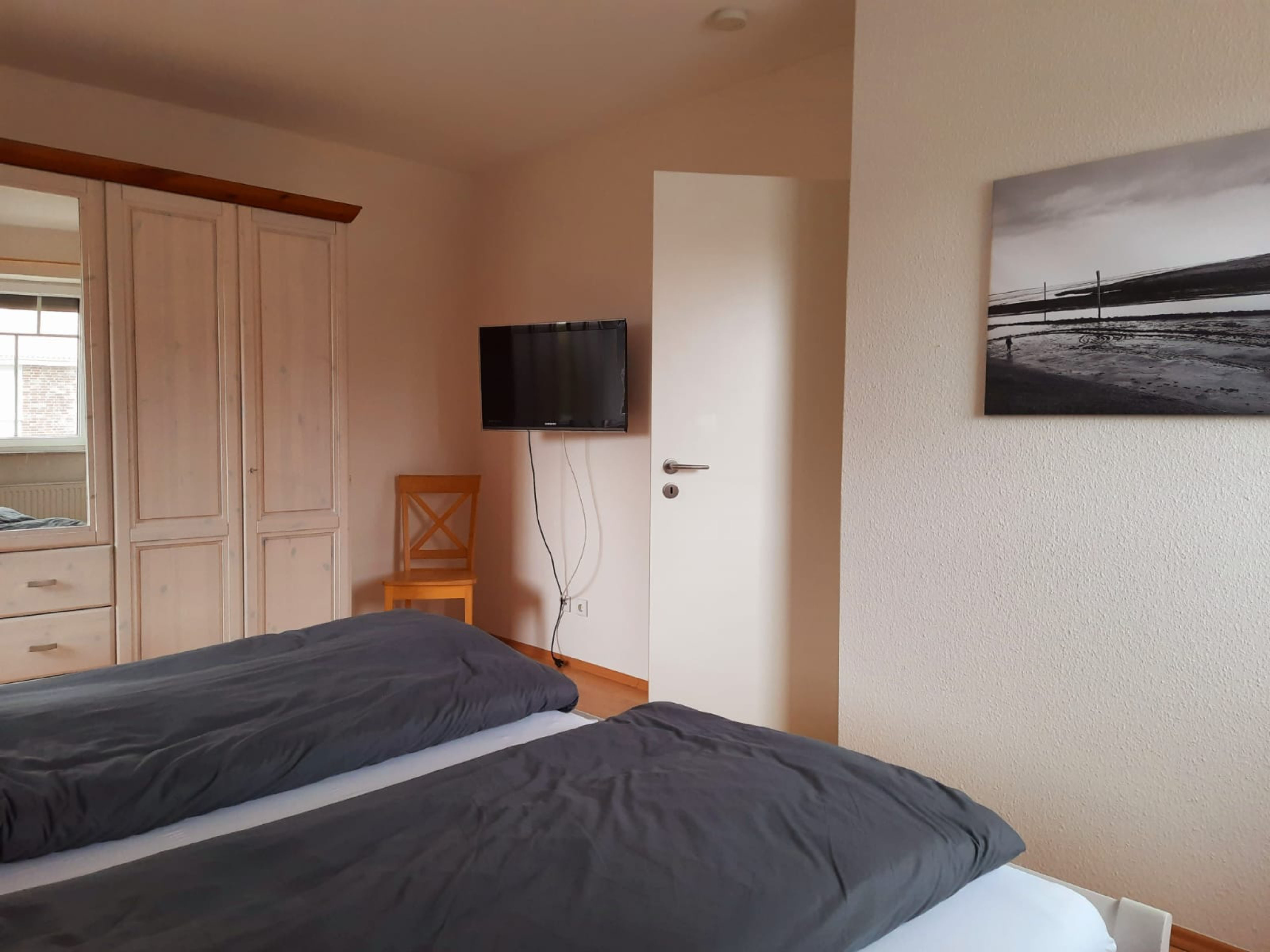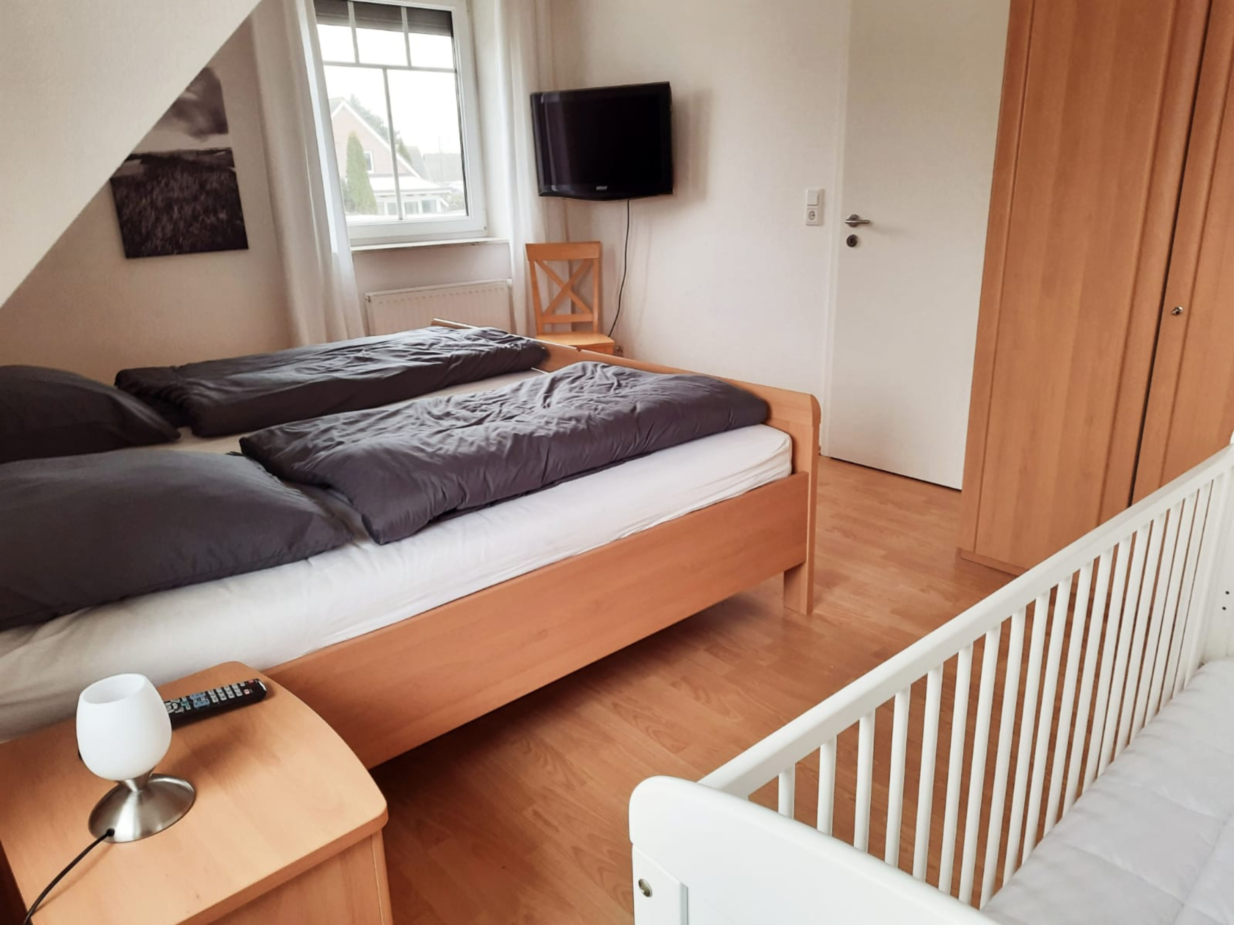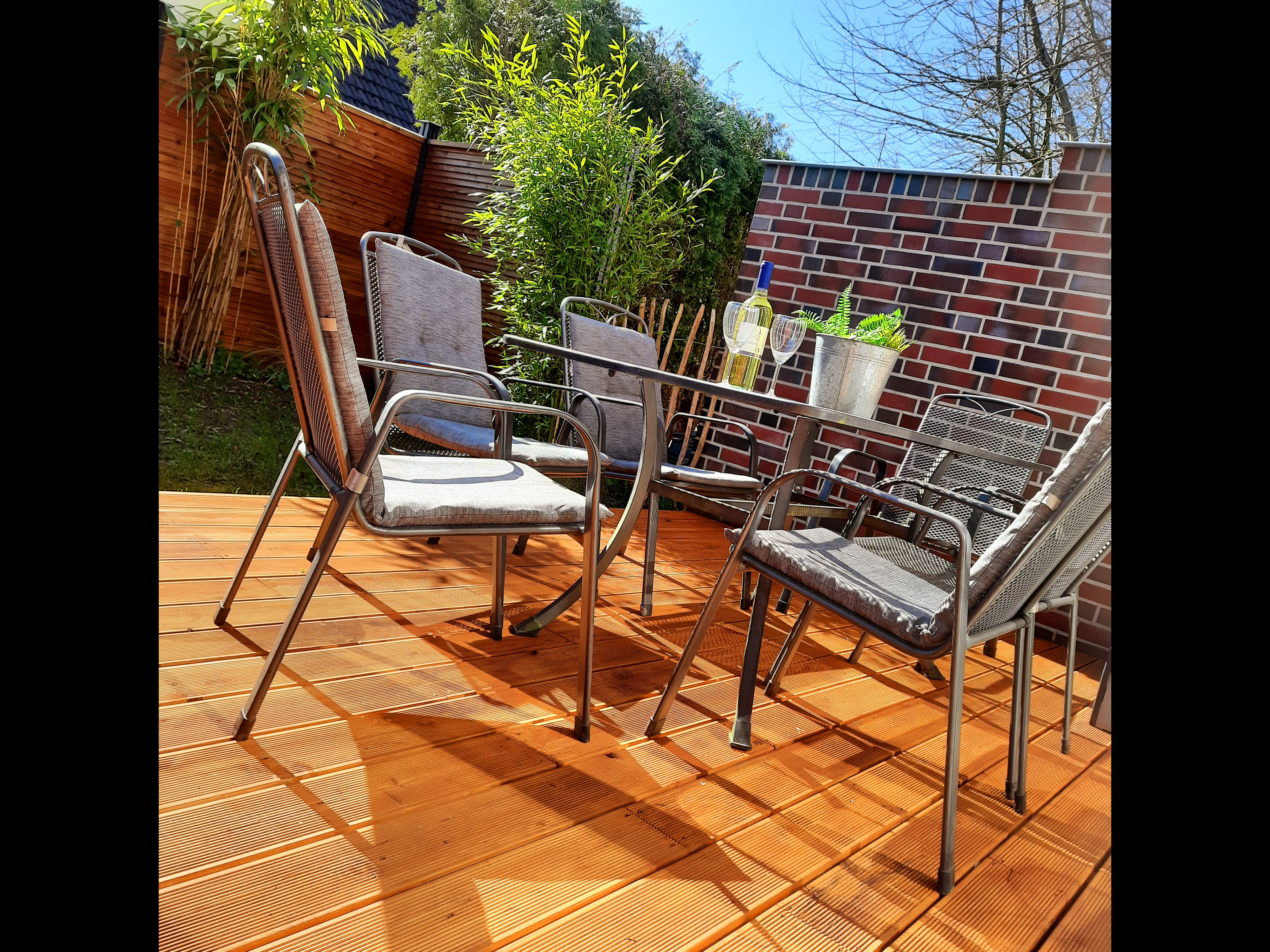 Im Erdgeschoss unseres Ferienhauses befinden sich eine komfortabel ausgestattete offene Küche mit direkt angrenzendem Essbereich sowie ein gemütlicher Wohnbereich, des Weiteren ein Bad mit Dusche und ein Abstellraum mit Waschmaschine. Vom Wohnzimmer gelangt man auf die Terrasse, die zum Grillen einlädt. Im Sommer finden auf unserer großflächigen Terrasse bis zu 6 Personen auf gemütlichen Gartenmöbeln Platz. Eine Sonnenliege mit Sonnenschirm sowie ein Grill sind ebenfalls vorhanden. Ferner stehen ein Blockhaus, ein Bollerwagen und ein PKW-Stellplatz direkt am Haus zur Verfügung. Im ersten Obergeschoss befinden sich zwei Schlafzimmer mit Doppelbetten, beide mit TV ausgestattet. Im Tageslichtbad stehen Ihnen ein Föhn und ein Kosmetikspiegel sowie ausreichend Steckdosen zur Verfügung. Im zweiten Obergeschoss steht ein weiteres Schlafzimmer mit zwei Einzelbetten zur Verfügung. Bei guter Sicht können Sie von hier oben das Meer sehen. + Einrichtung kinder- und familienfreundlich (Kinderhochstuhl, Kinderbett, Treppenschutz, eingezäunter Garten, Gesellschaftsspiele und Bücher) + Fliesen oder Laminatböden + alle Fenster sind mit Jalousien ausgestattet. + Komplette Küchenausstattung: Geschirrspülmaschine, Backofen, Cerankochfeld, Kühlschrank mit Gefrierfach, ausreichend Geschirr, Besteck und Gläser, Wasser- und Eierkocher, Kaffeemaschine, Espressomaschine, Mikrowelle, Messerblock, Schneidebrett, Küchenhelfer, Toaster, + TV mit DVD-Player und Radio im Wohnbereich, + WLAN inklusive, + zwei weitere Fernseher in den Schlafzimmern im ersten Obergeschoss, + Waschmaschine im Erdgeschoss. Auch einen Strandkorb am schönen Nordsee-Strand, haben wir für Sie während Ihres Aufenthalts bereits reserviert. Wäschepakete können Sie gerne dazu buchen für 15 Euro pro Person.