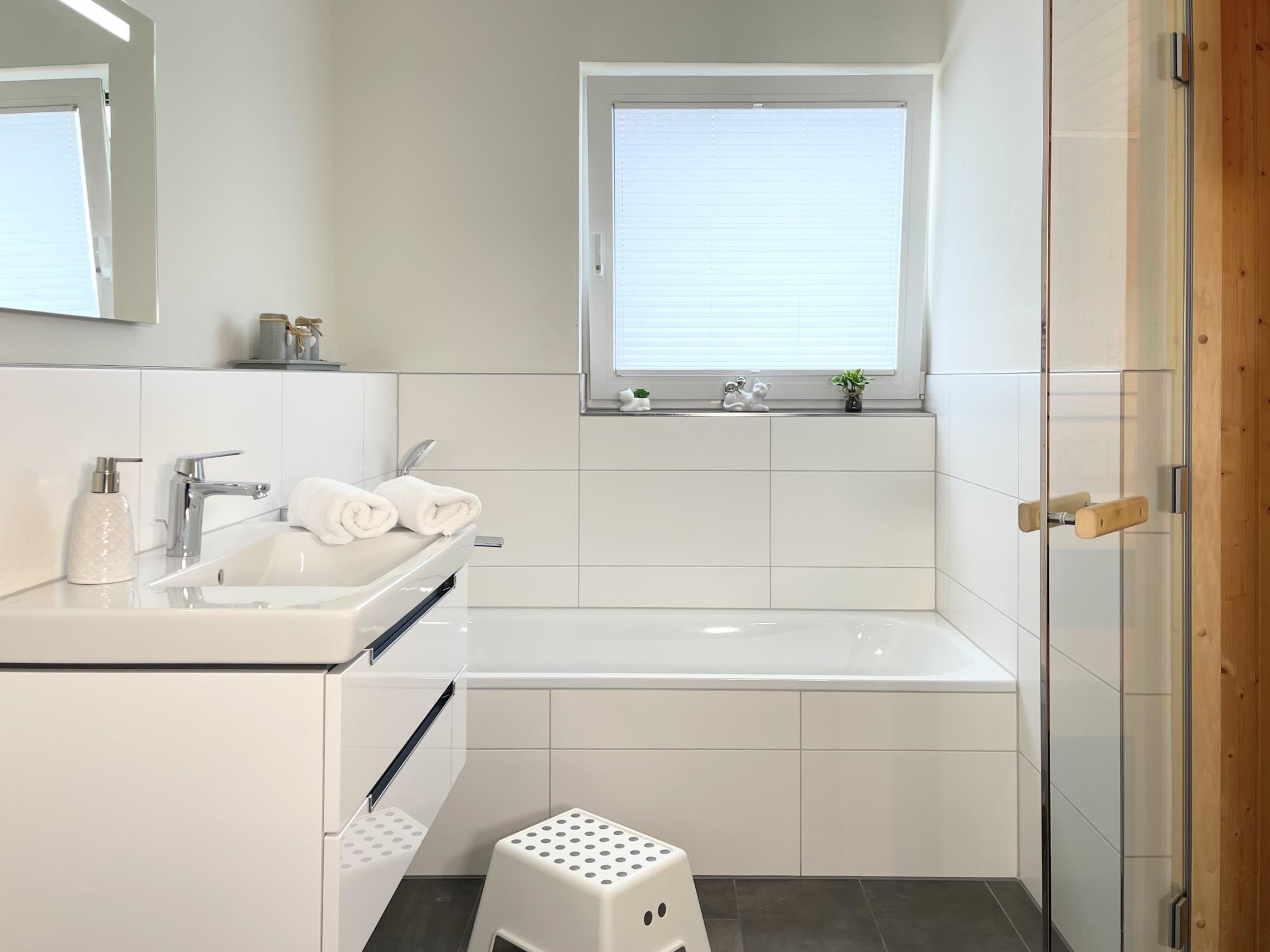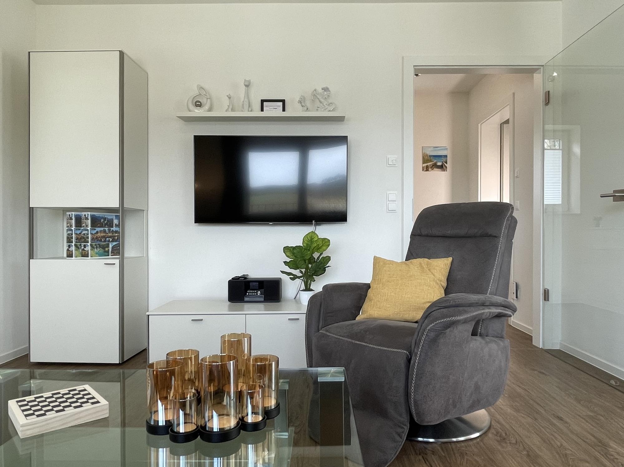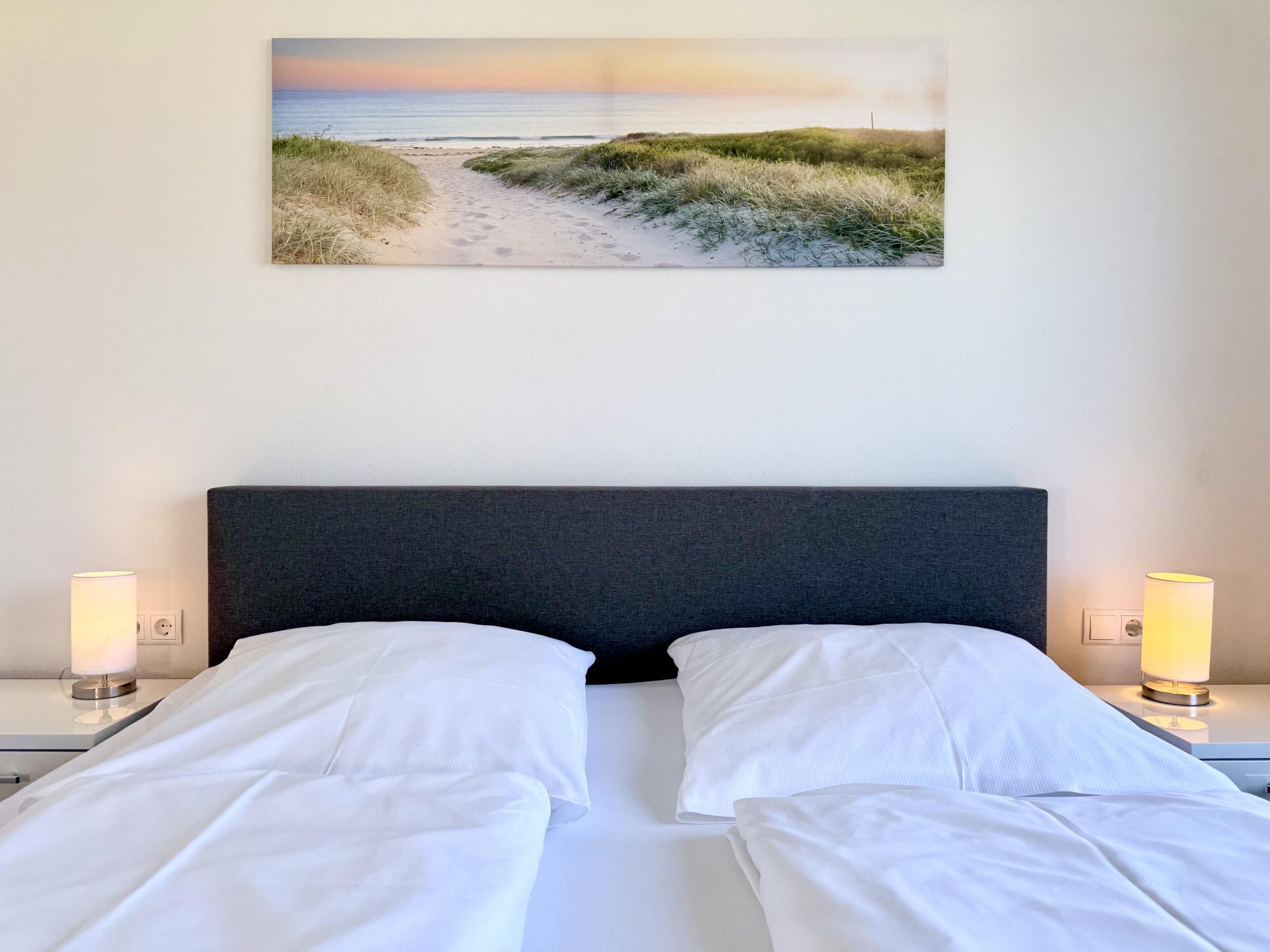 Drei Schlafzimmer, allesamt mit Smart-TV und Boxspringbetten ausgestattet, ein kleines Duschbad und ein großes Wellnessbad mit eigener Sauna sind hier die Basis für erholsame Urlaubstage, zu jeder Jahreszeit für bis zu 6 Personen.